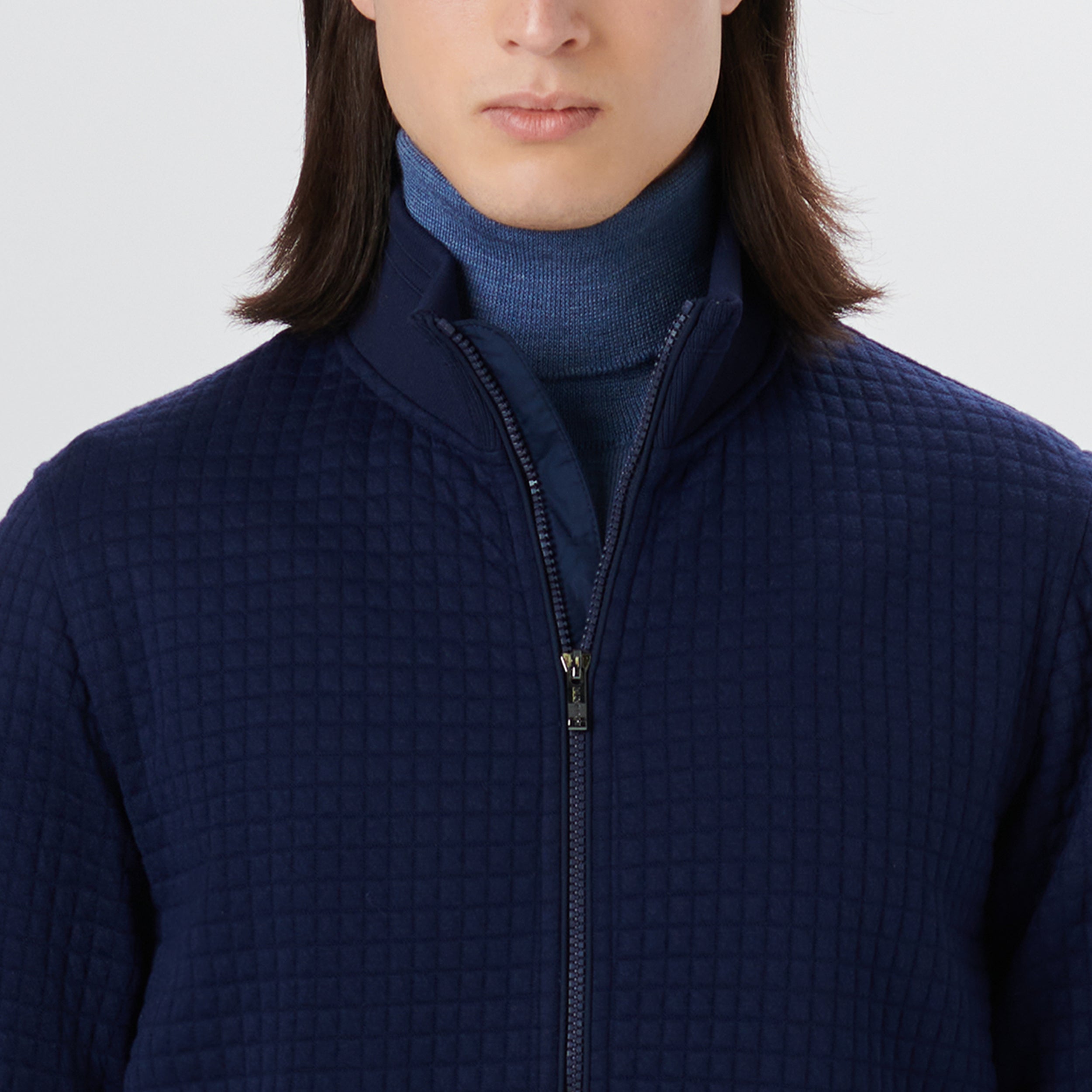 Waffle full zip jacket in performance fabric with side and sleeve pockets, solid contrast and stitch detail.