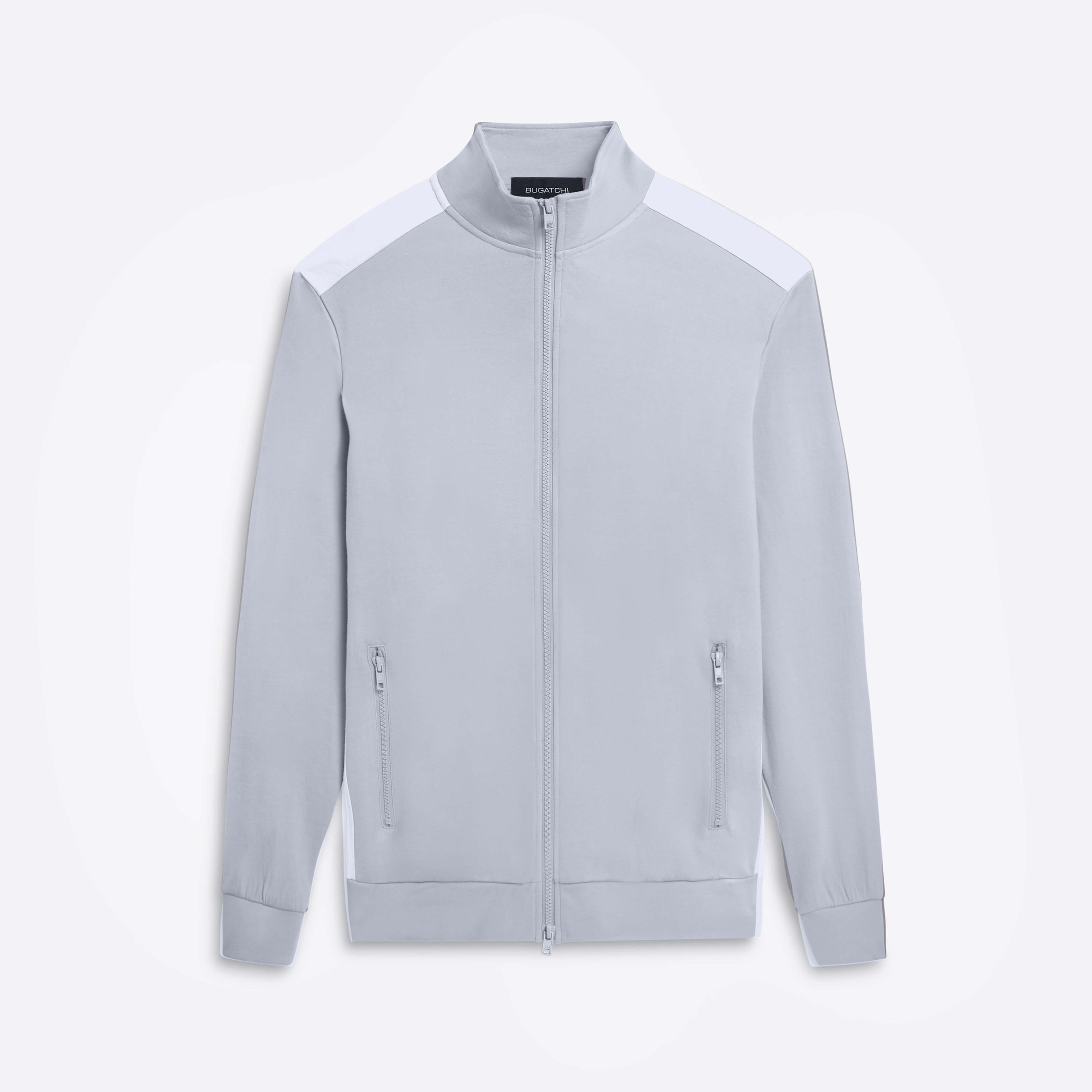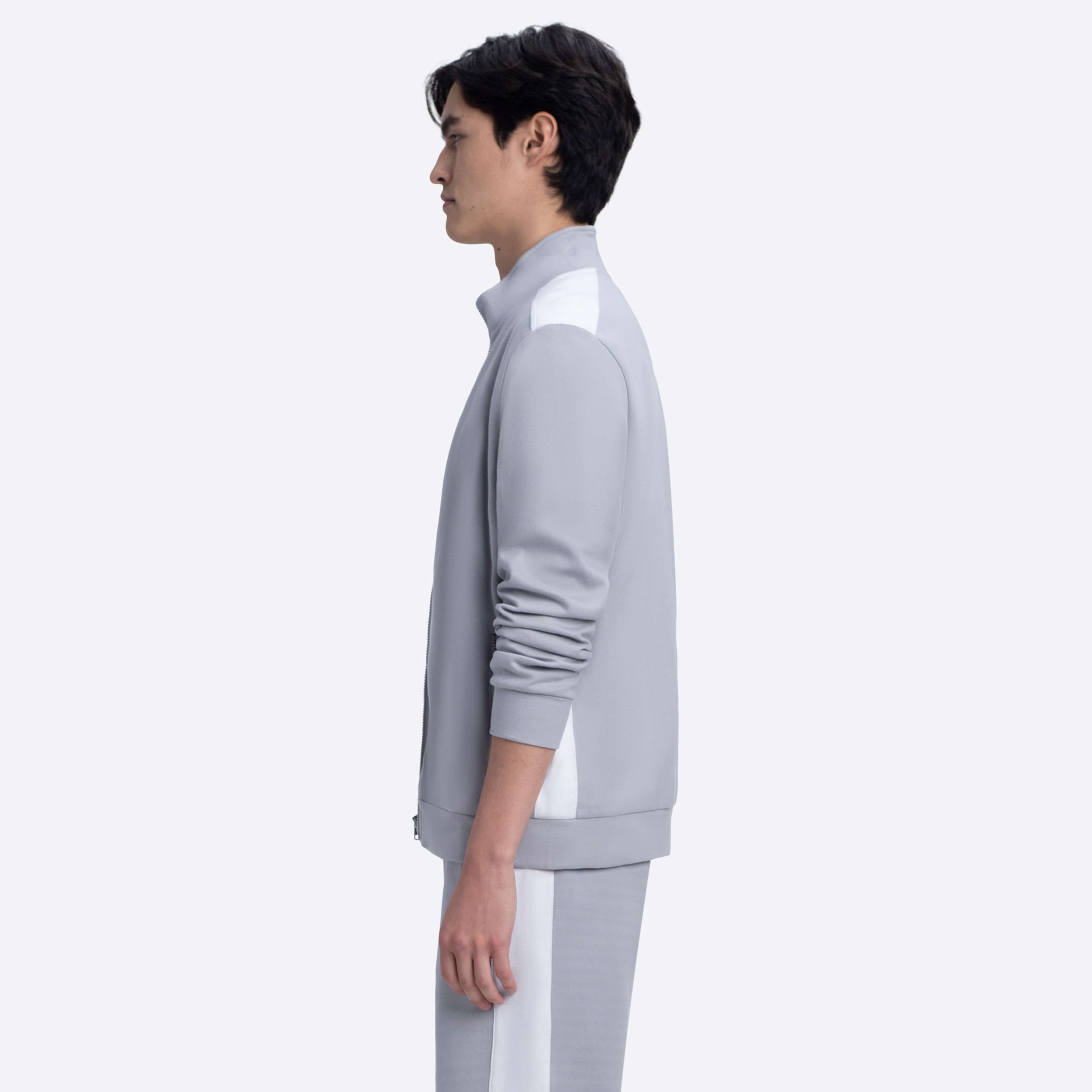 Long sleeve full zip mock neck sweatshirt in double-sided COMFORT cotton blend with contrast detail, zip pockets and closed cuffs and hem.