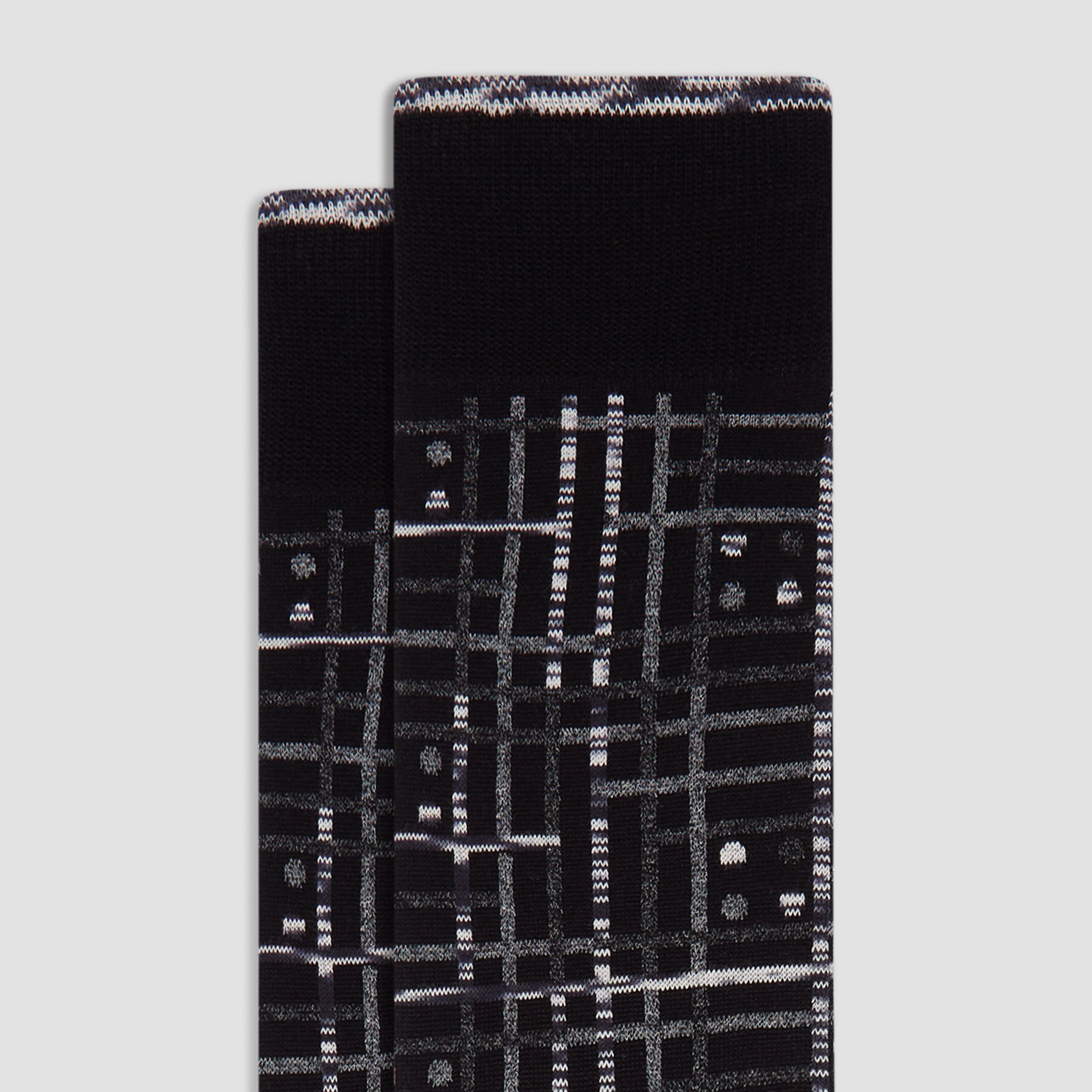 Discover premium comfort with these geometric mid-calf socks, made in Italy from luxurious mercerized cotton with a ribbed cuff for a snug fit, a hand-linked toe for smoothness, and reinforced heel seams for added durability. Soft, breathable, and designed with care, they bring a touch of Italian style and craftsmanship to your everyday essentials.
