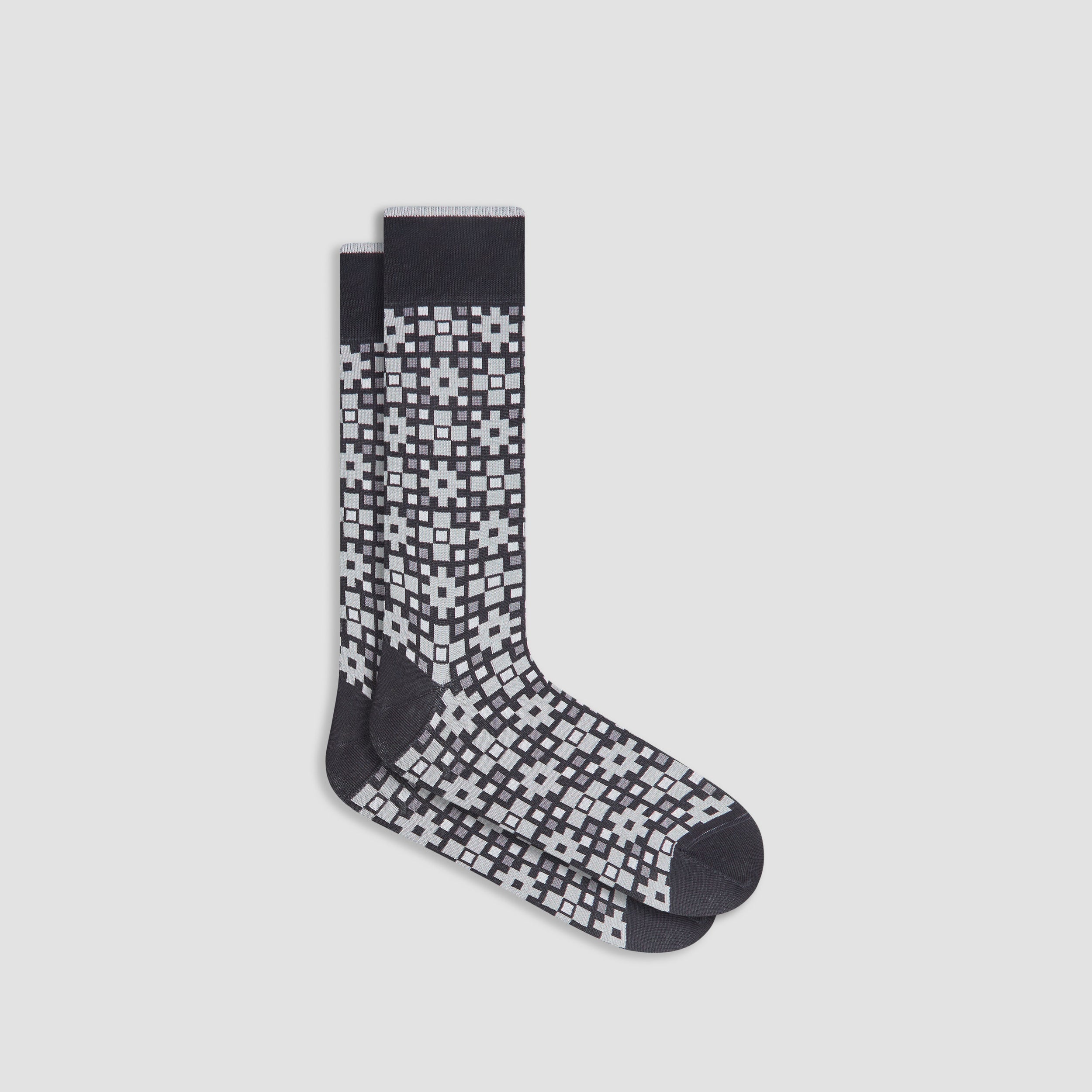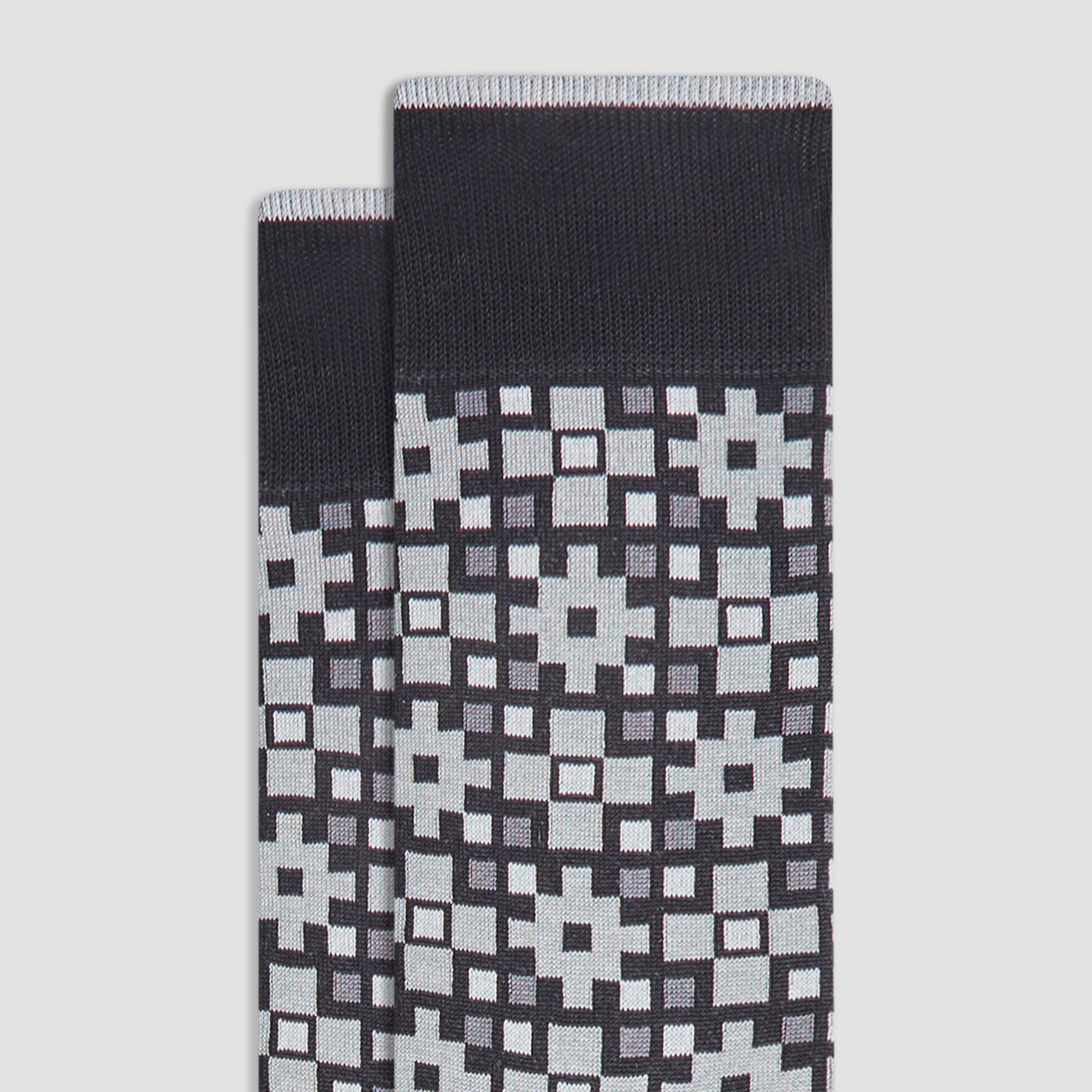 These Italian-made geometric socks are made from fine gauge mercerized cotton with a ribbed cuff band, hand linked toe and reinforced heel seams. Crafted in the heart of Italy with high quality materials, they are soft and breathable while combining style and comfort.