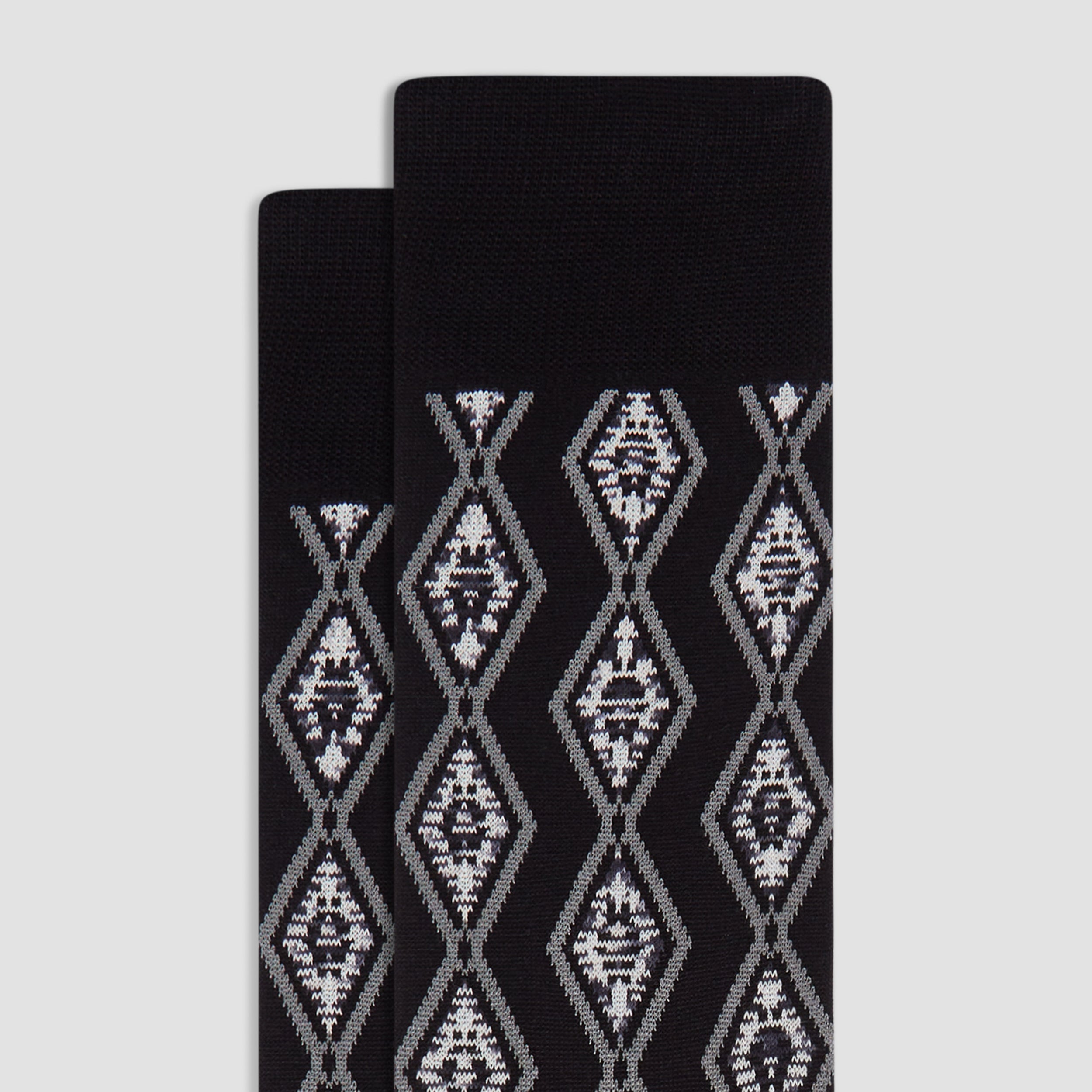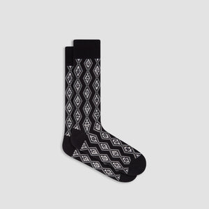 Discover premium comfort with these geometric mid-calf socks, made in Italy from luxurious mercerized cotton with a ribbed cuff for a snug fit, a hand-linked toe for smoothness, and reinforced heel seams for added durability. Soft, breathable, and designed with care, they bring a touch of Italian style and craftsmanship to your everyday essentials.