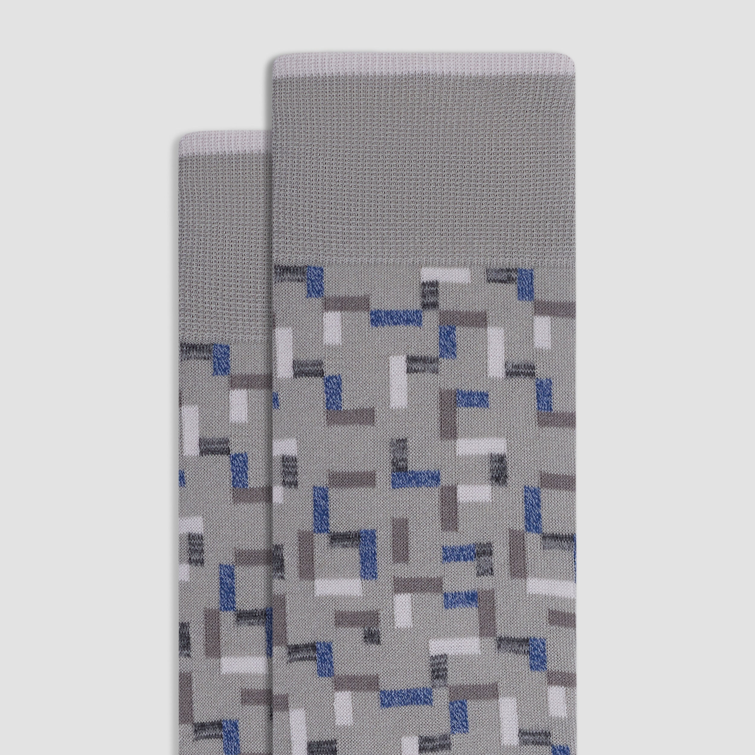 Discover premium comfort with these geometric mid-calf socks, made in Italy from luxurious mercerized cotton with a ribbed cuff for a snug fit, a hand-linked toe for smoothness, and reinforced heel seams for added durability. Soft, breathable, and designed with care, they bring a touch of Italian flair to casual and formal wear.
