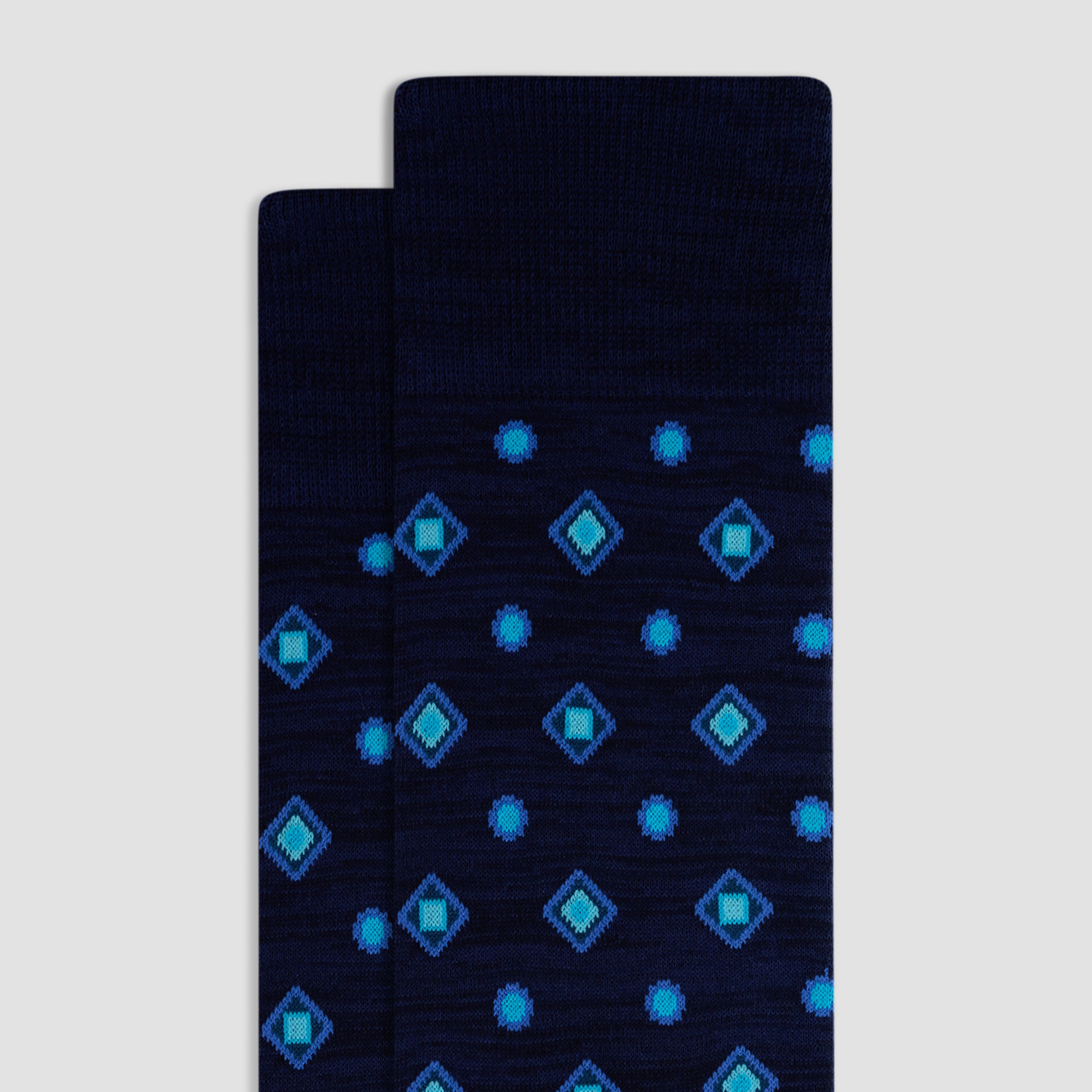 Discover premium comfort with these geometric mid-calf socks, made in Italy from luxurious mercerized cotton with a ribbed cuff for a snug fit, a hand-linked toe for smoothness, and reinforced heel seams for added durability. Soft, breathable, and designed with care, they bring a touch of Italian flair to casual and formal wear.