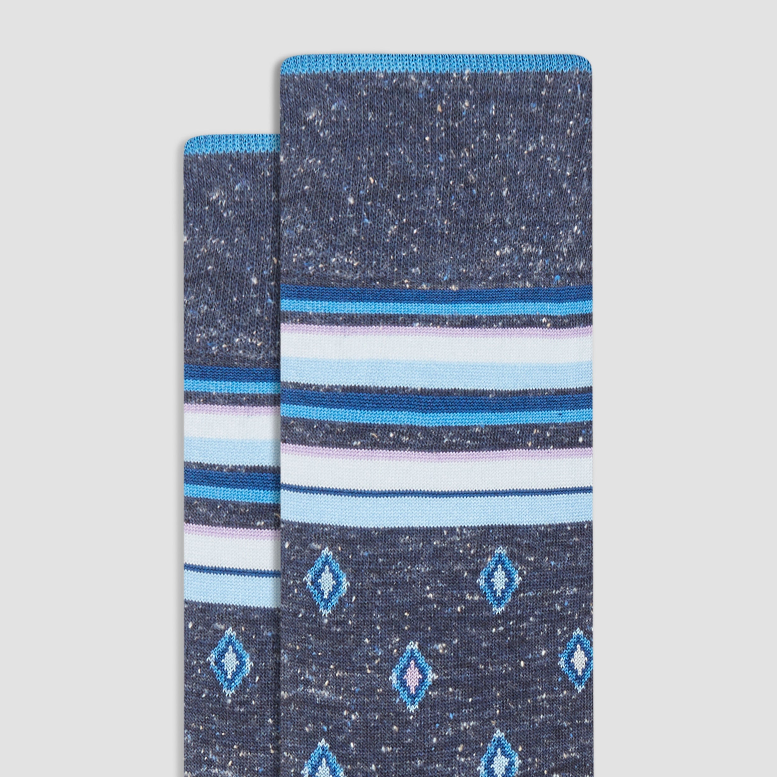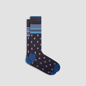 Geometric mid-calf socks in fine gauge mercerized cotton blend with rib knit cuff band, hand linked toe and reinforced heel seams. Made in Italy.
