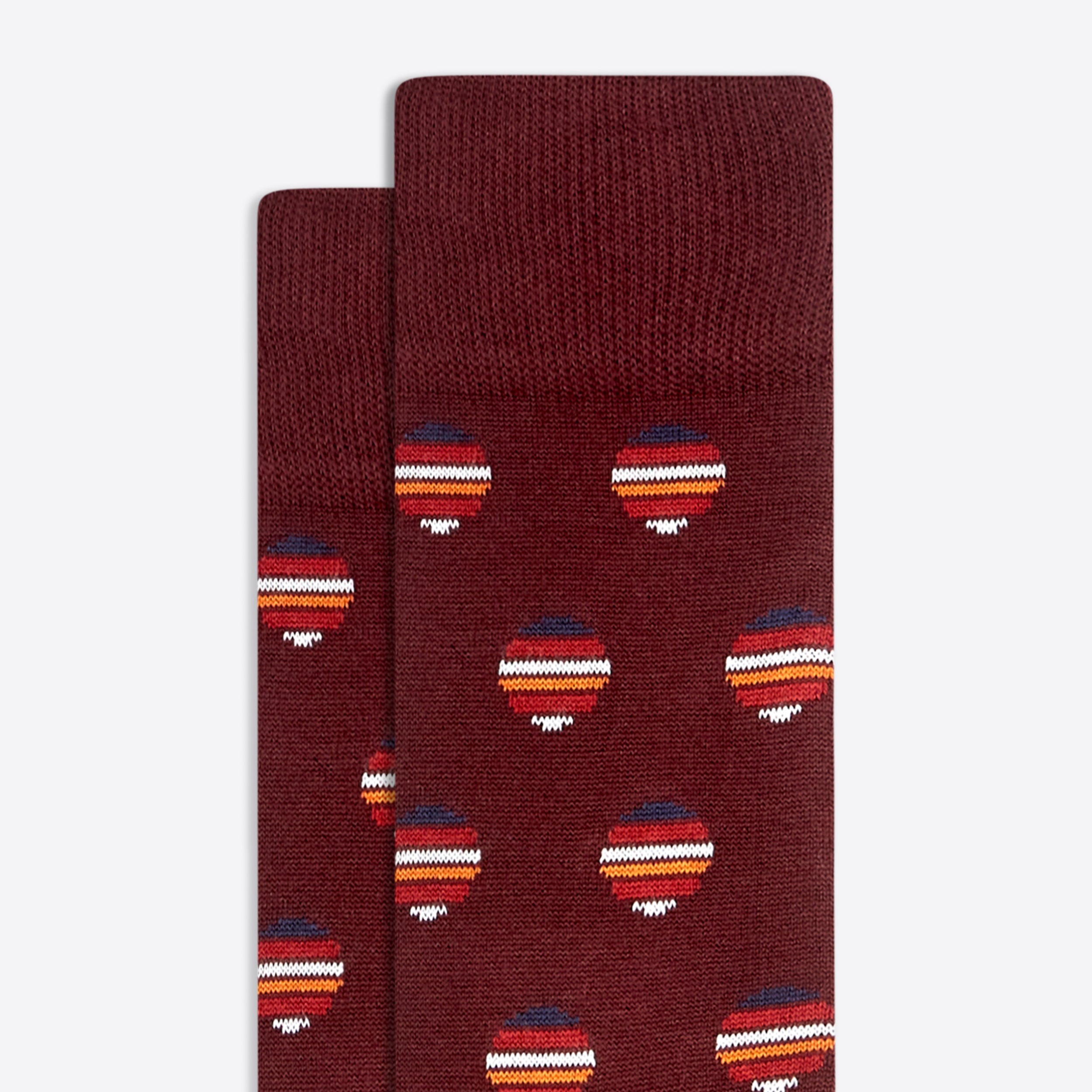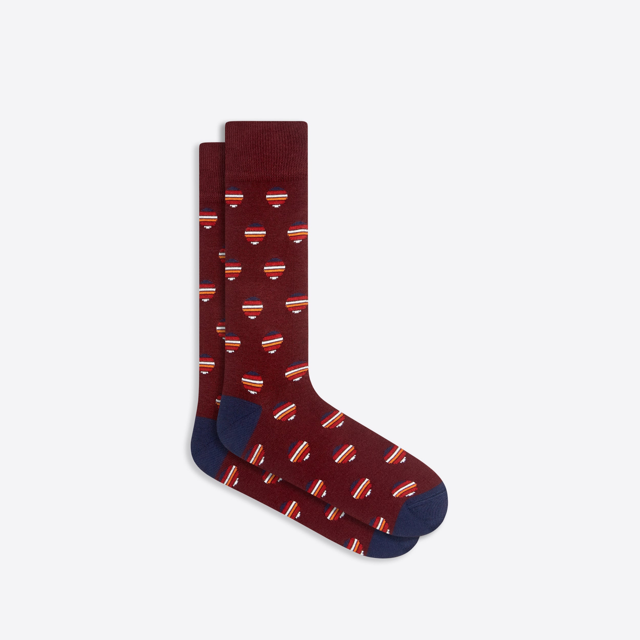 Geometric mid-calf socks in fine cotton and cashmere blend with rib knit cuff band, hand linked toe and reinforced heel seams. Made in Italy.