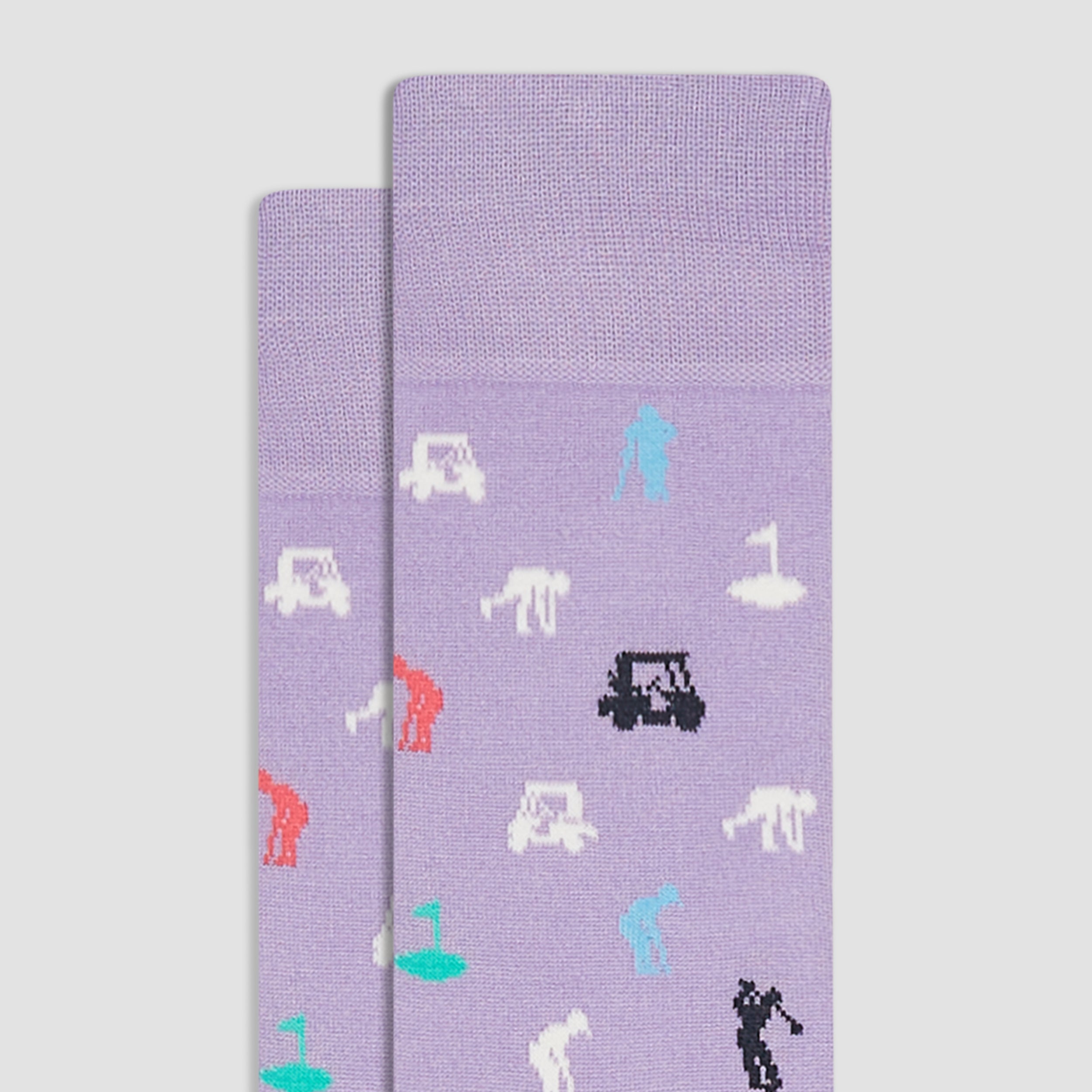 Golf course mid-calf socks in fine gauge mercerized cotton blend with rib knit cuff band, hand linked toe and reinforced heel seams. Made in Italy.