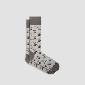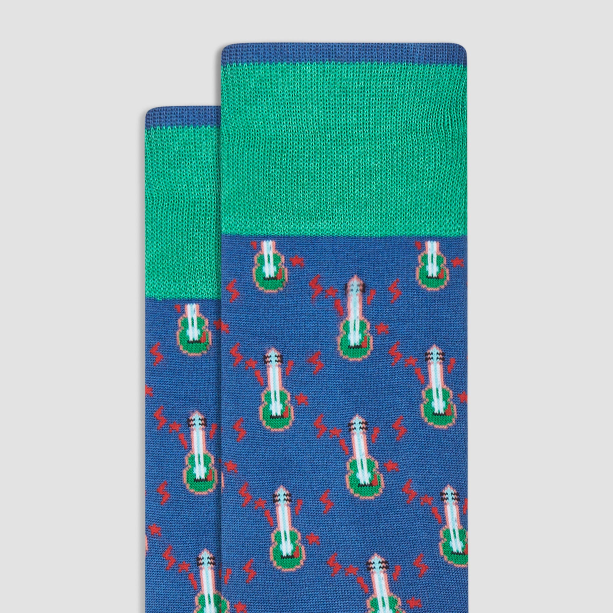 Guitars mid-calf socks in fine gauge mercerized cotton blend with rib knit cuff band, hand linked toe and reinforced heel seams. Made in Italy.