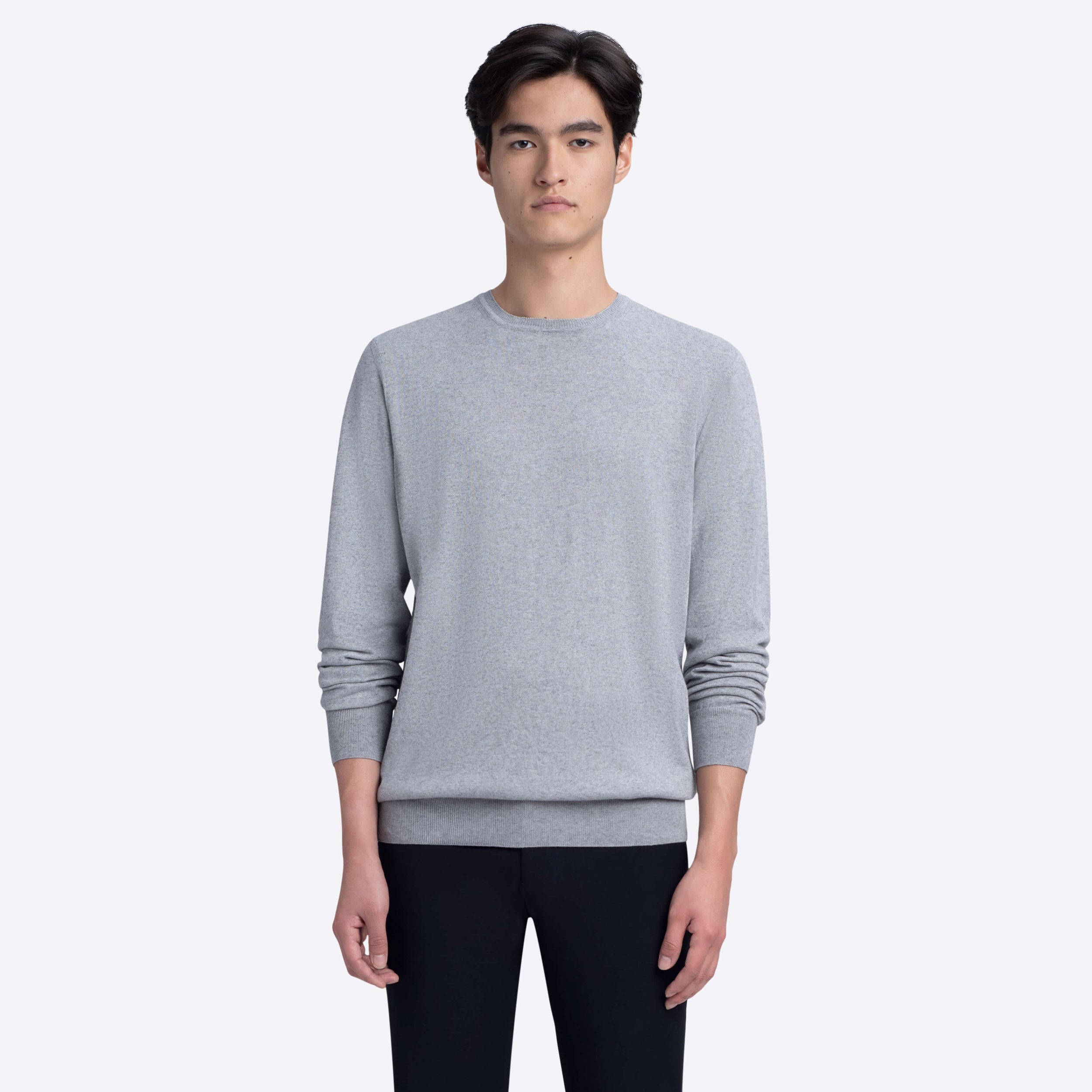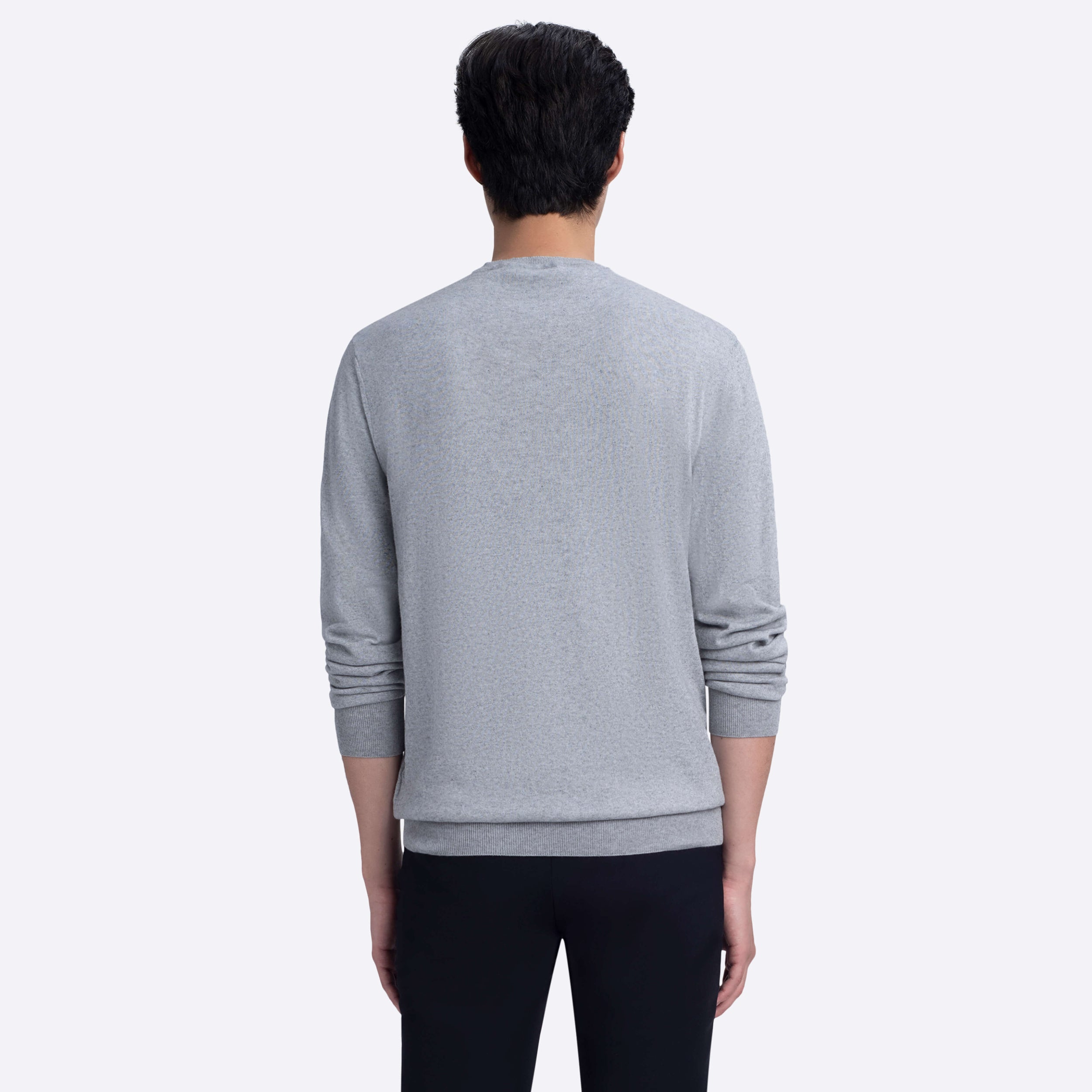 Heather long sleeve crew neck sweater in cotton and cashmere blend with solid rib knit cuffs and waistband. Made in Italy.