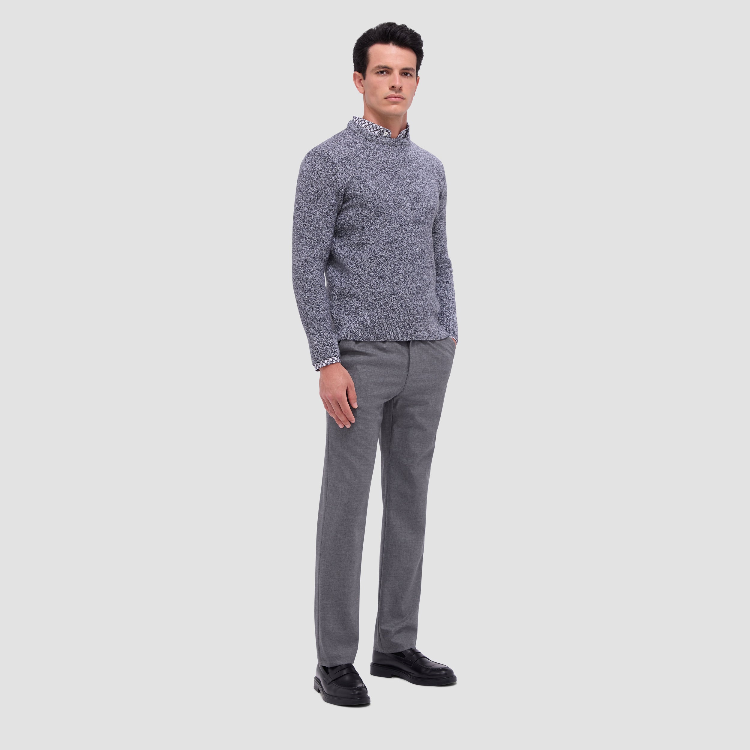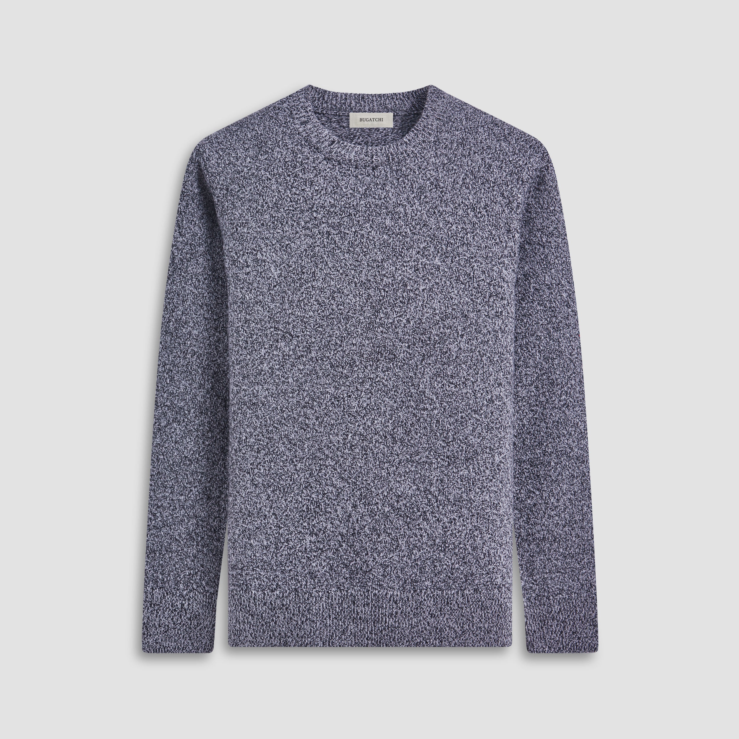 Crafted from 100% premium Merino wool, this heathered crew neck sweater boasts a stunning three-color mouline effect, creating a rich and textured appearance. Meticulously detailed, it features matching ribbing on the neckline, cuffs, and hem, offering a tailored fit and elegance. Made from the finest Merino wool, it provides exceptional softness and warmth, perfect for layering in colder months and transitioning from day to night effortlessly.