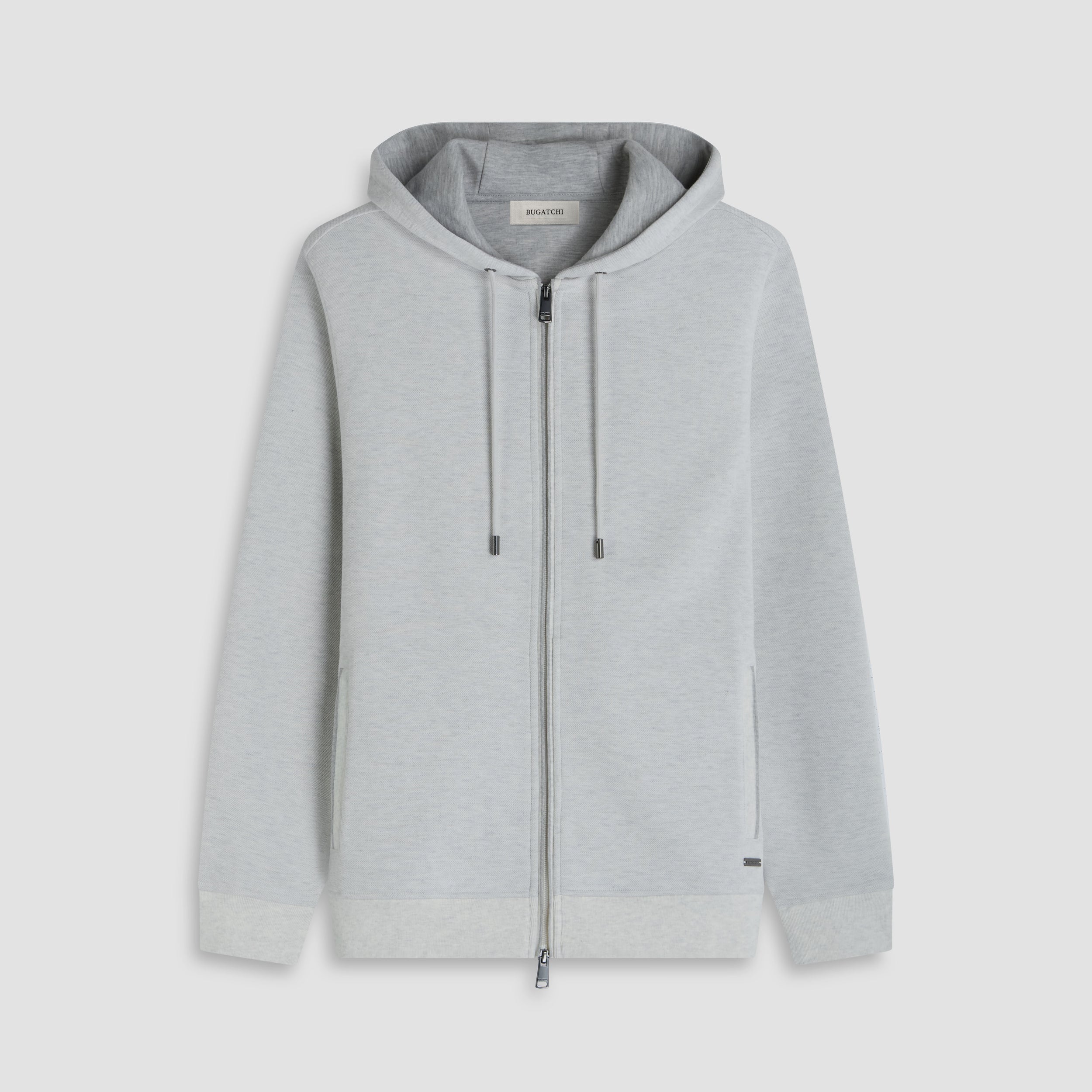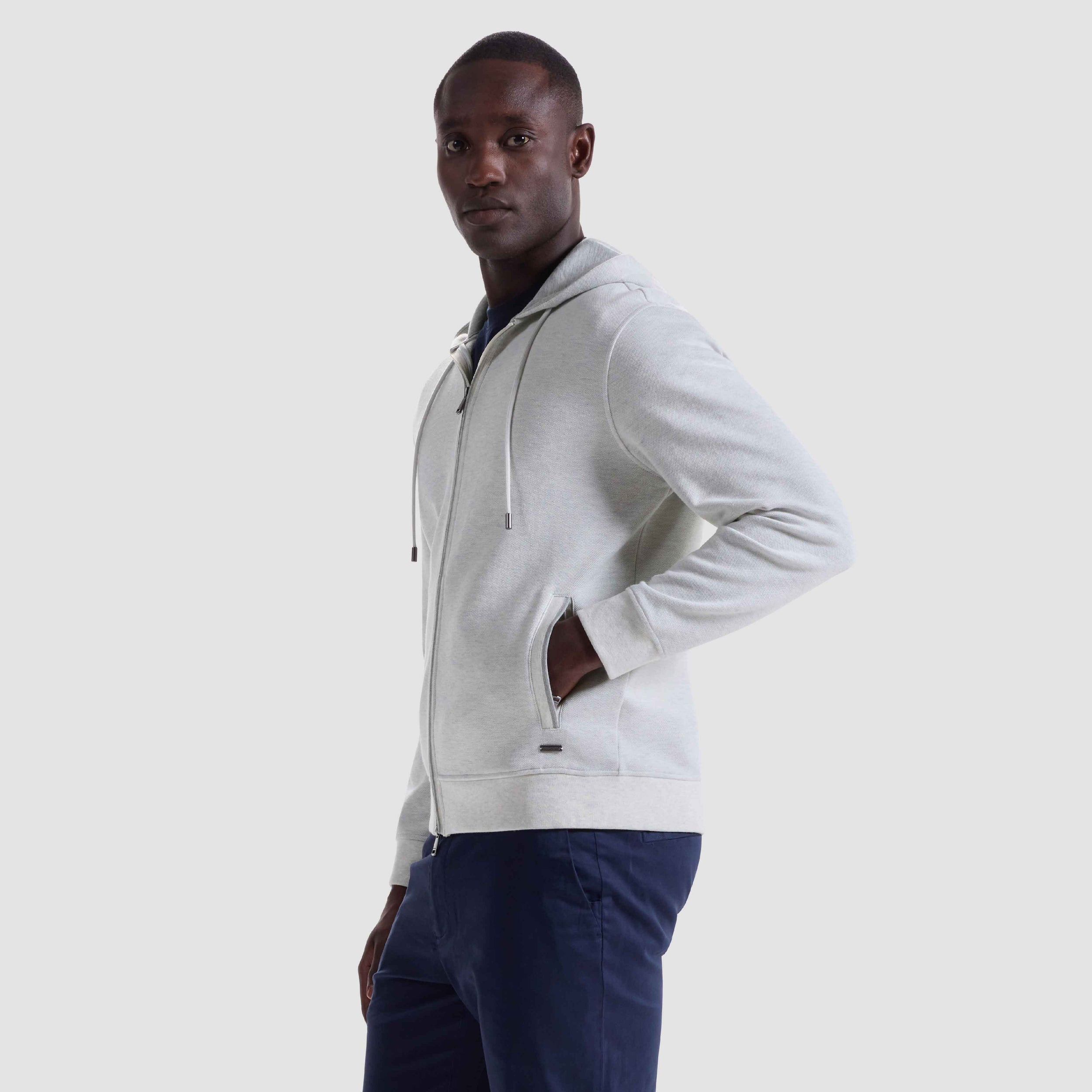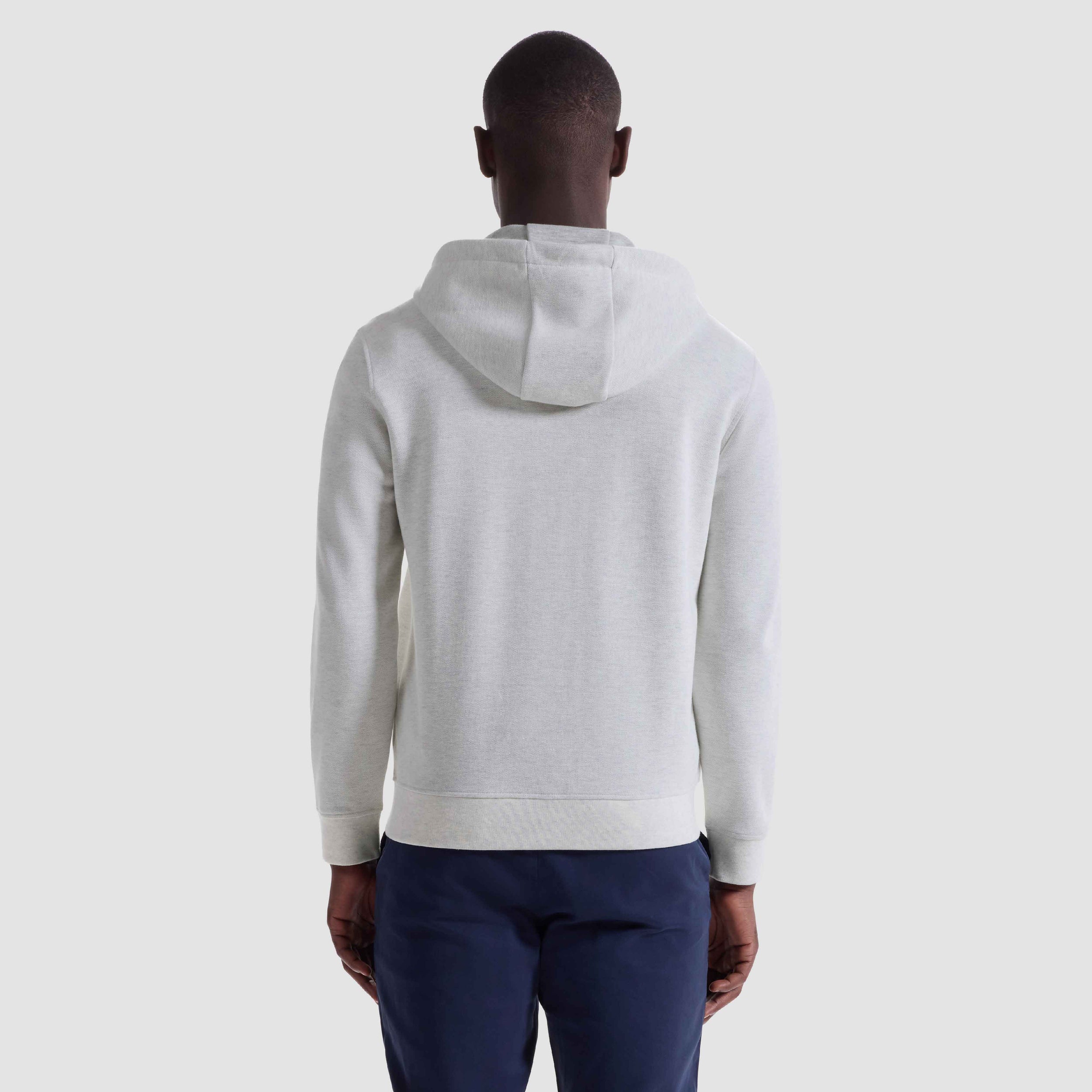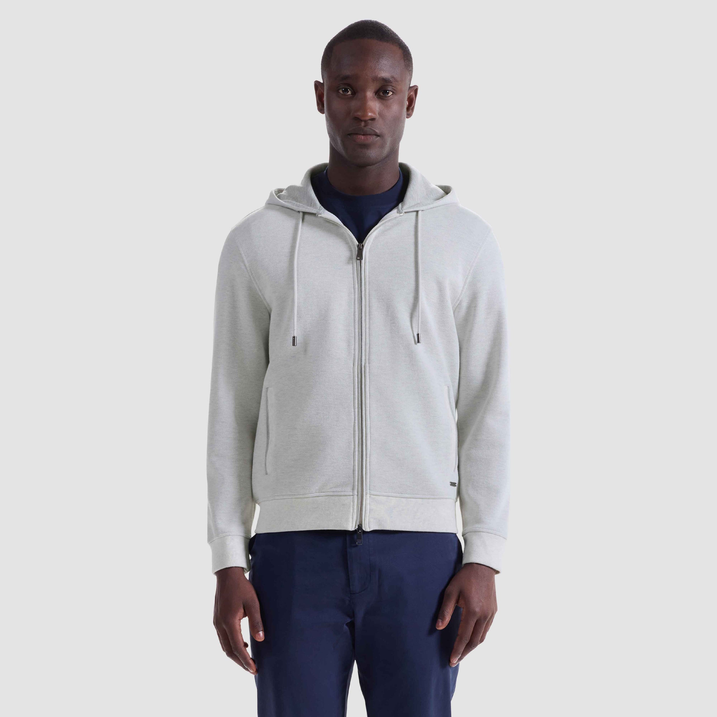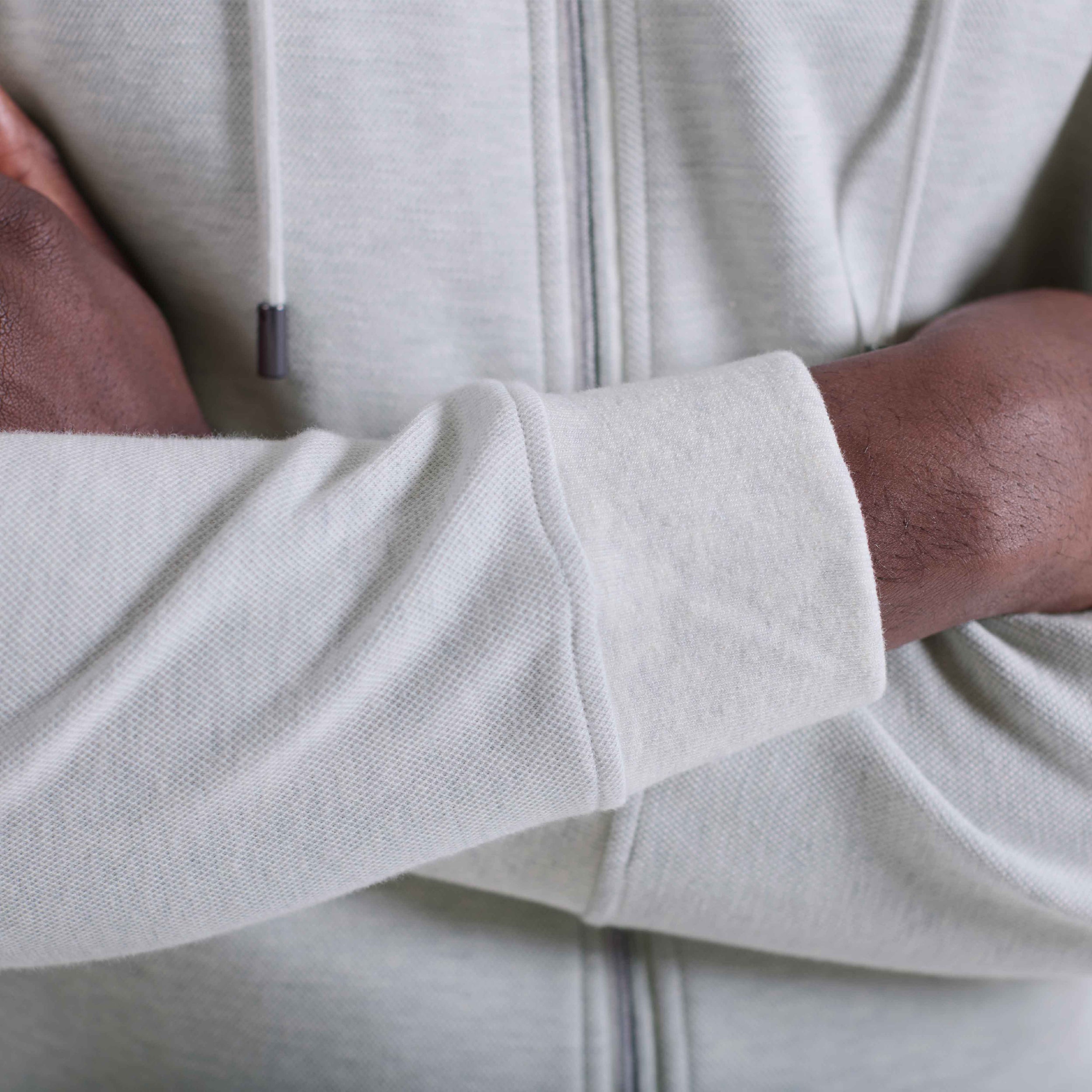 Crafted from a premium performance polyester-cotton blend, this hoodie features a heathered pique exterior with a soft heathered jersey interior for a comfortable, double-faced finish. Designed with a drawstring hood, two-way zipper closure, and two zippered side pockets with covered plackets. Contrast tipping detail on the zipper placket and pocket plackets adds a refined touch.