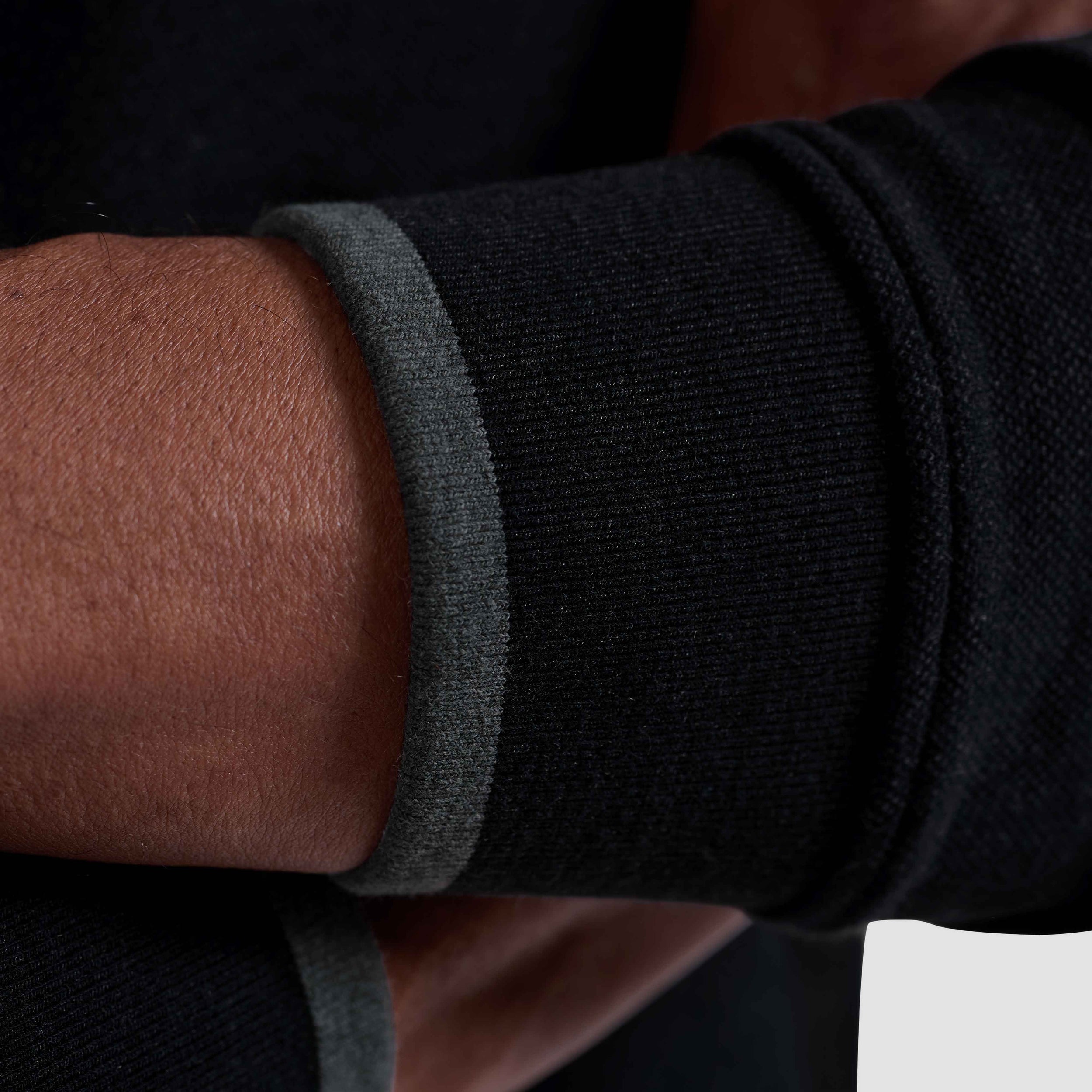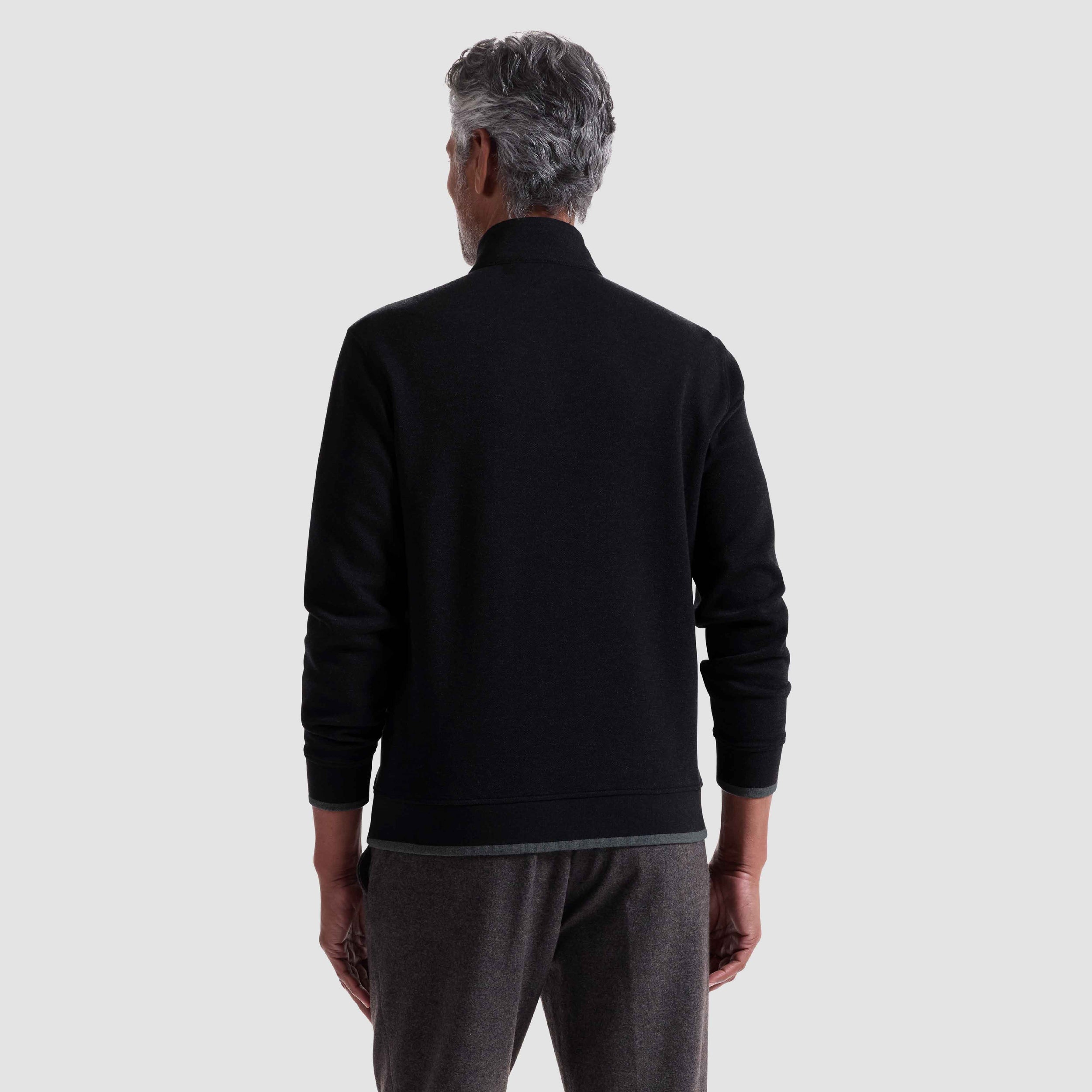 Crafted from a premium performance polyester-cotton blend, this long sleeve quarter zip features a heathered pique exterior with a soft heathered jersey interior for a comfortable, double-faced finish. The zipper placket is framed with sleek nylon trim, while the zippered pocket plackets are fully constructed in nylon for a modern, structured finish. Finished with melange ribbed cuffs and hem, accented by a subtle contrast tipping detail.