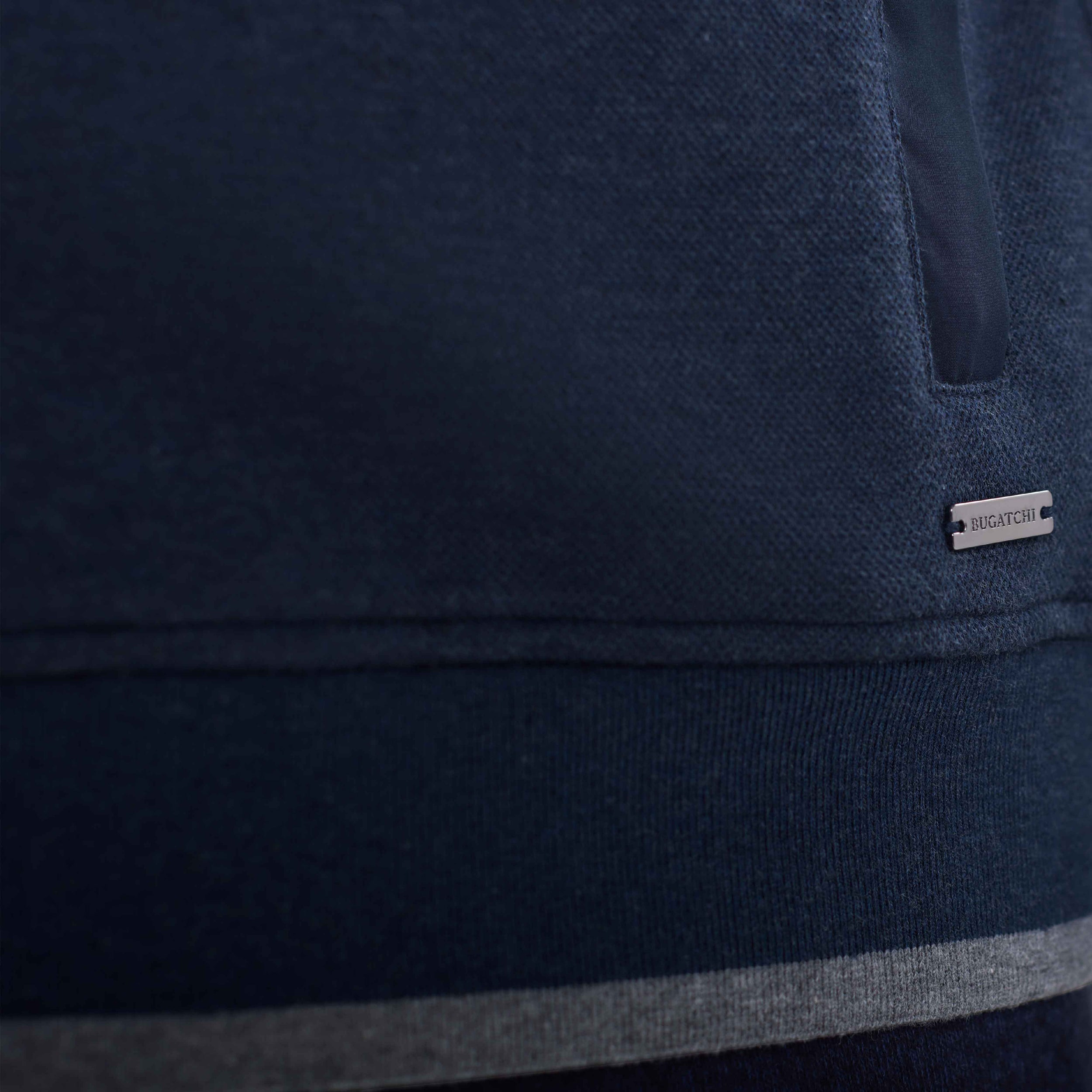 Crafted from a premium performance polyester-cotton blend, this long sleeve quarter zip features a heathered pique exterior with a soft heathered jersey interior for a comfortable, double-faced finish. The zipper placket is framed with sleek nylon trim, while the zippered pocket plackets are fully constructed in nylon for a modern, structured finish. Finished with melange ribbed cuffs and hem, accented by a subtle contrast tipping detail.