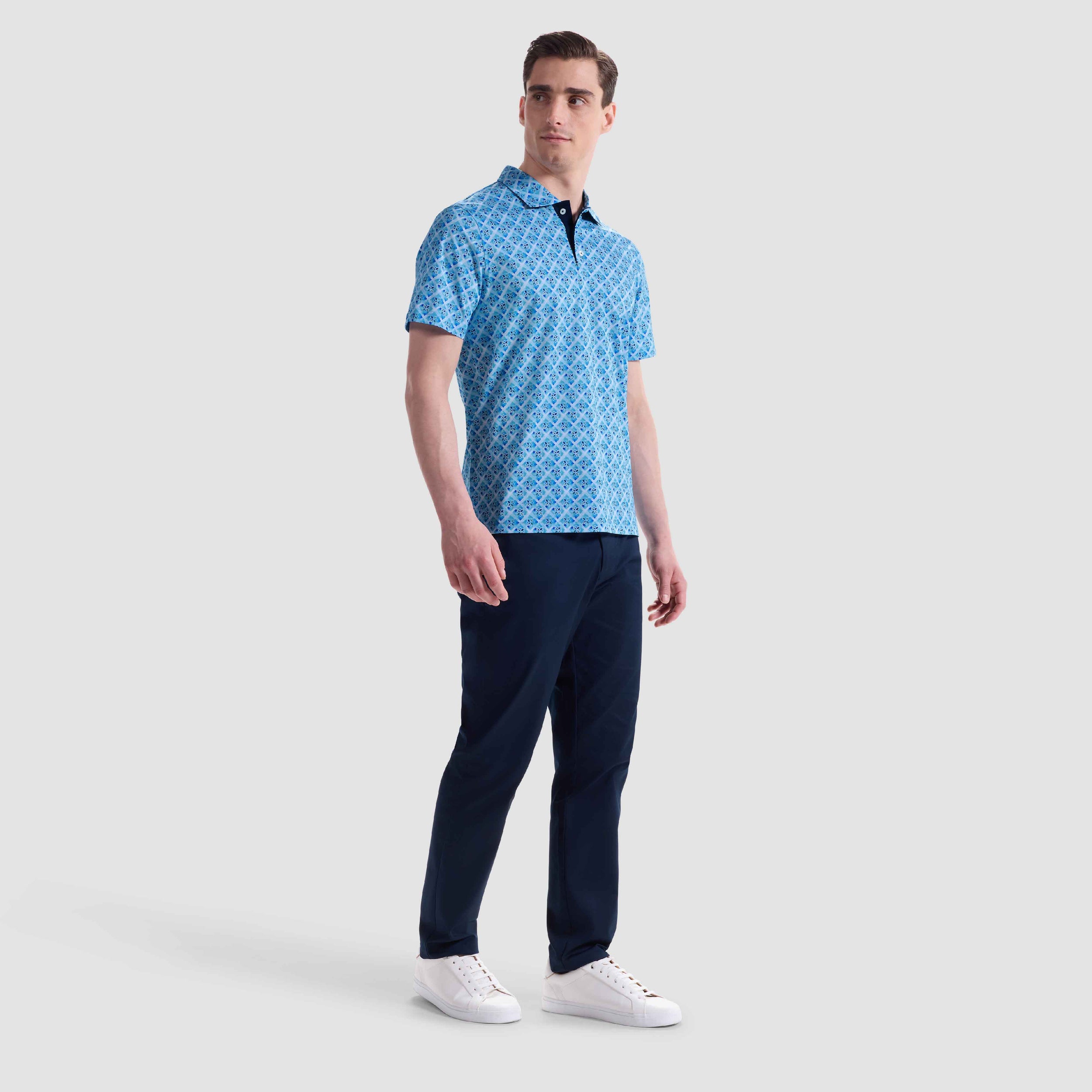 The Hendrix digital floral tile print polo is crafted from ultra-soft 100% Pima cotton finished with a premium Turkish process that enhances softness, durability, and breathability. With a three-button placket, mother-of-pearl buttons, and a self-fabric collar, this polo delivers a perfect balance of style, comfort and function, making it an ideal choice for resort wear, casual outings, and days on the golf course.