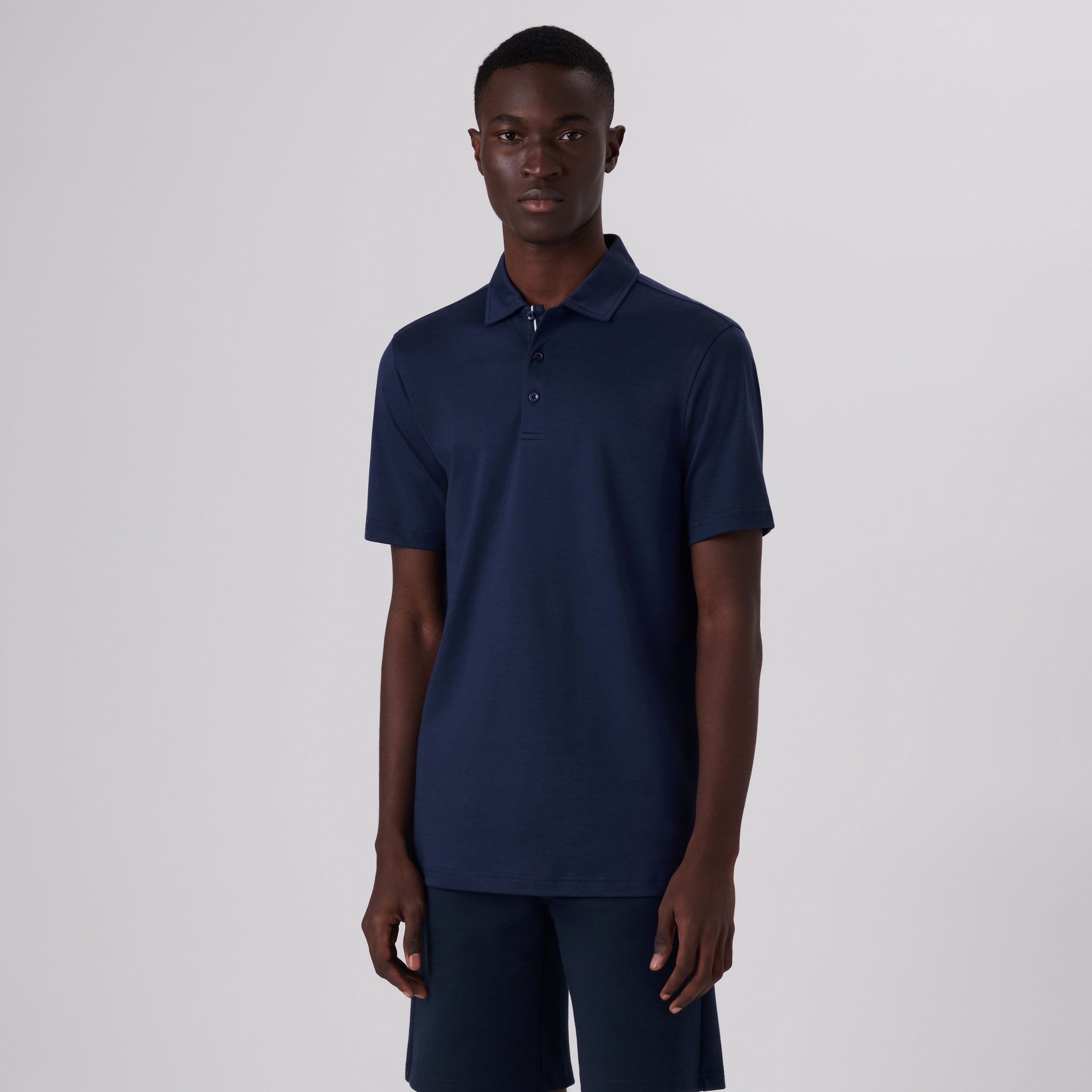 The Hendrix short-sleeved polo shirt in 100% Pima Cotton with super soft finish features a classic three-button placket and a self collar with contrast ribbon detail inside and all around the collar band, placket and side vents. Perfect for golf, resort wear and casual occasion, it offers a comfortable fit and exceptional durability.