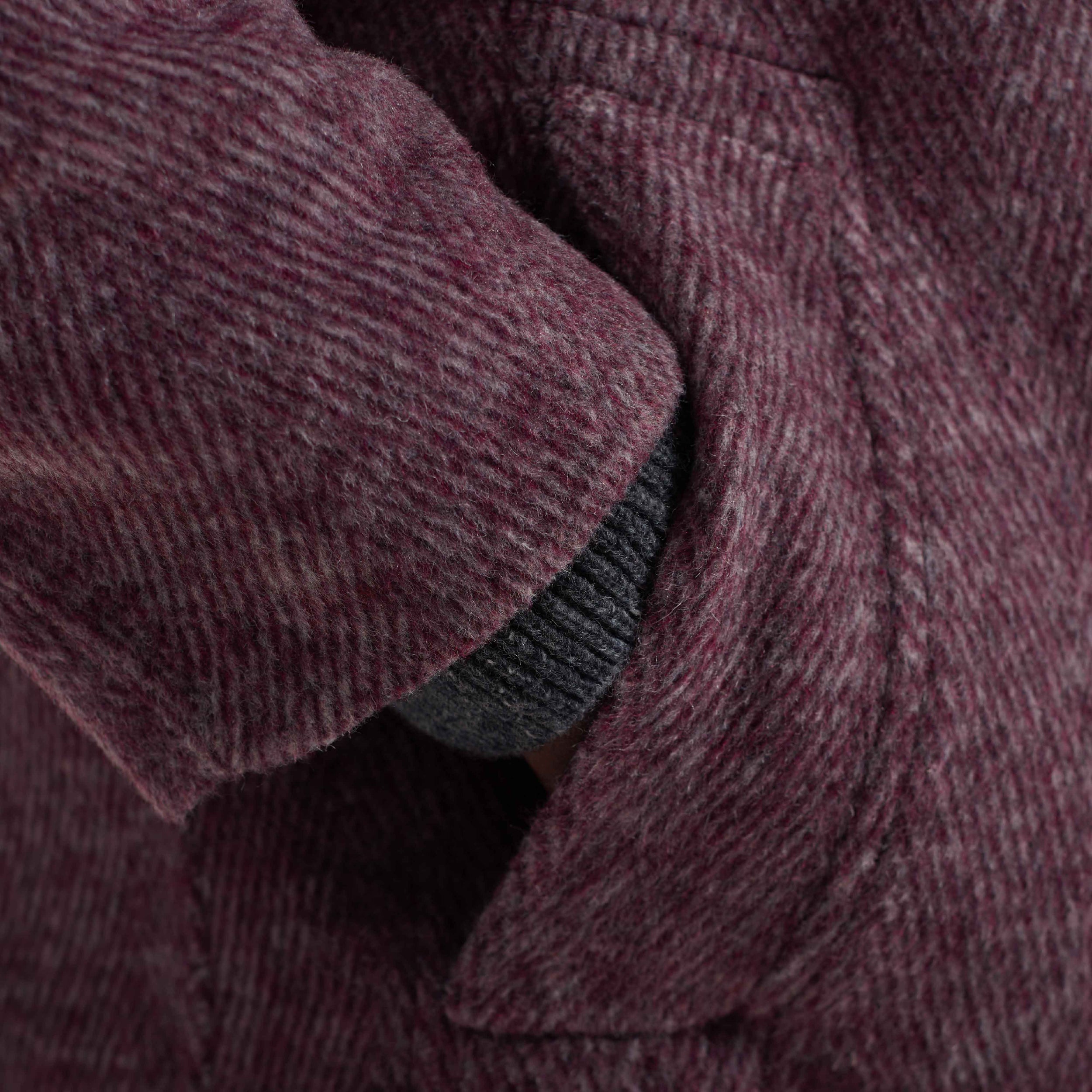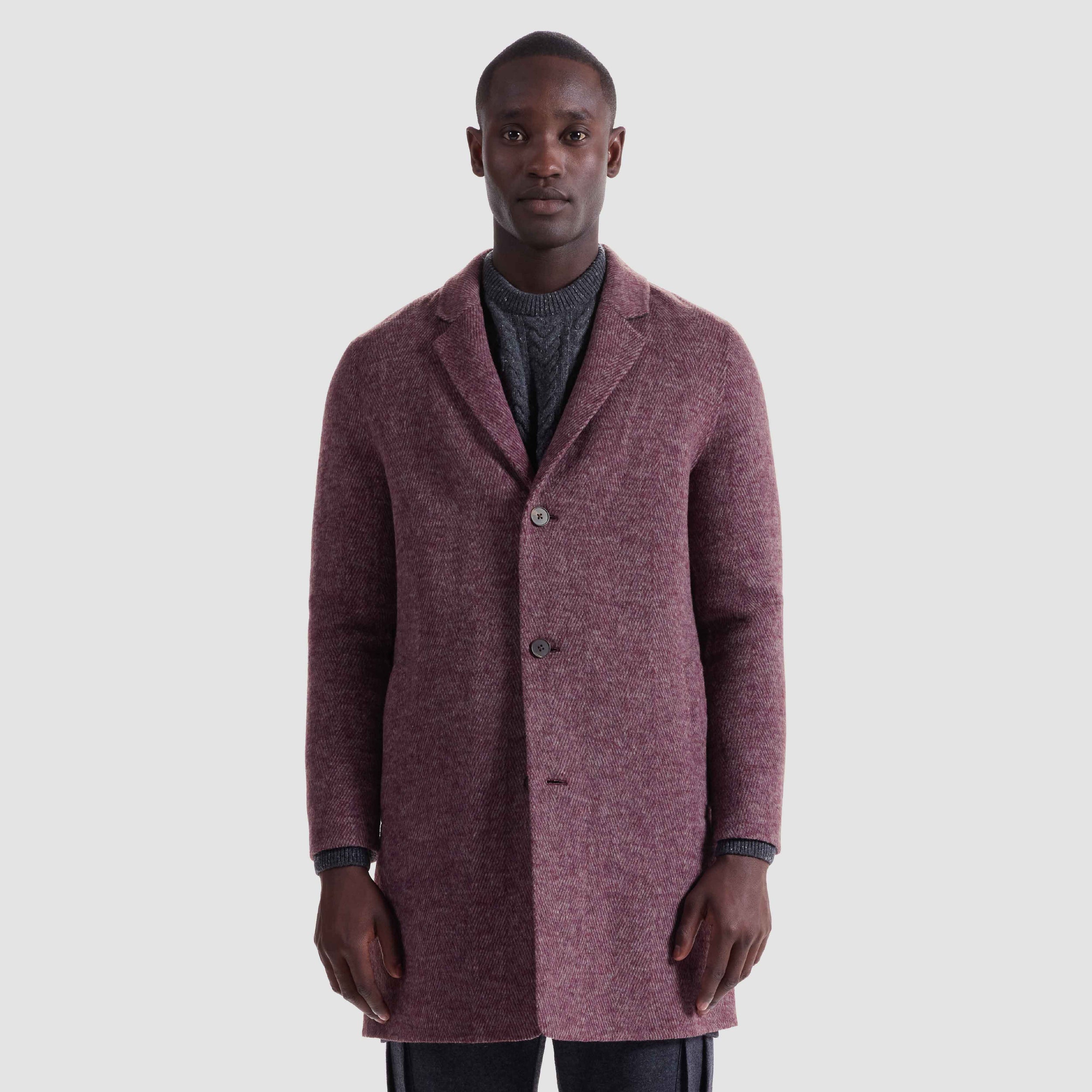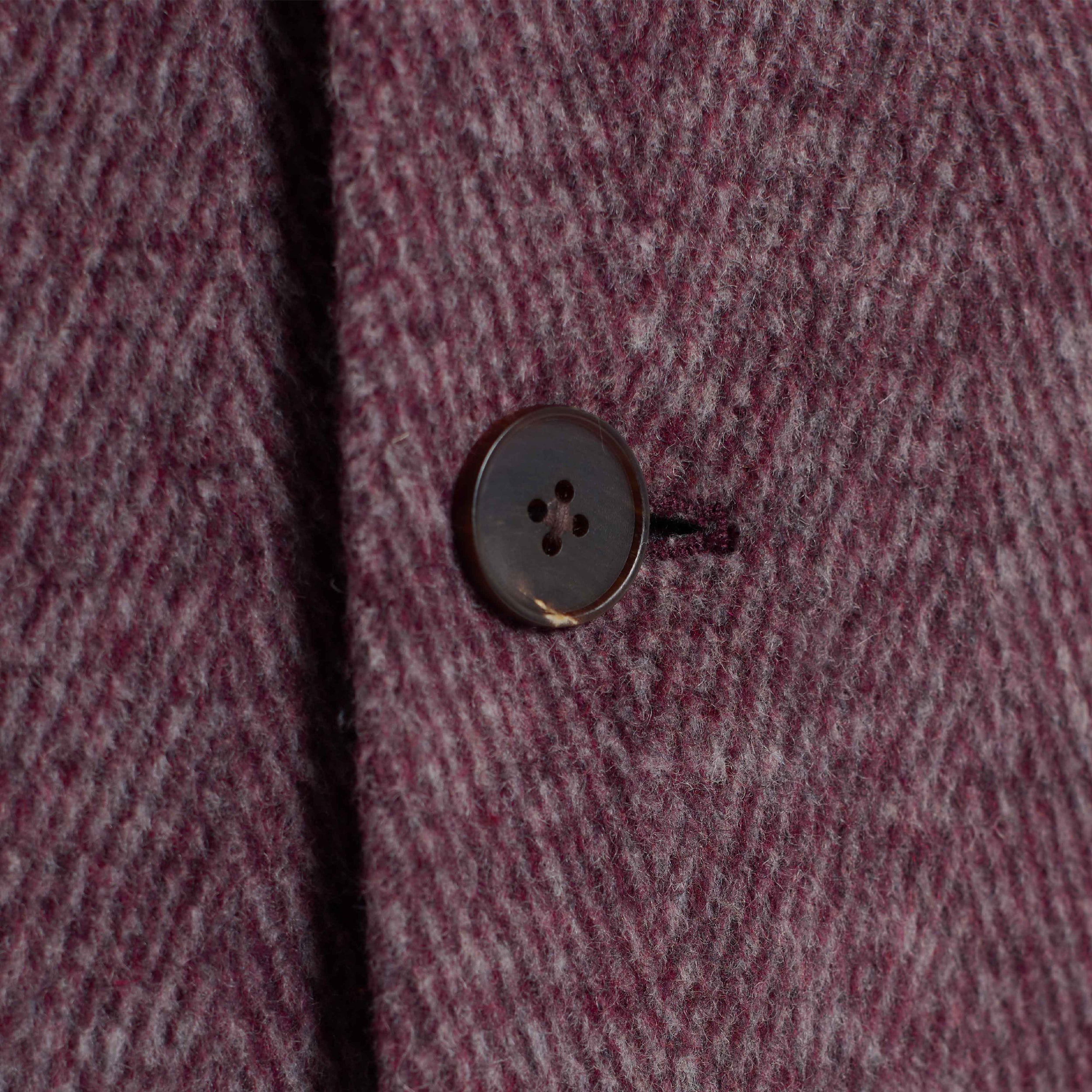Elevate your outerwear with this refined wool-blend coat featuring a classic herringbone pattern and a notched lapel. Designed with a full button closure accented by eco-friendly corozo buttons, it includes two generously sized welt pockets and one inner pocket for added storage. The back vent ensures ease of movement and a tailored finish.