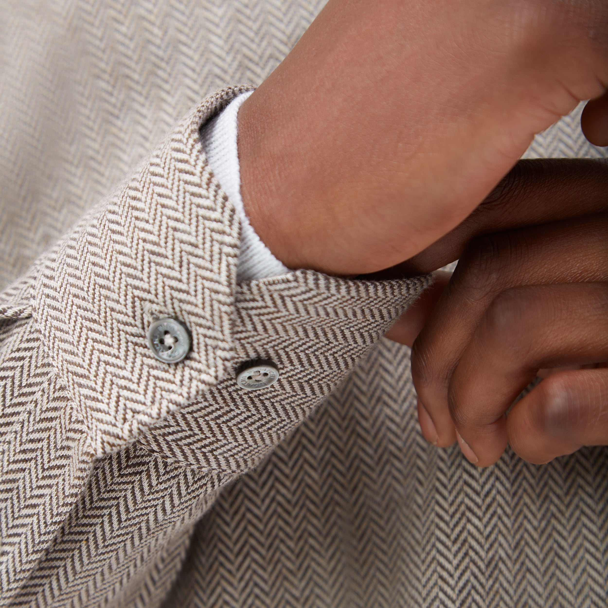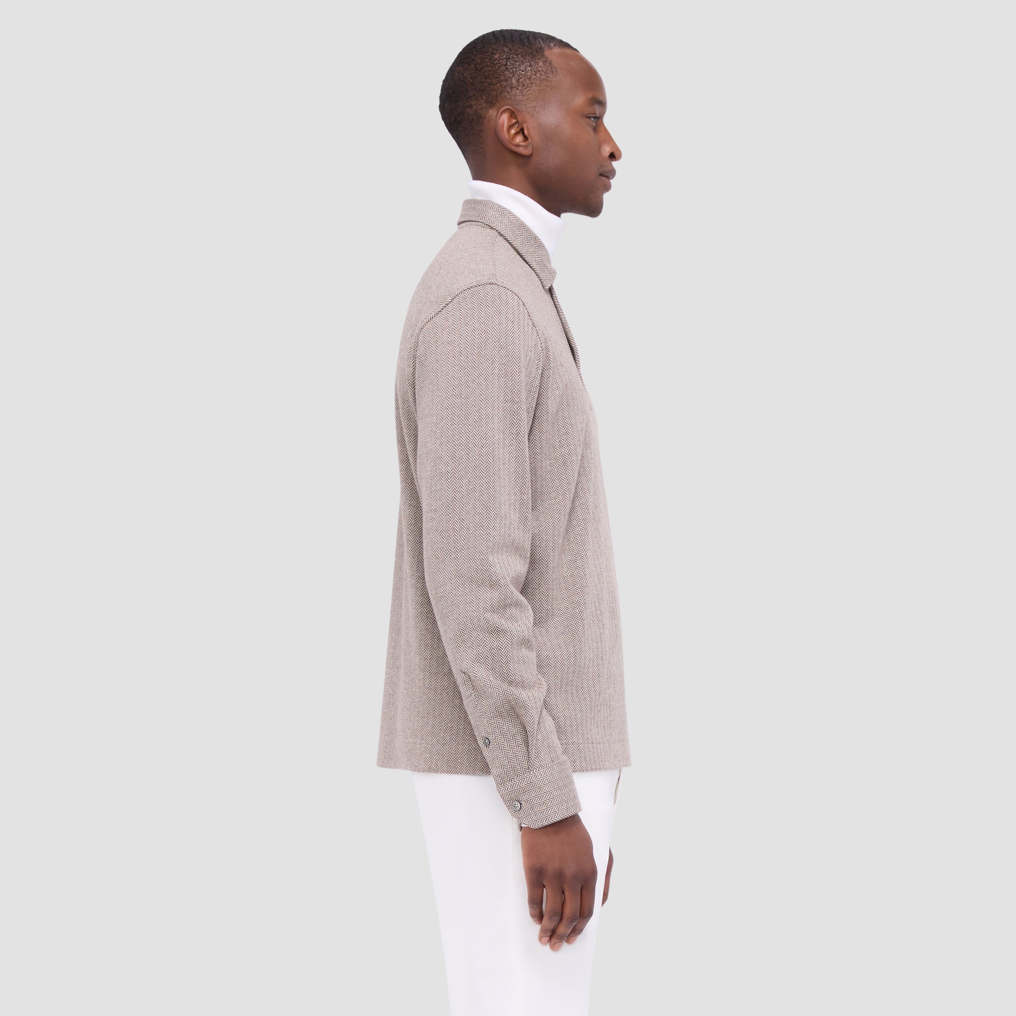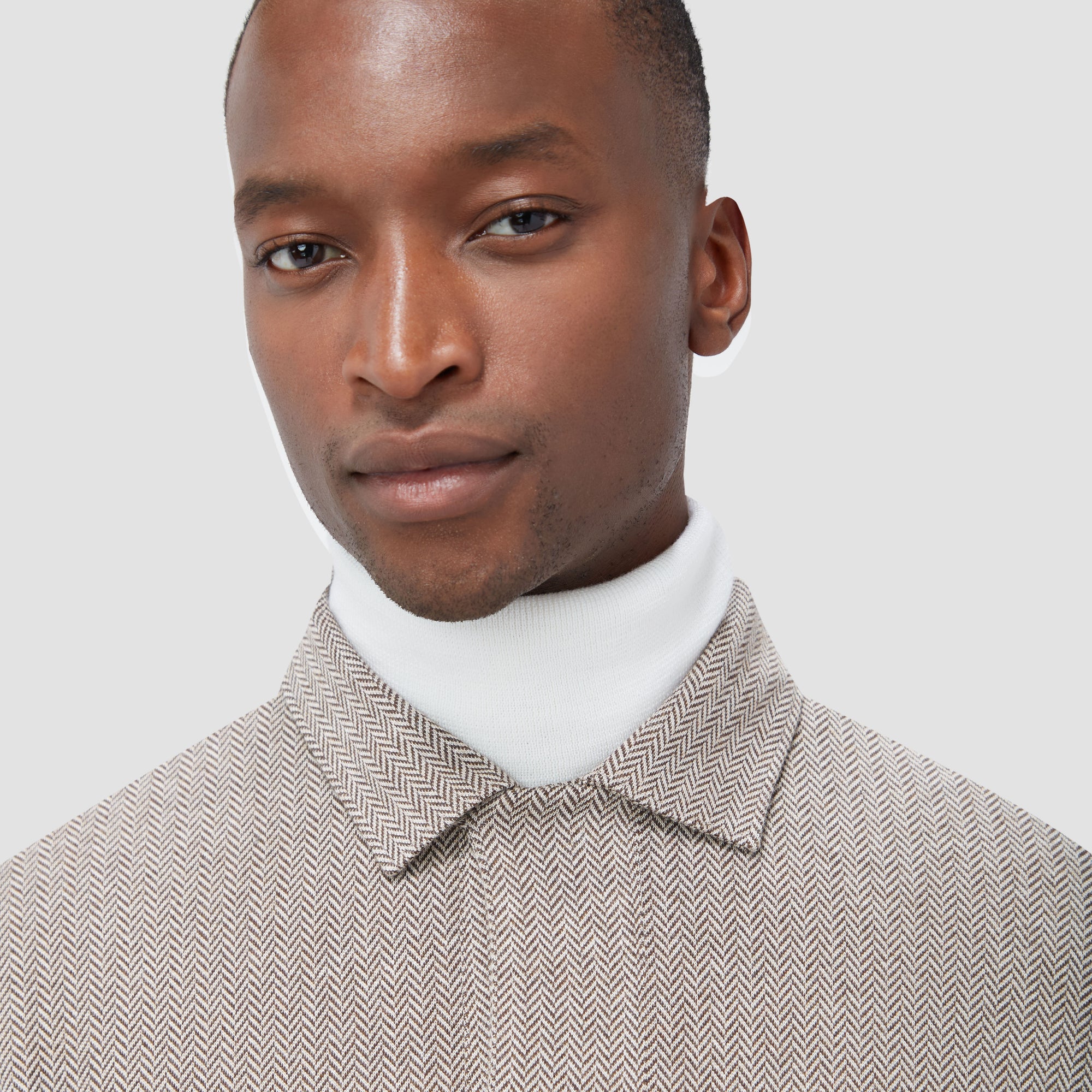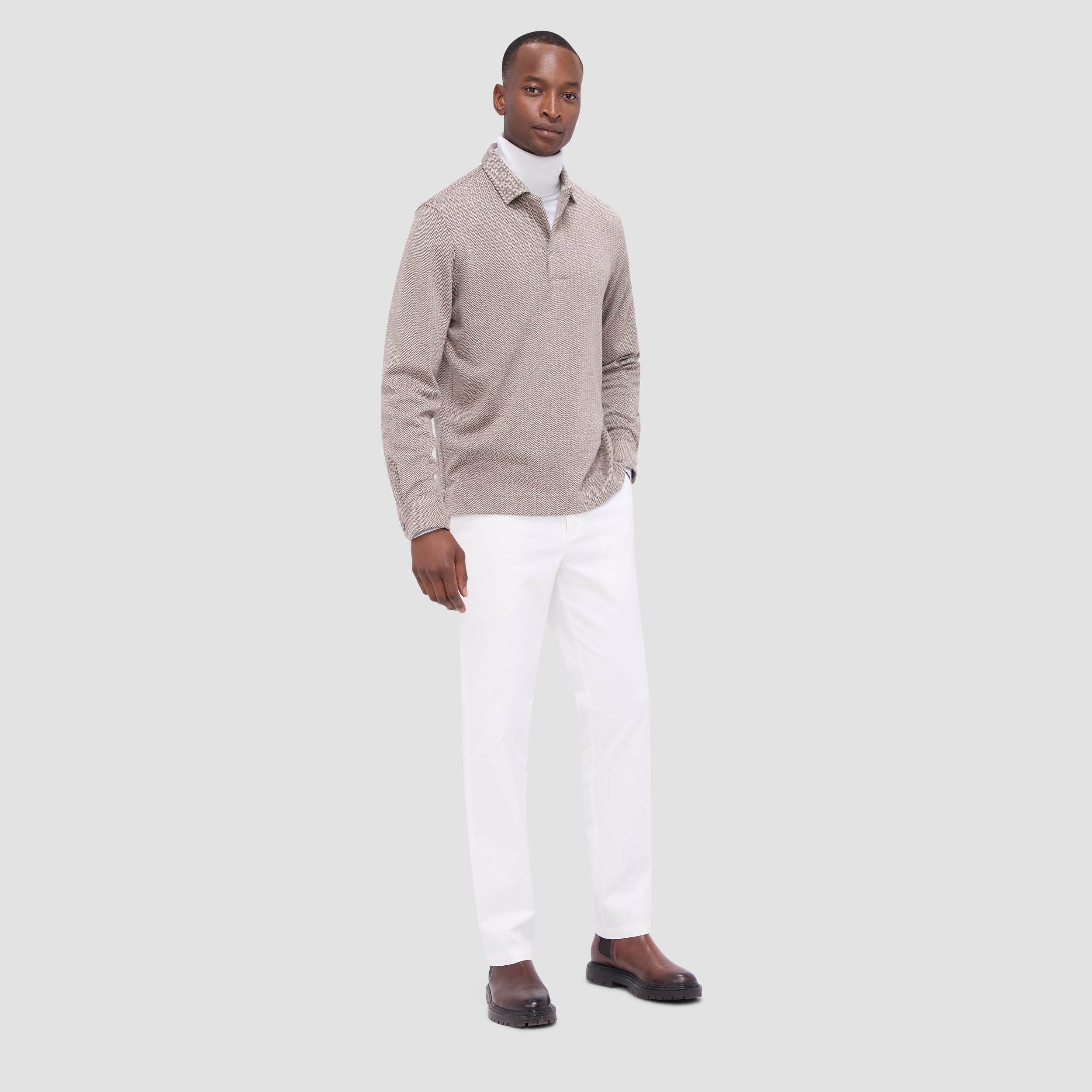 Embrace timeless elegance with this long sleeve polo shirt, expertly crafted from a soft cotton blend with a distinctive herringbone pattern. This elegant polo features a three-button covered placket and a self-fabric collar. Perfect for any occasion.