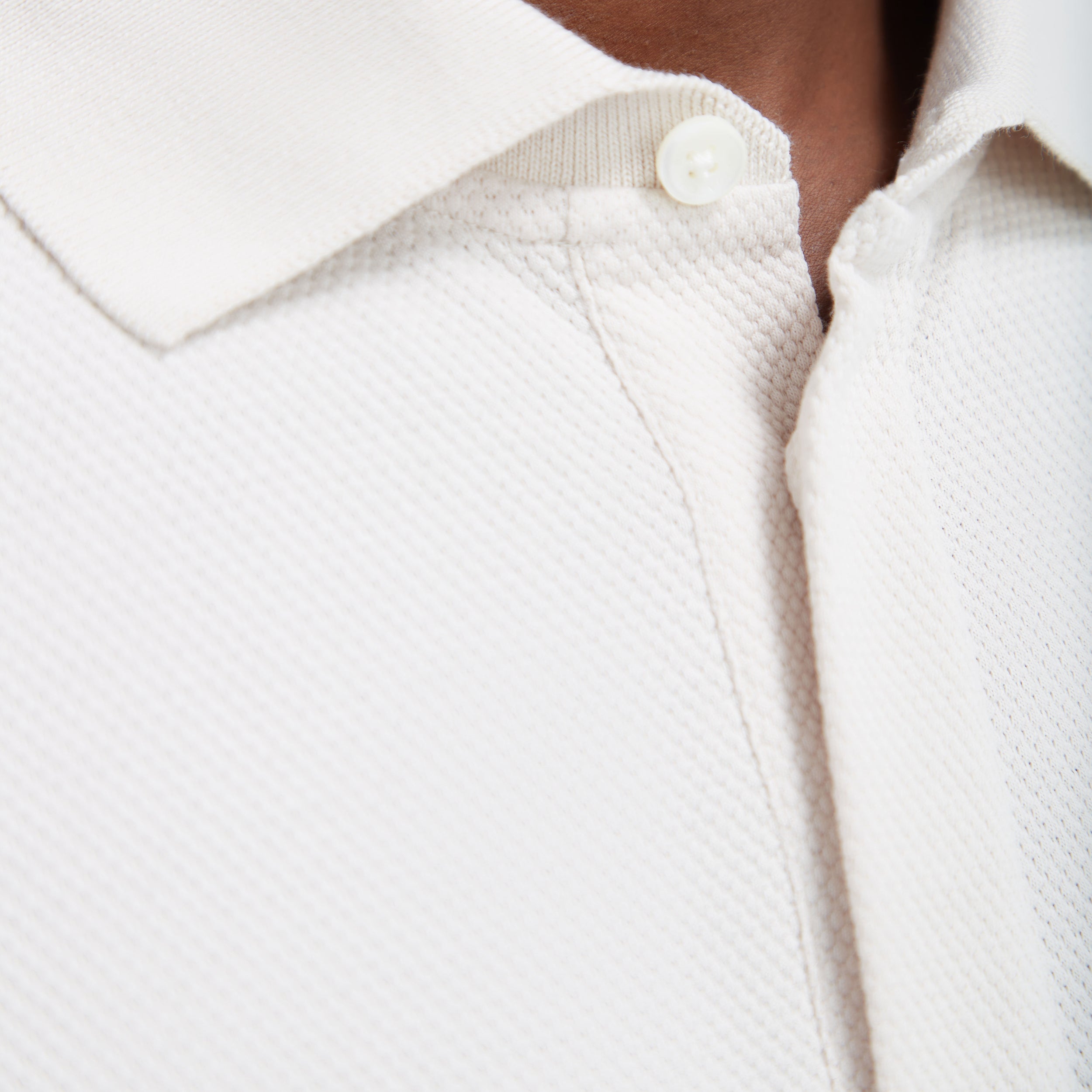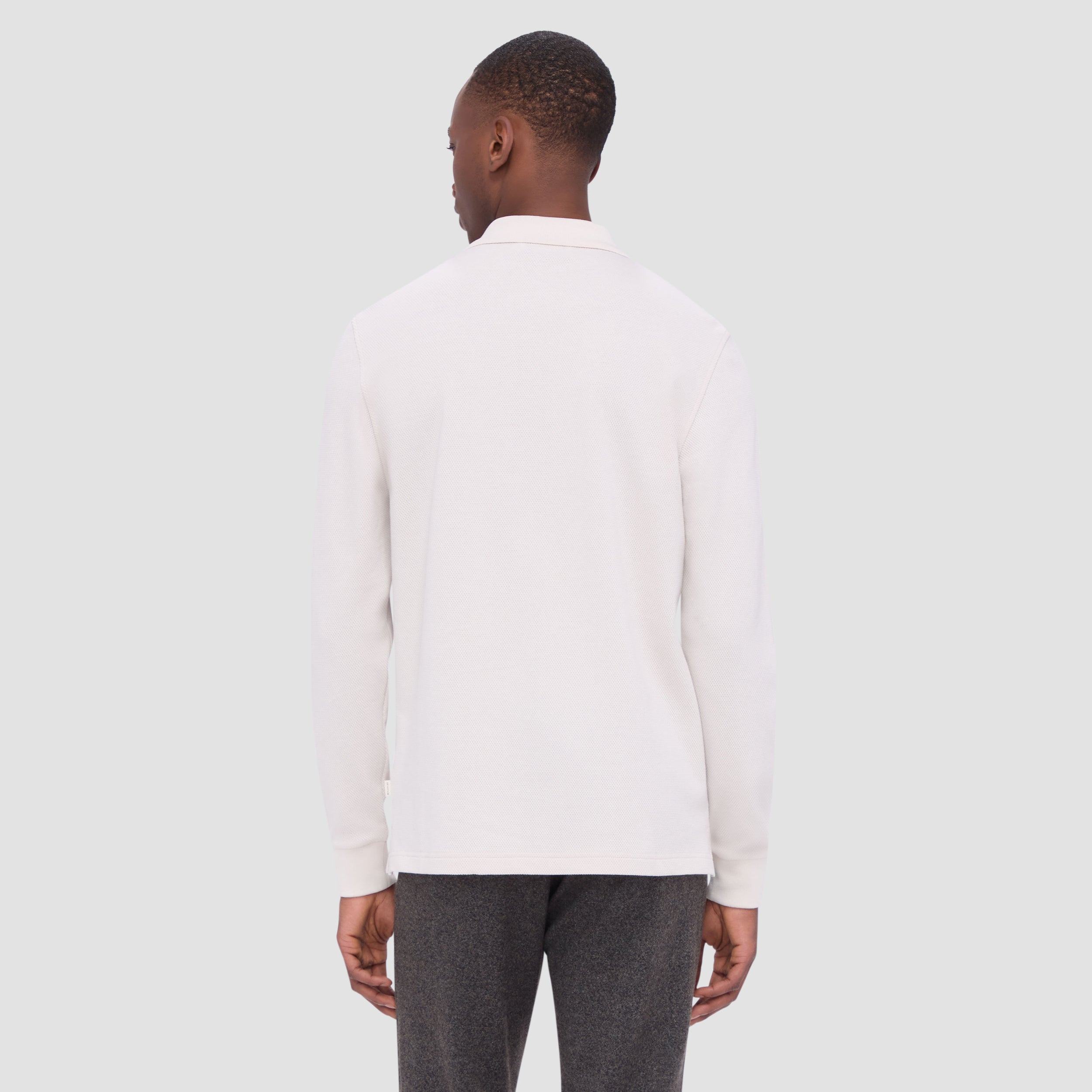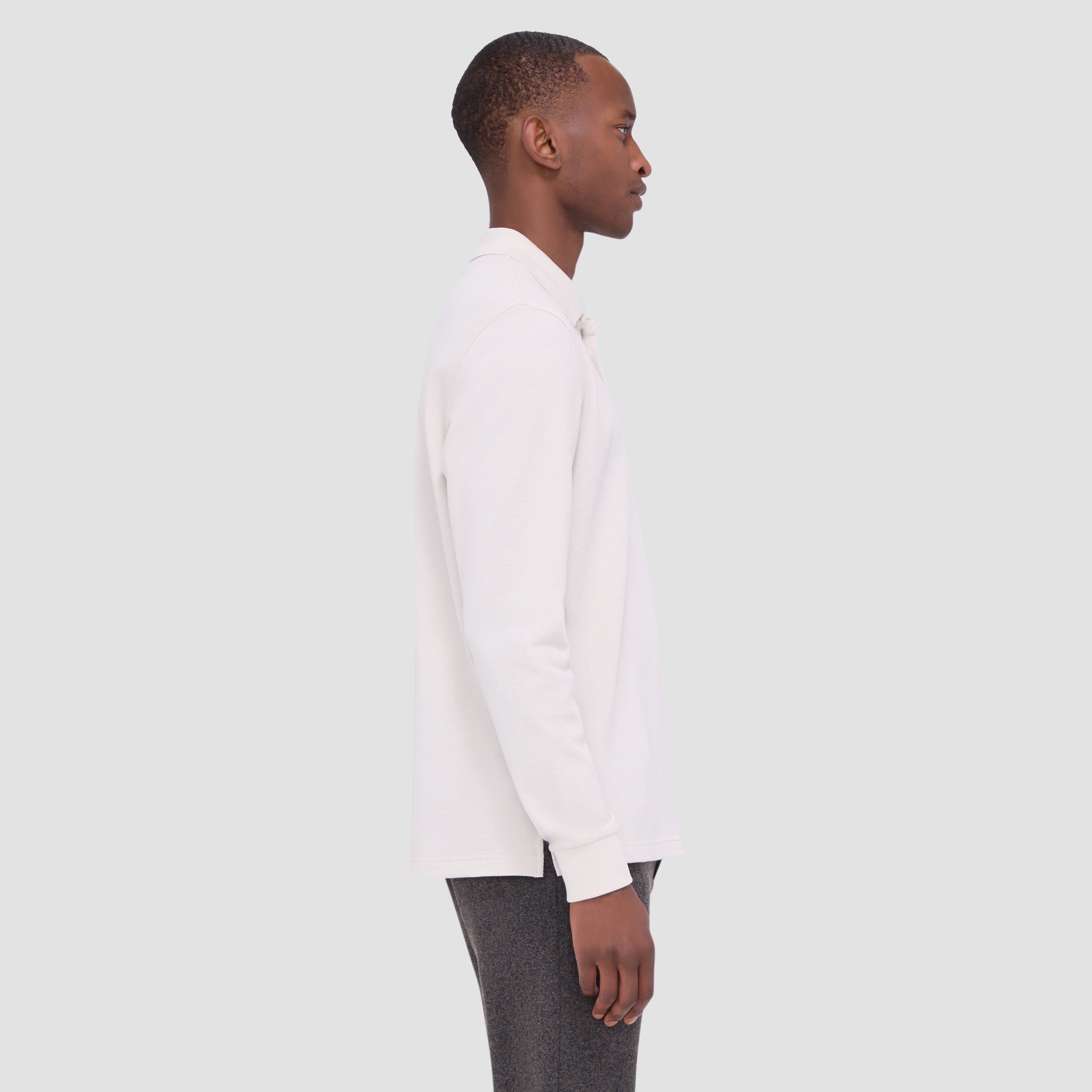 Enhance your wardrobe with this long sleeve polo shirt, crafted from a comfortable stretch cotton blend. Featuring a sophisticated honeycomb knit pattern, this polo ensures both style and ease. The three-button covered placket adds a touch of refinement and the rib-knit collar maintains a classic look. Perfect for any occasion.
