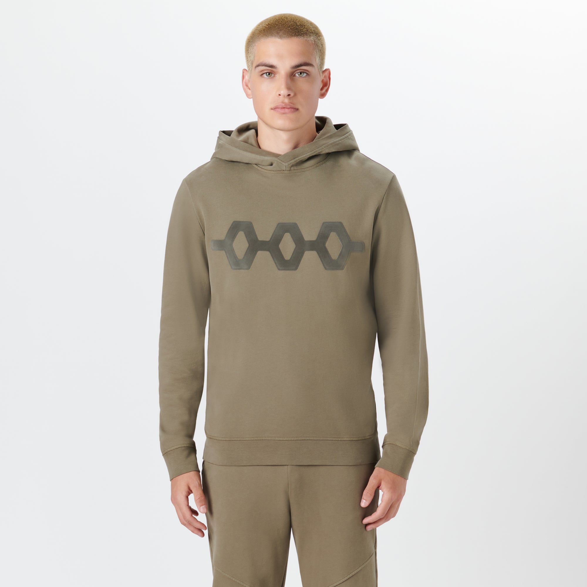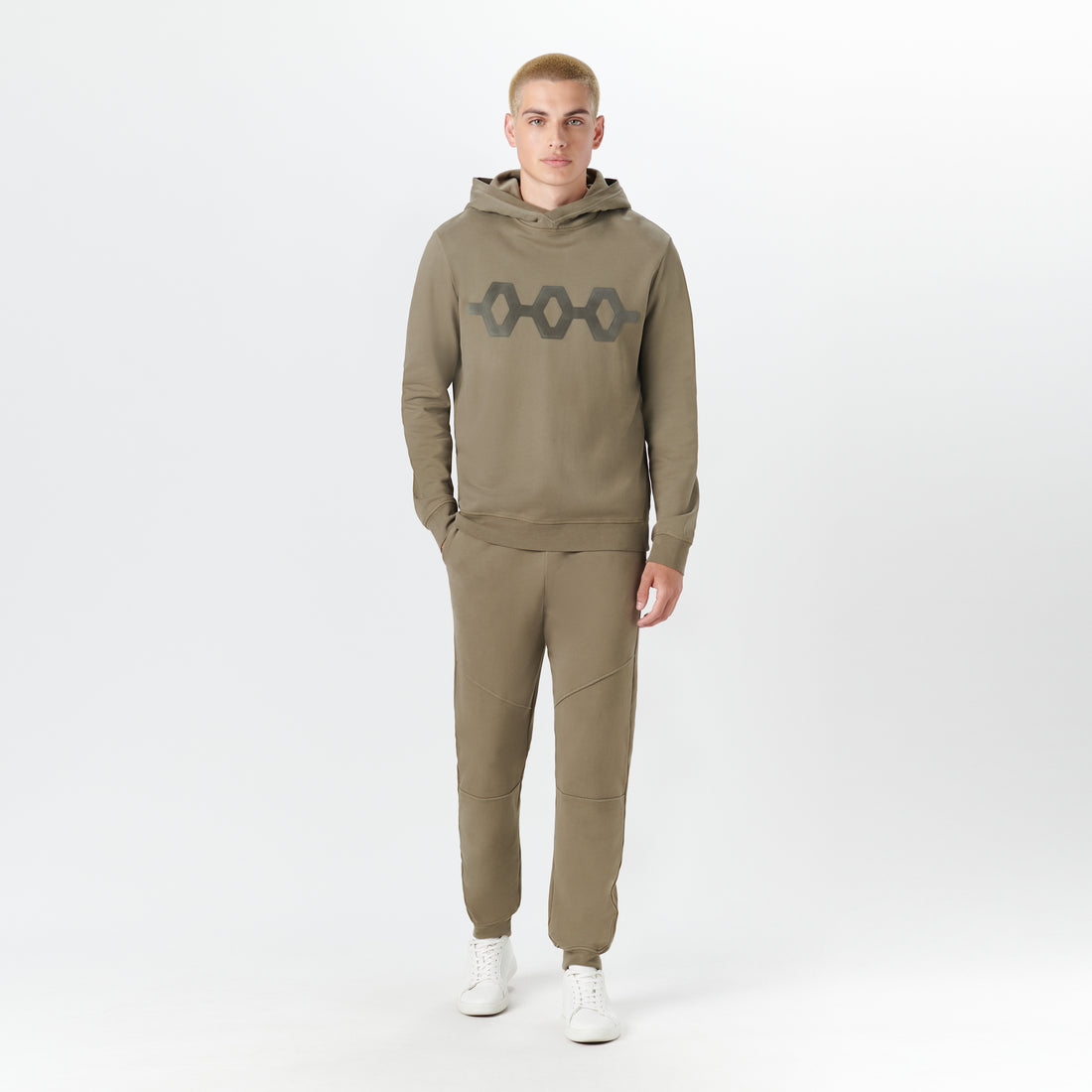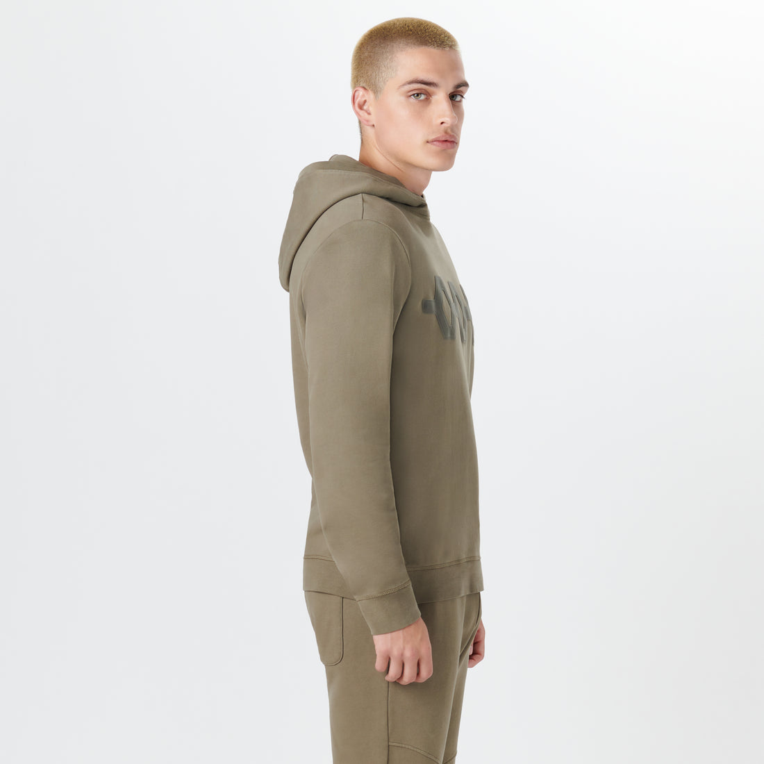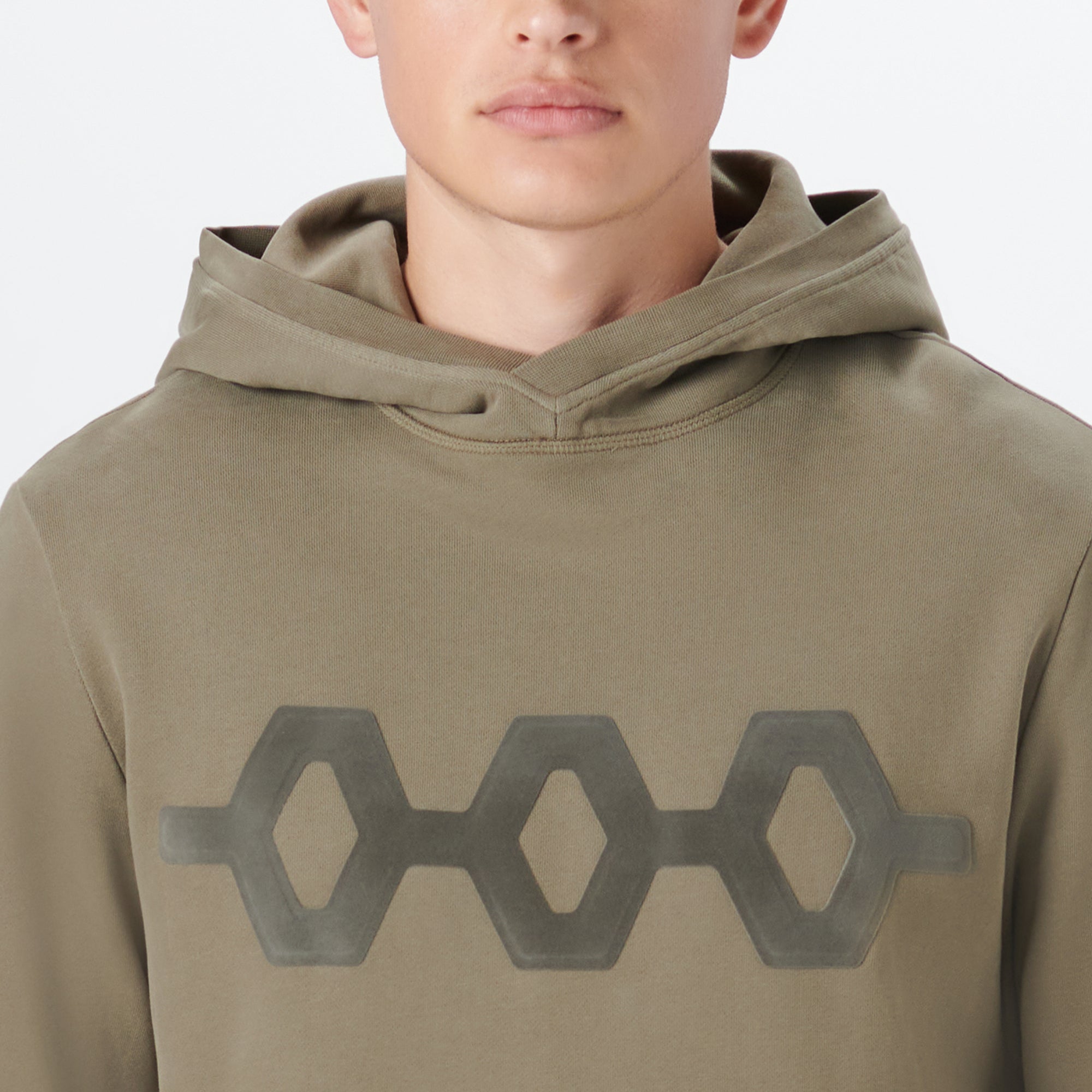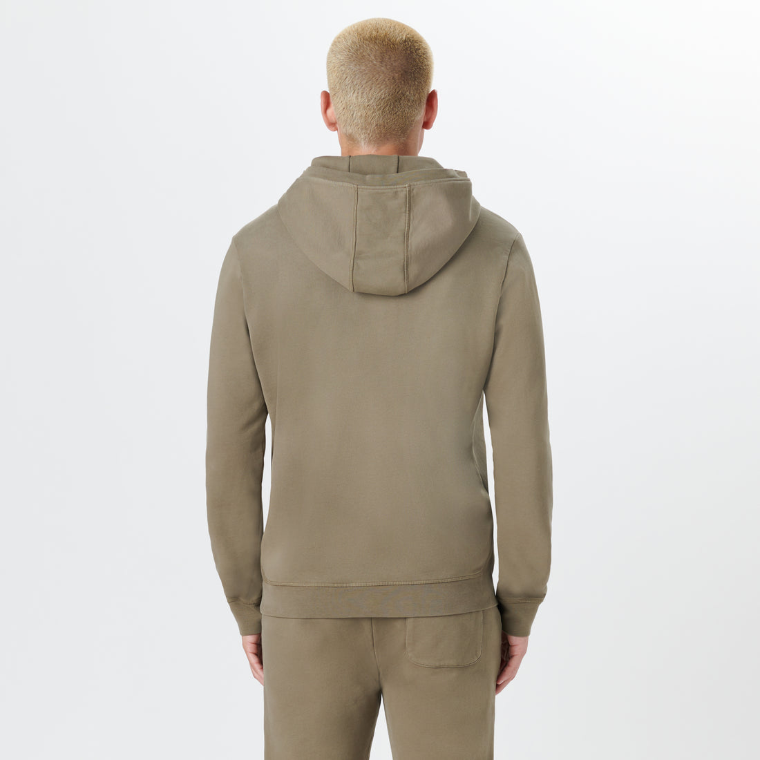 Long sleeve hoodie sweatshirt in 100% organic cotton with overlock stitch detail, and ribbed hood edge, cuffs and waistband. Made in Portugal.