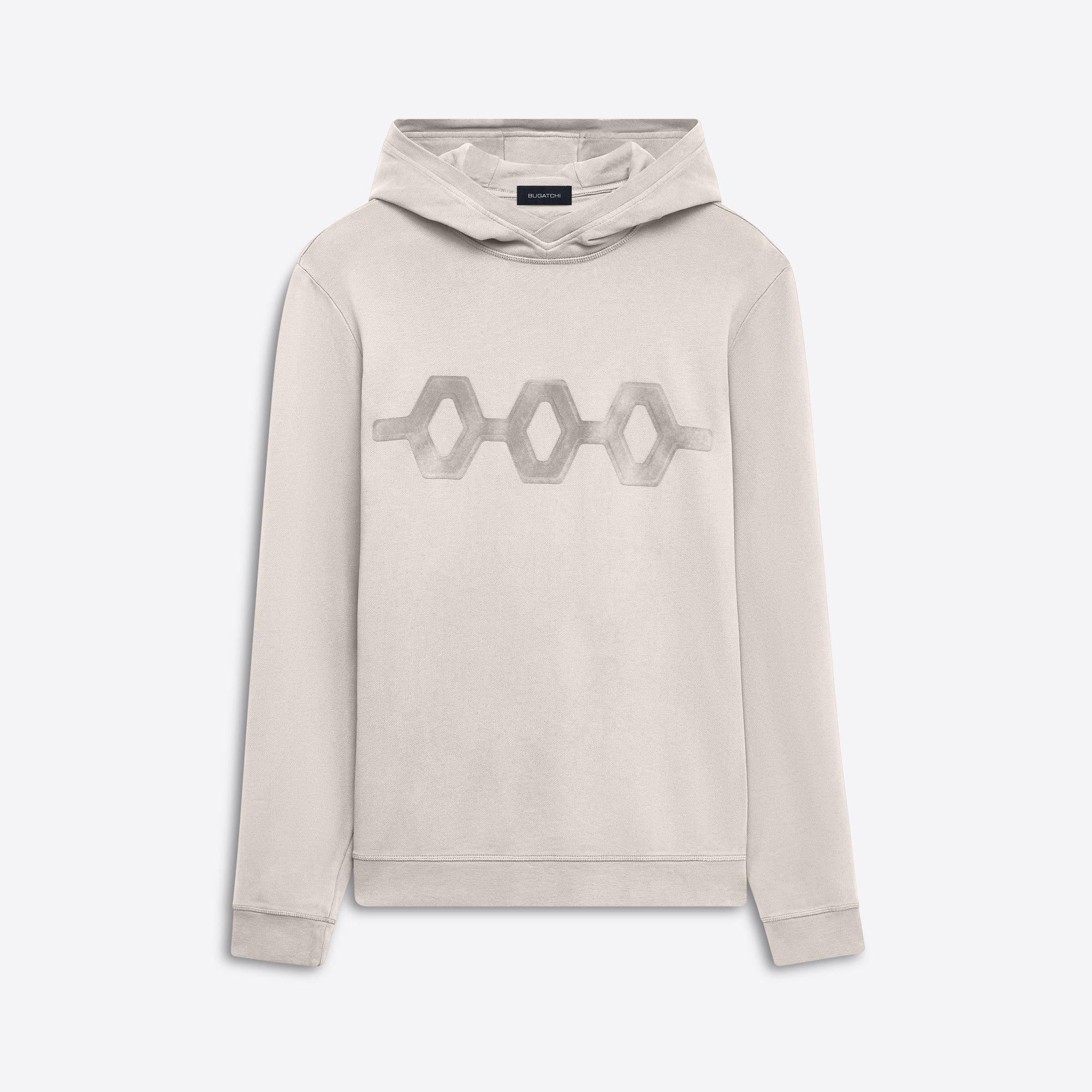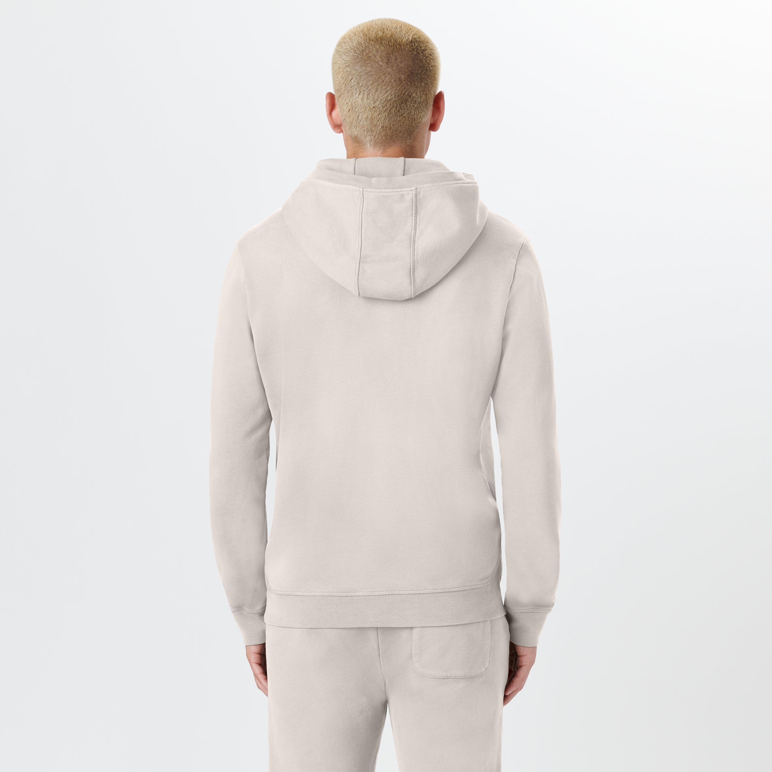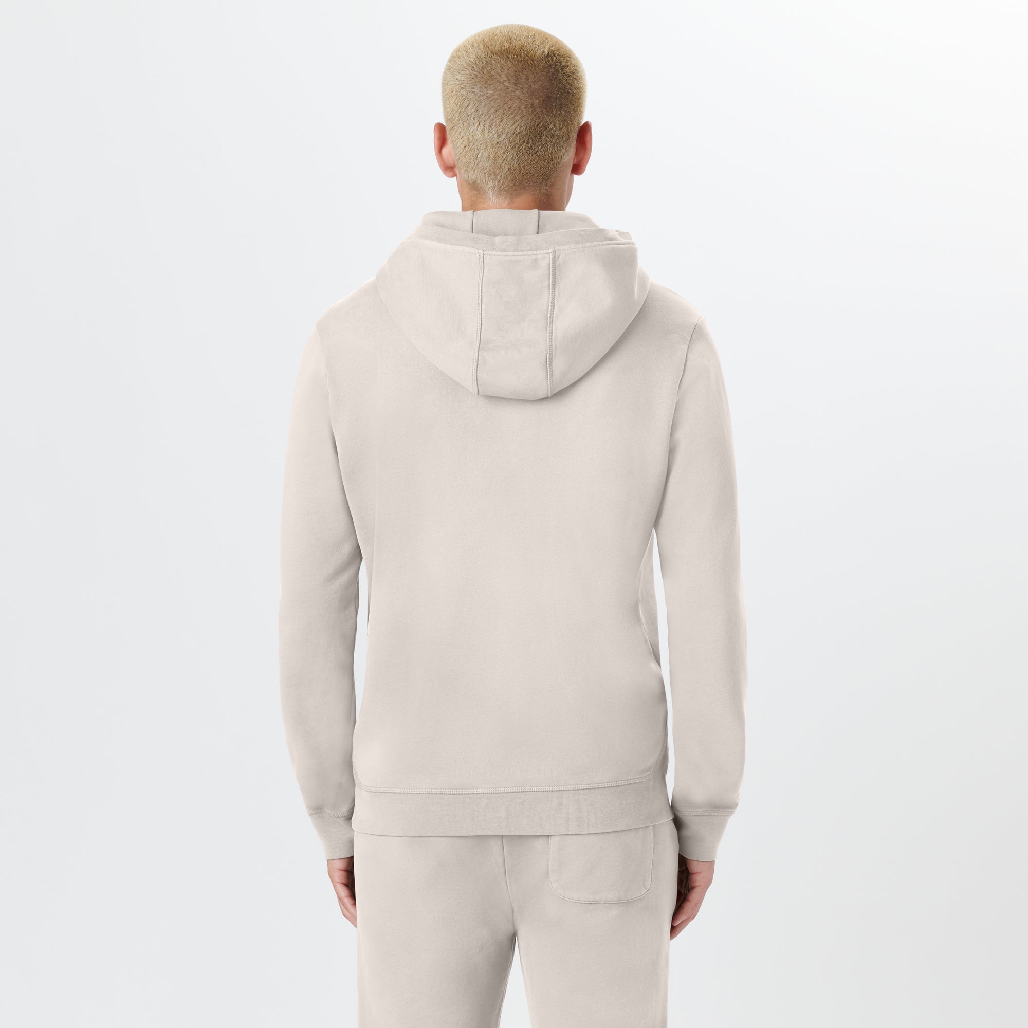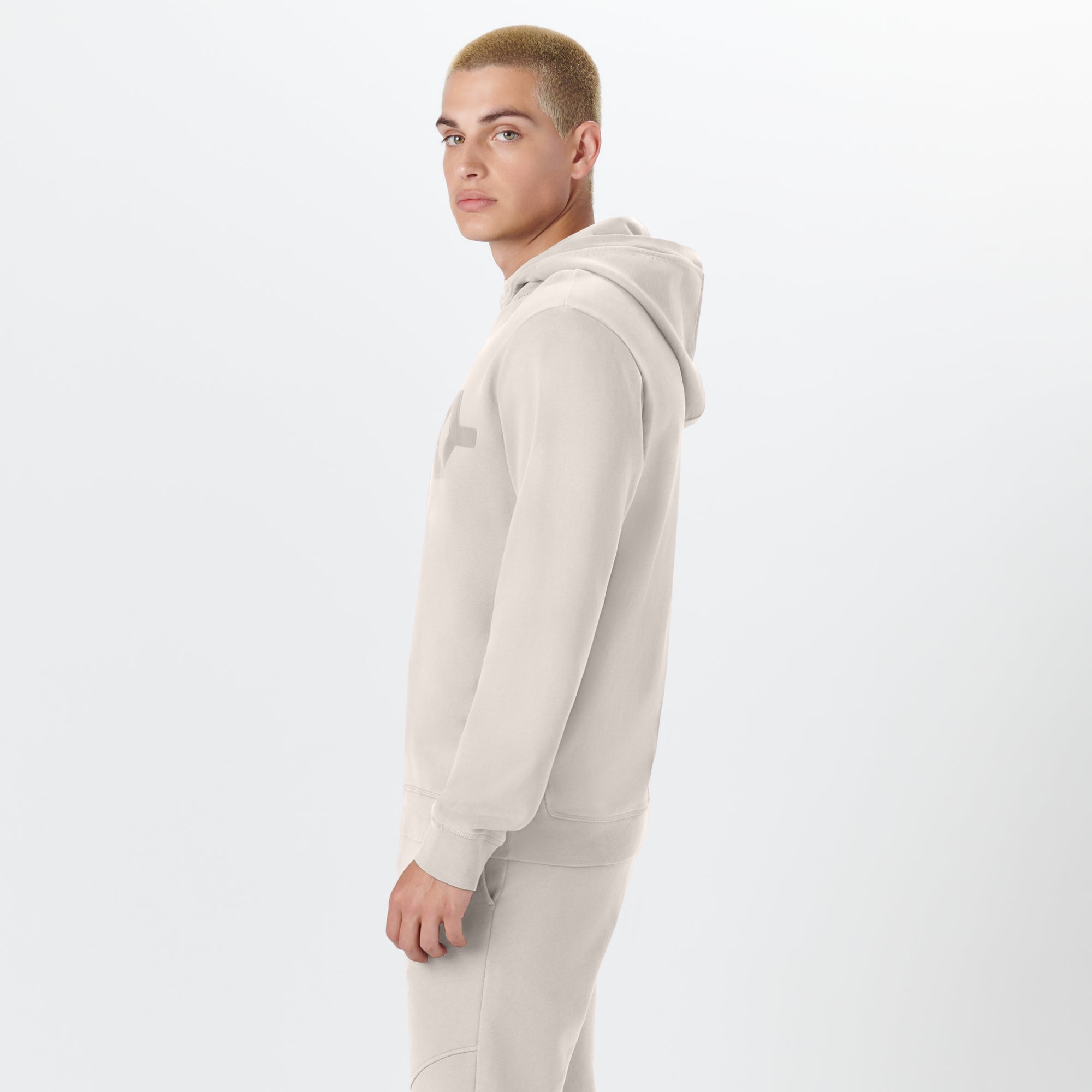Long sleeve hoodie sweatshirt in 100% organic cotton with overlock stitch detail, and ribbed hood edge, cuffs and waistband. Made in Portugal.