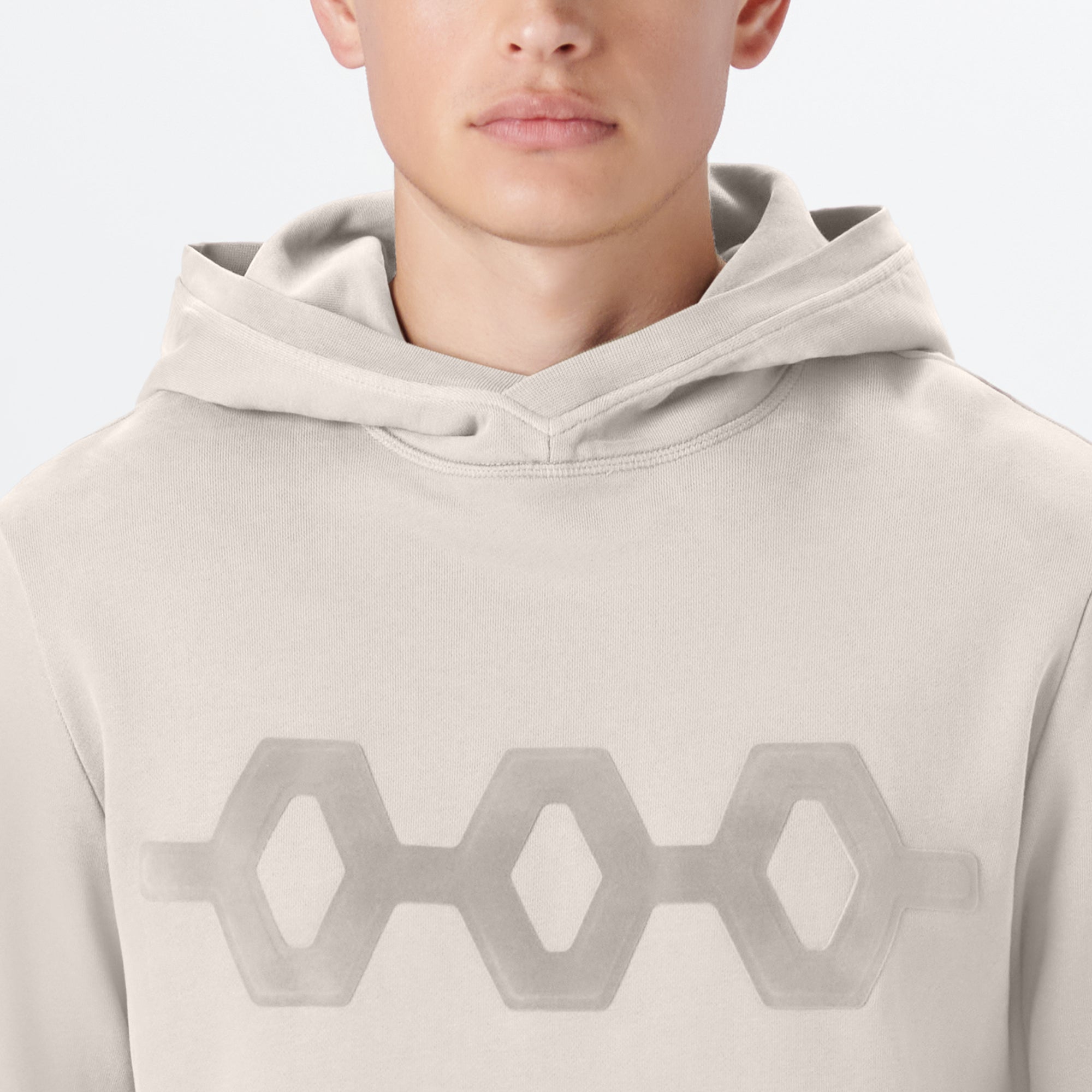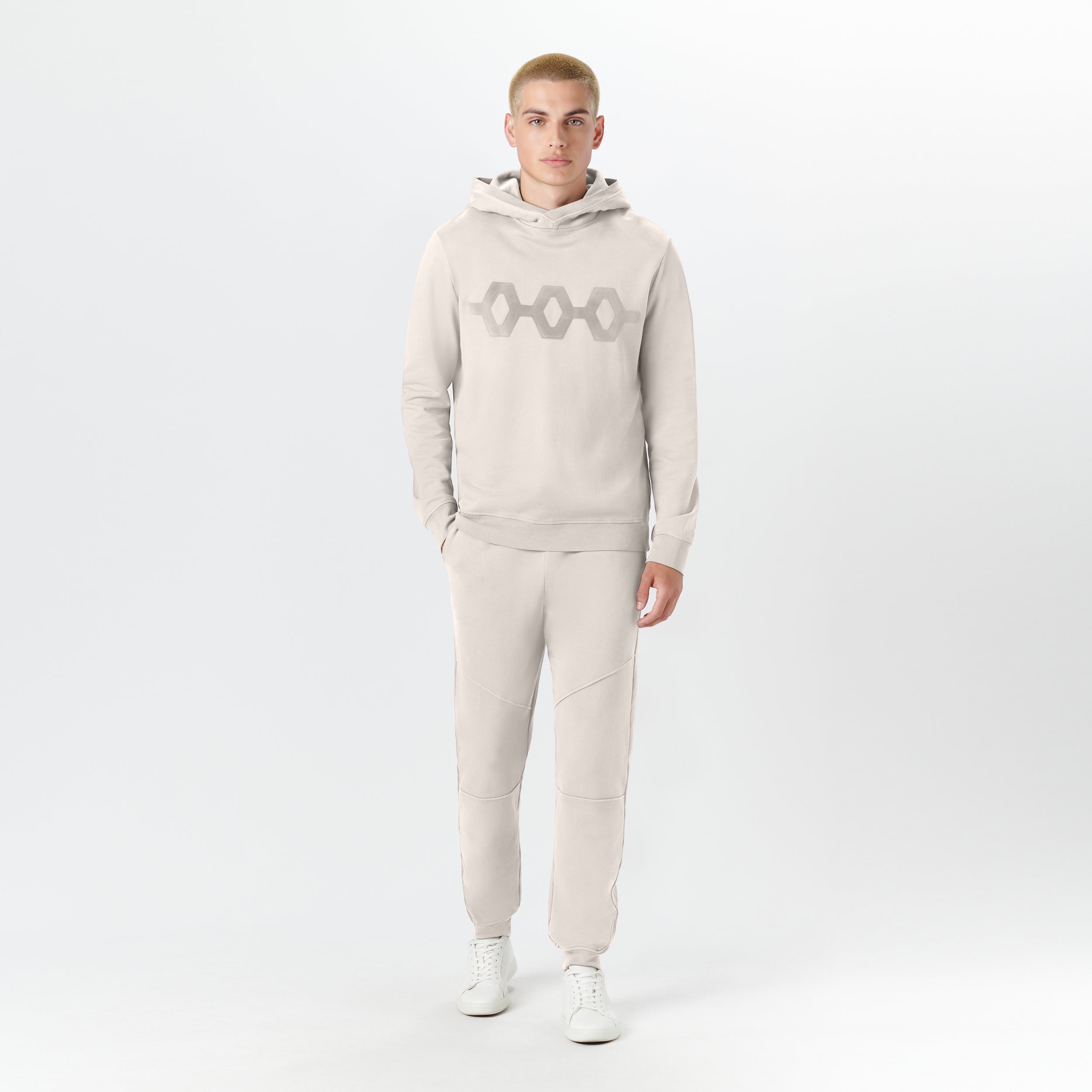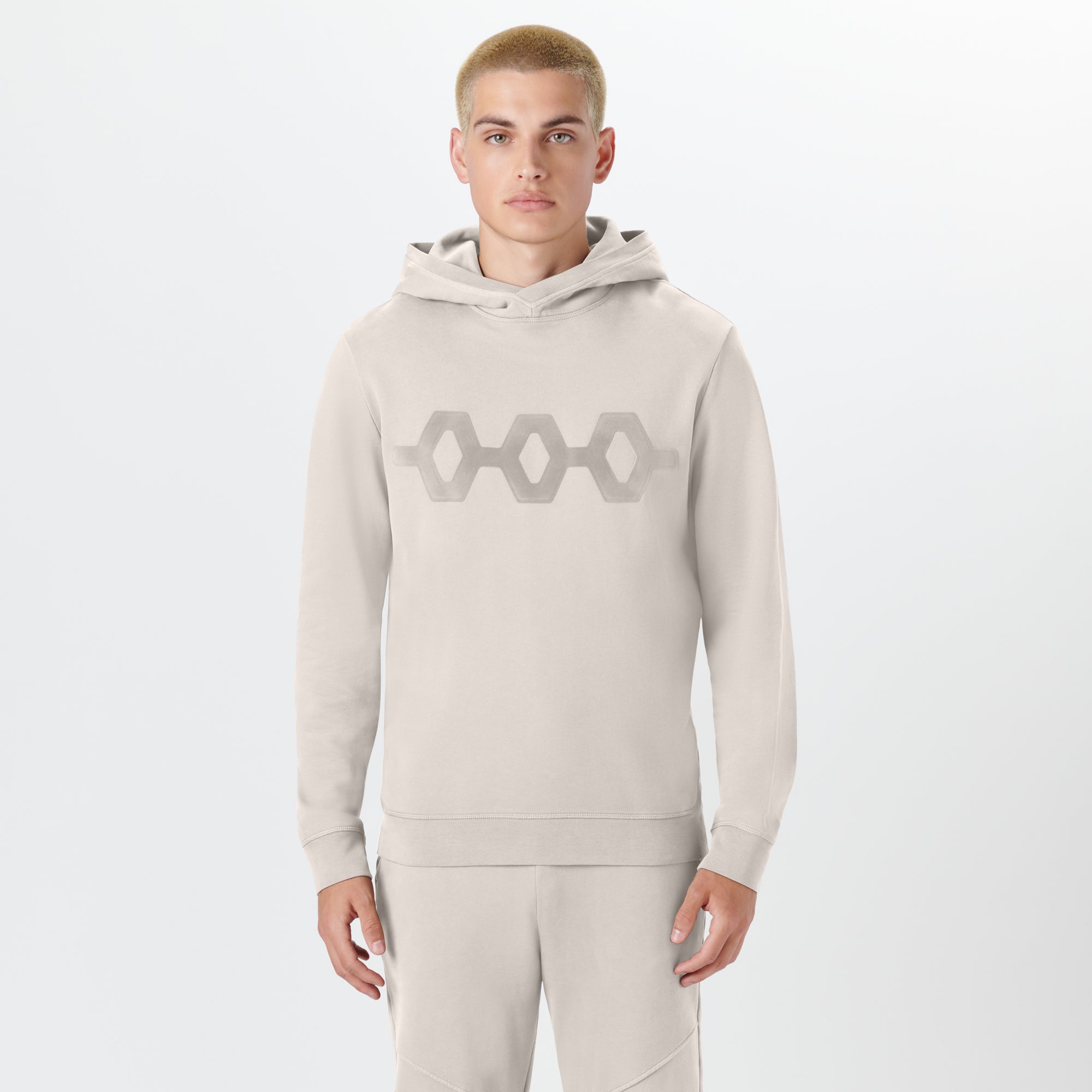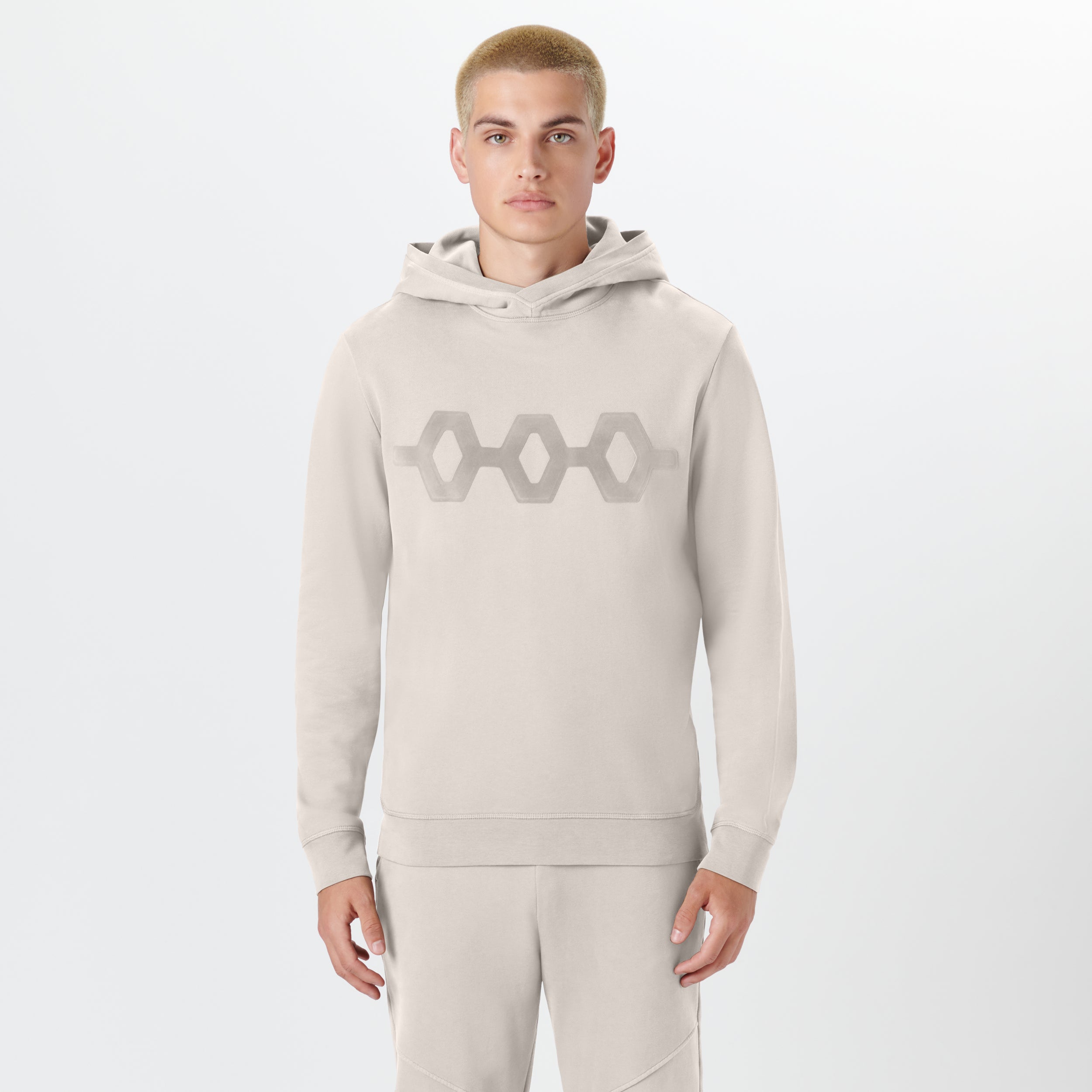 Long sleeve hoodie sweatshirt in 100% organic cotton with overlock stitch detail, and ribbed hood edge, cuffs and waistband. Made in Portugal.