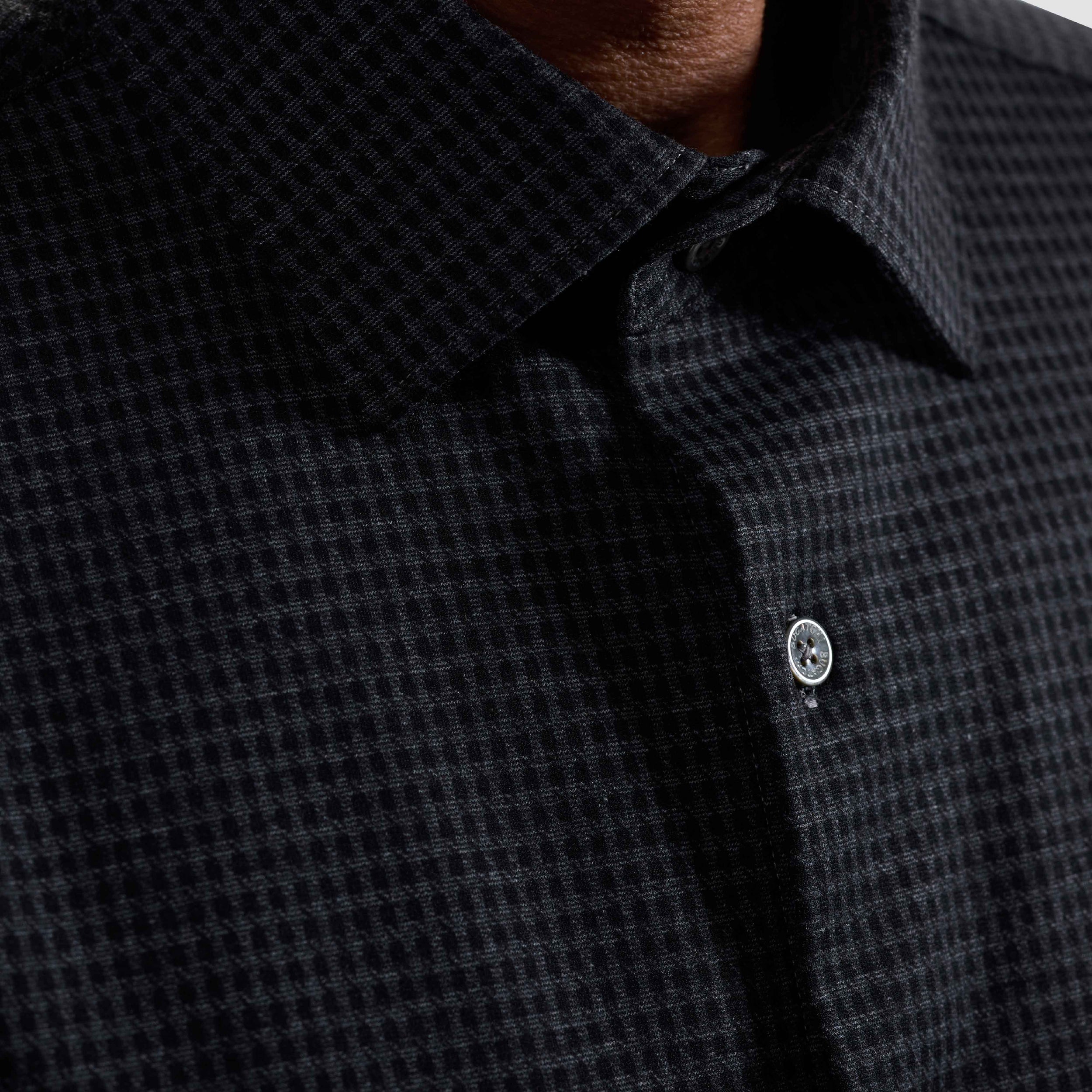Crafted from premium performance fabric, this knit shirt features a subtle houndstooth pattern for a refined, textured look. Designed with a classic point collar, full button closure, and mother-of-pearl buttons for an elevated finish, it also features two buttoned chest flap pockets and buttoned cuffs. The curved hem provides a tailored silhouette, making it perfect for casual or layered styling.