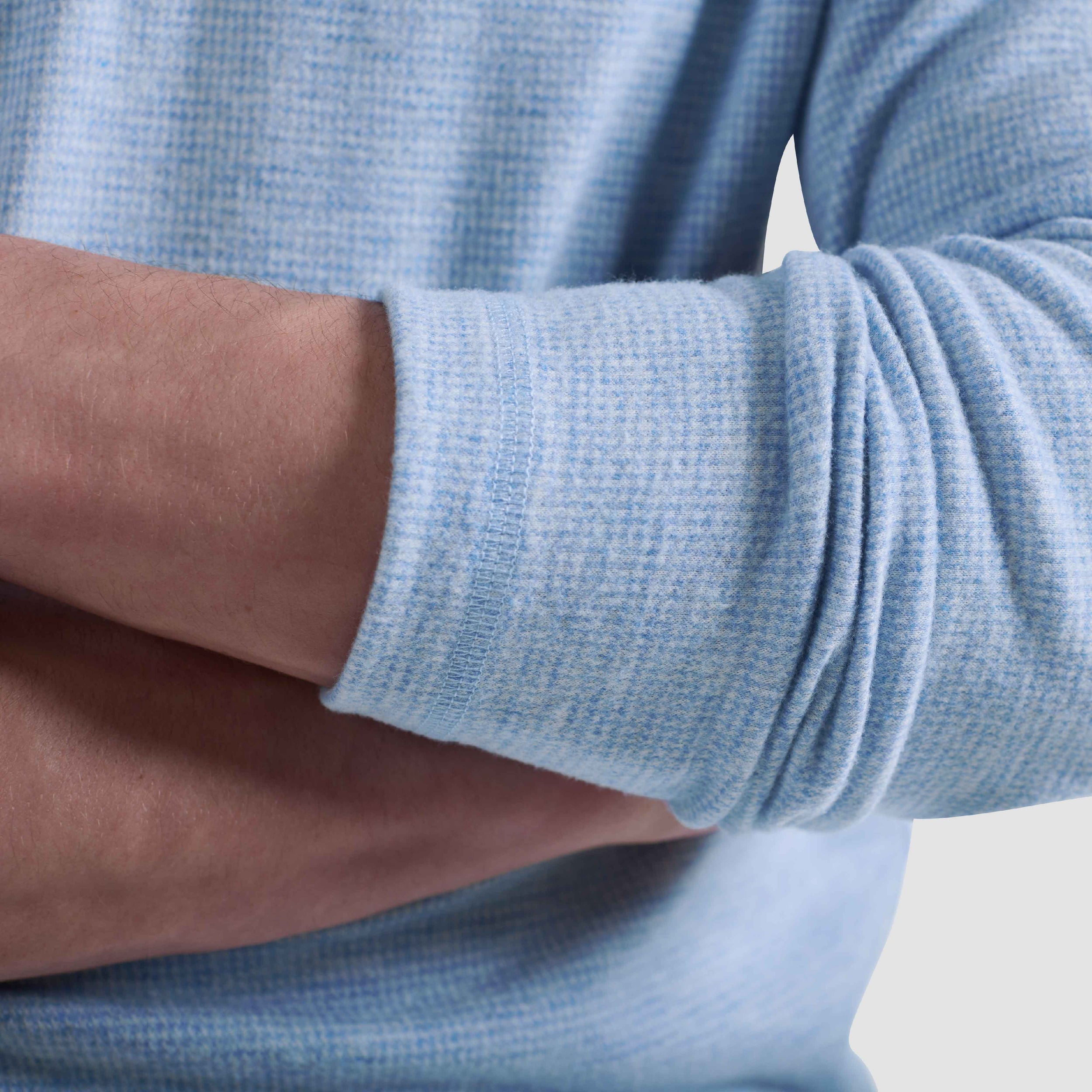 Crafted from premium performance fabric, this long sleeve quarter zip features a mock neck collar and a refined houndstooth pattern for subtle texture and visual depth. The zipper placket and back of collar are accented with solid trim for a polished finish. Designed with a straight hem and straight cuffs for a clean, streamlined silhouette.