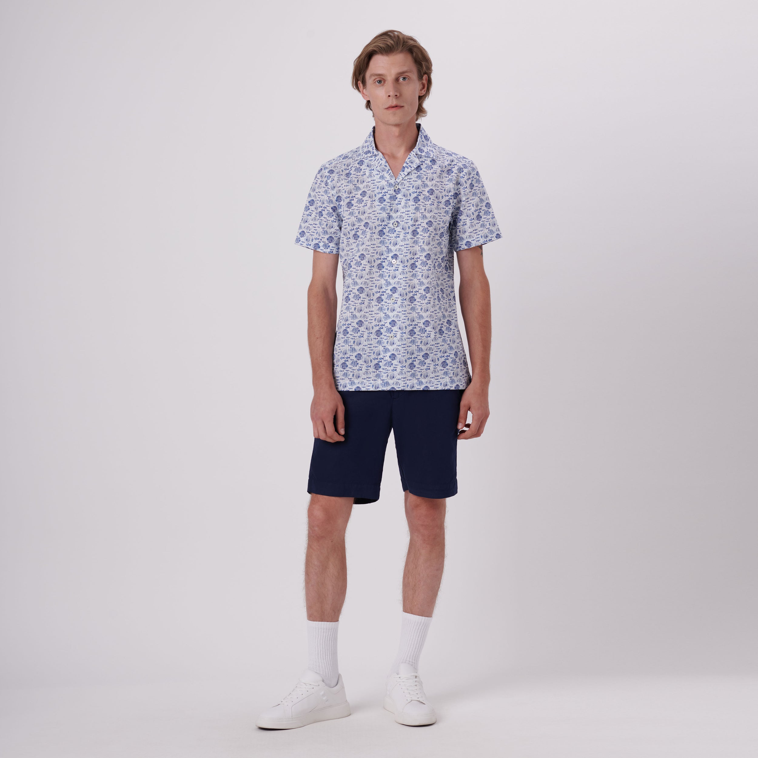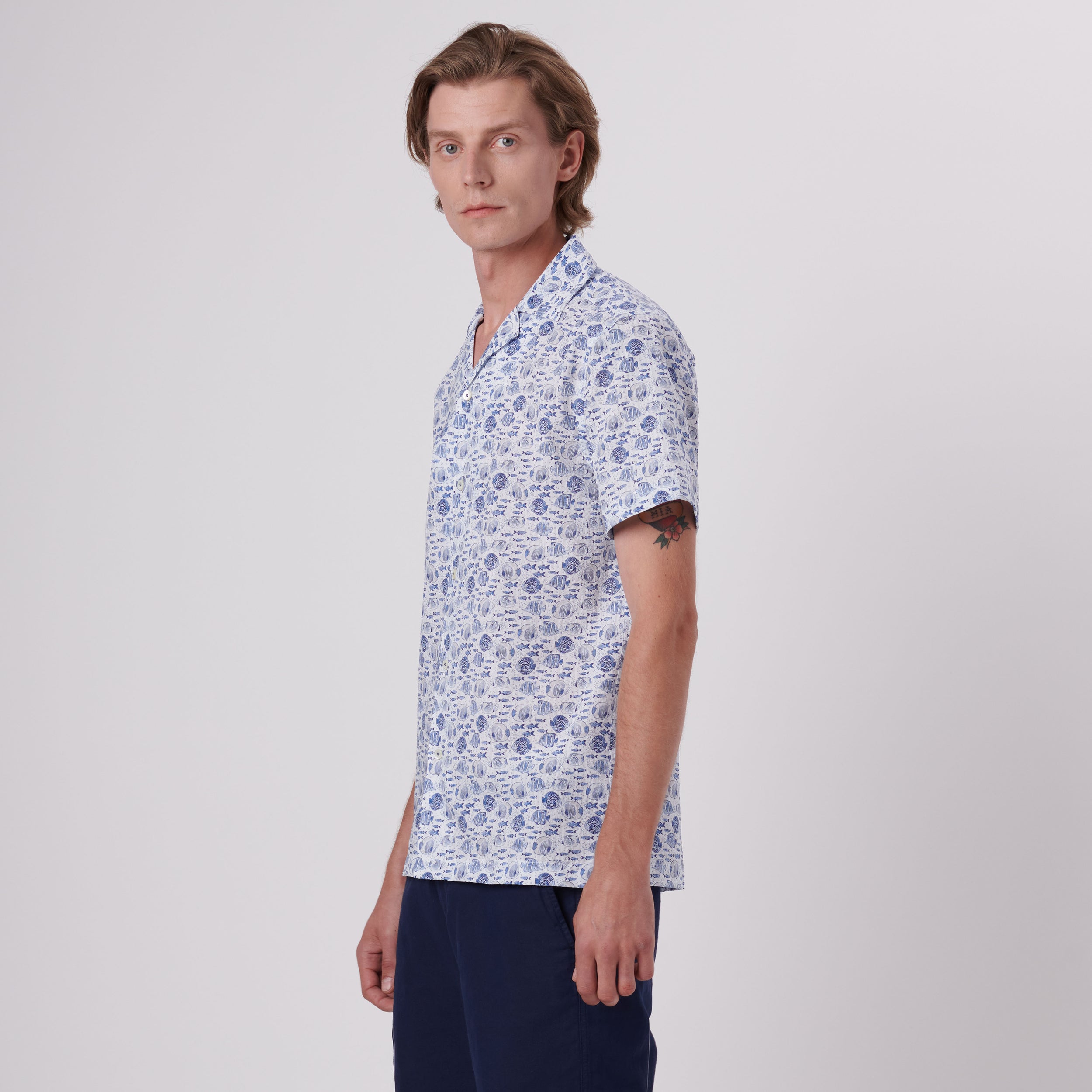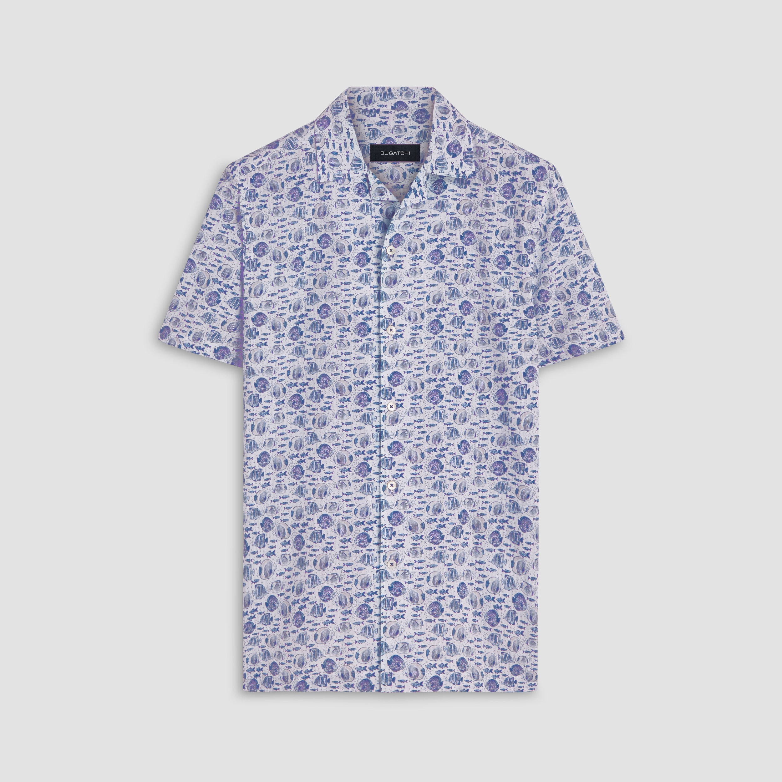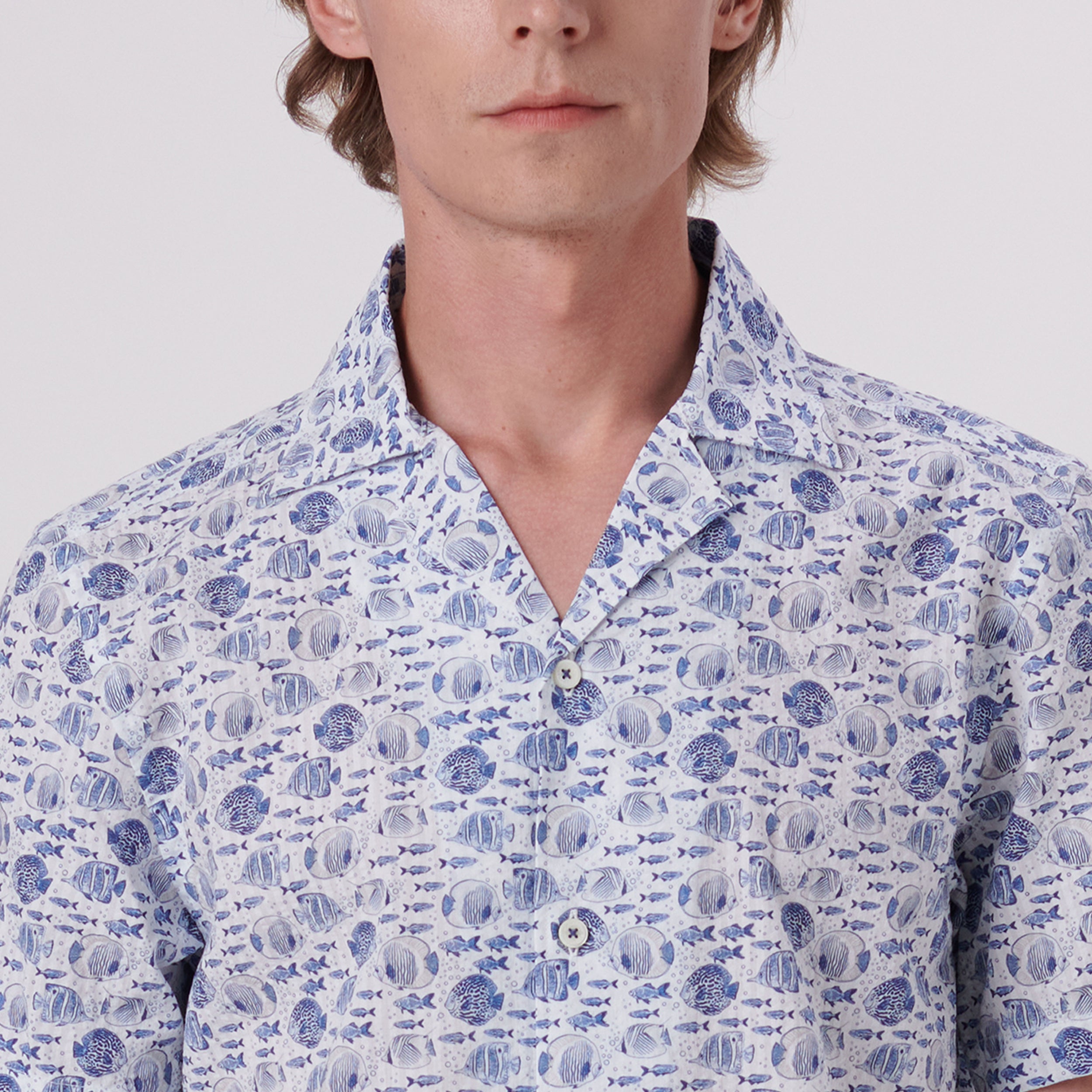 Jackson fish print short-sleeved shirt in 100% cotton seersucker with camp collar, French placket, genuine shell buttons and a straight hemline.