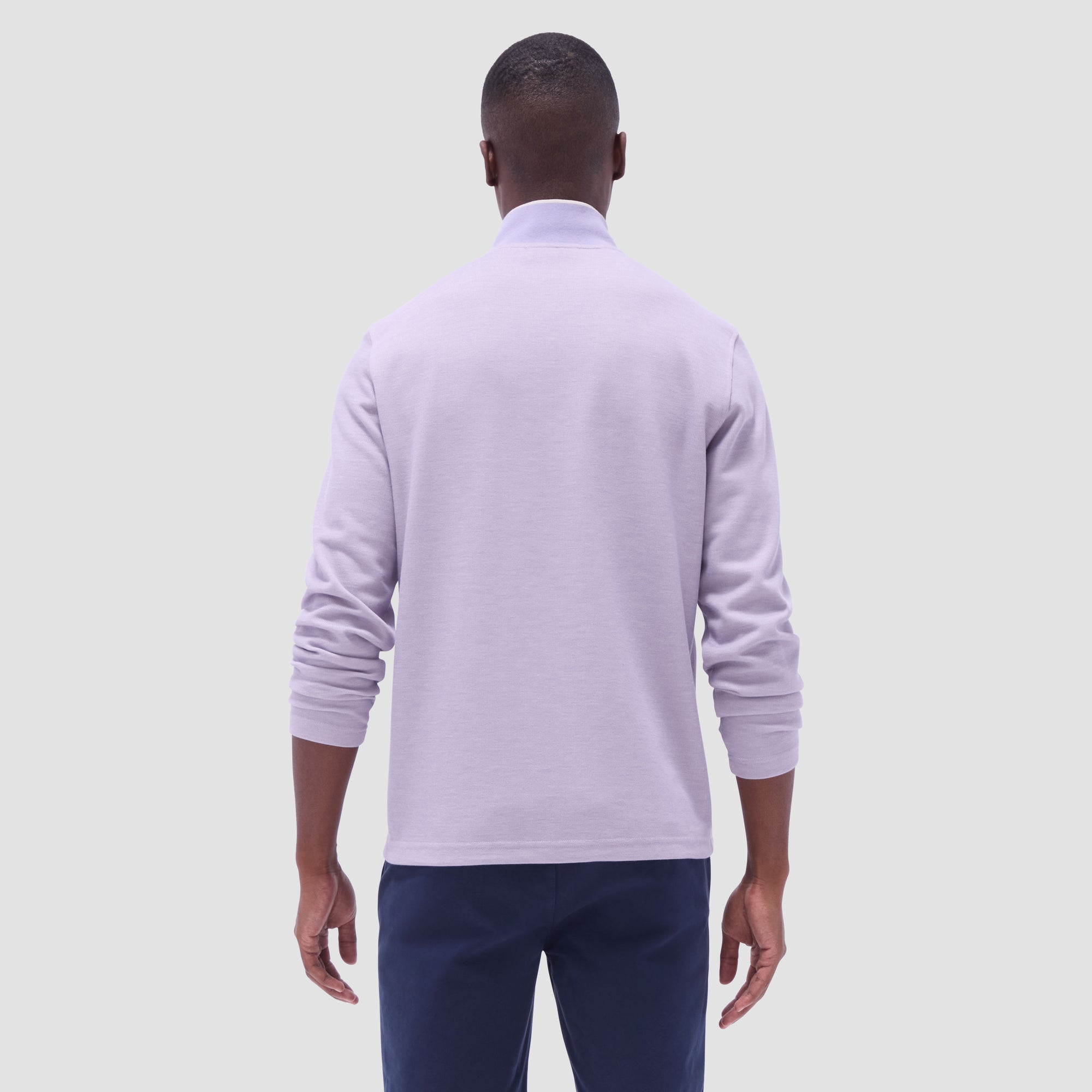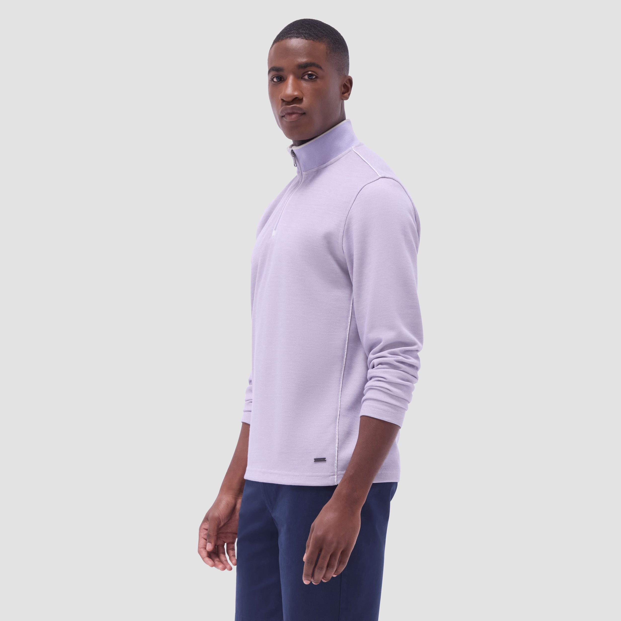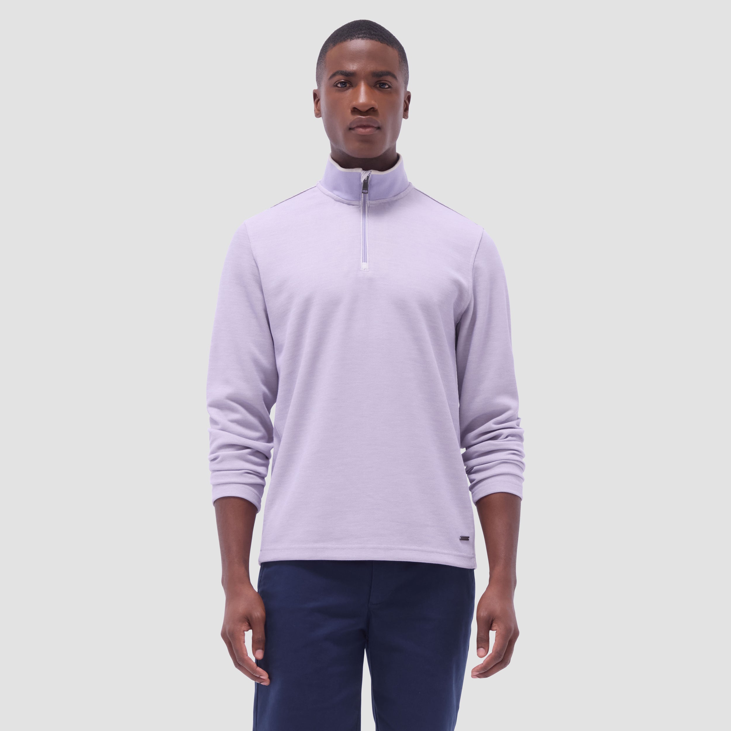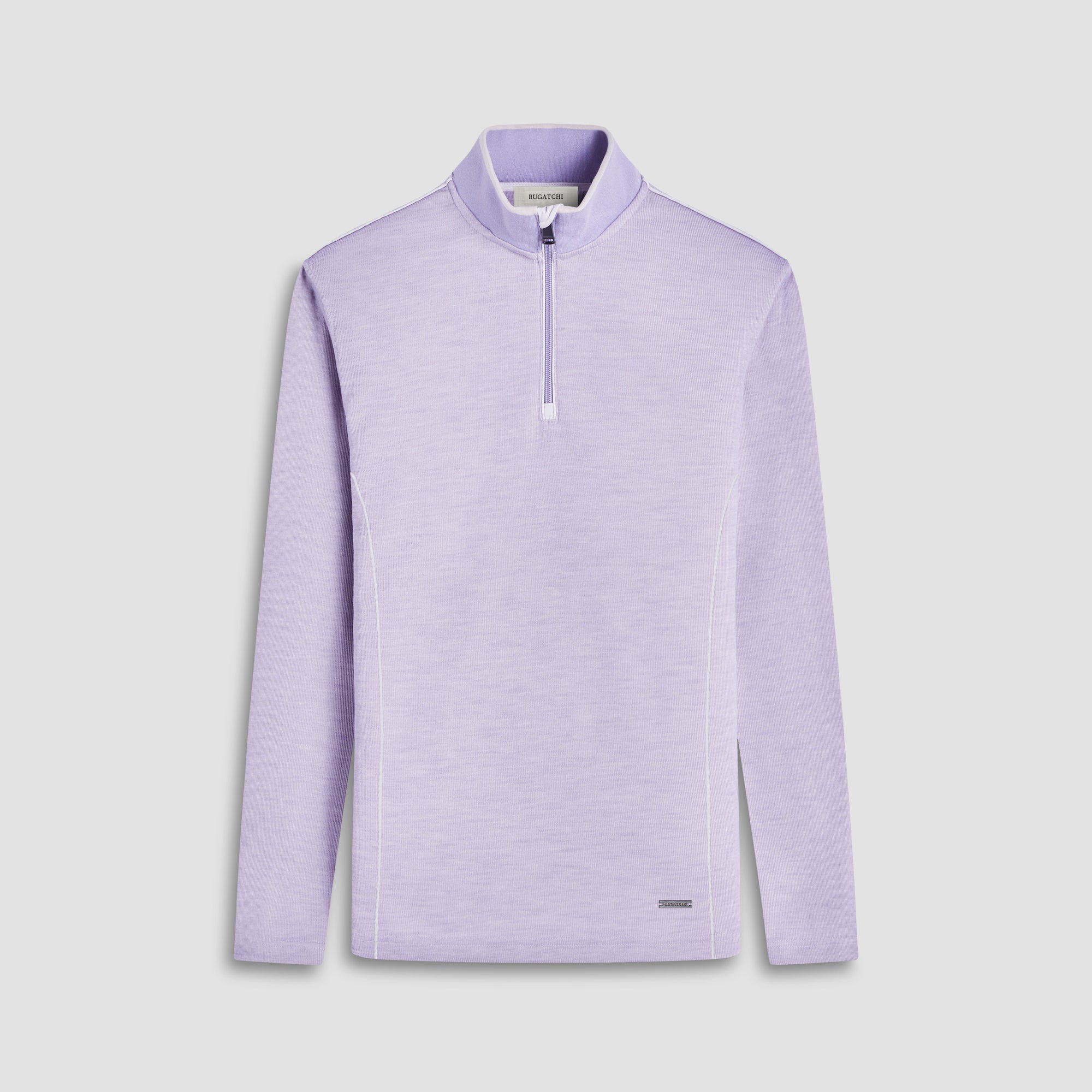 This long-sleeve quarter-zip pullover is crafted from jacquard micro-stripe performance fabric for a sleek, modern look. The solid contrast-tipped rib mock neck collar adds a refined touch, while contrast nylon piping detail elevates the style. Designed for performance and comfort, this pullover offers flexibility and breathability, making it perfect for both active days and casual wear.