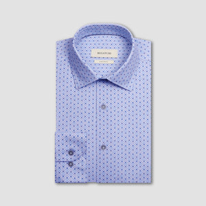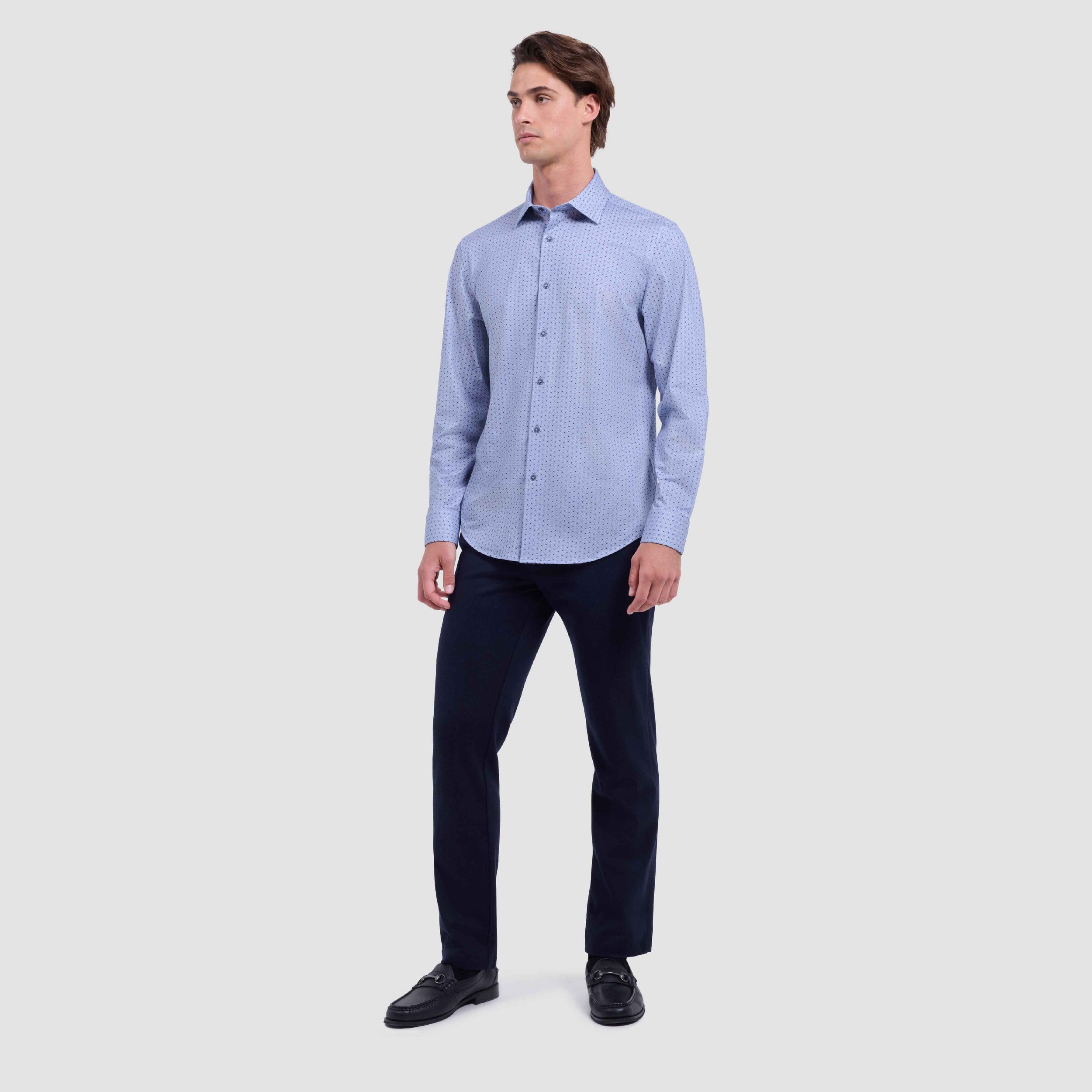 The James OoohCotton long-sleeved shirt in geometric print features a point collar and a curved hem for a sleek tucked or untucked look. The notched cuffs are adjustable to allow for customized fit and also convertible to accommodate cufflinks. OoohCotton is a performance, double-mercerized, wrinkle-resistant, breathable, and easy-care cotton blend with 8-way stretch, quick-dry, and thermal comfort properties.