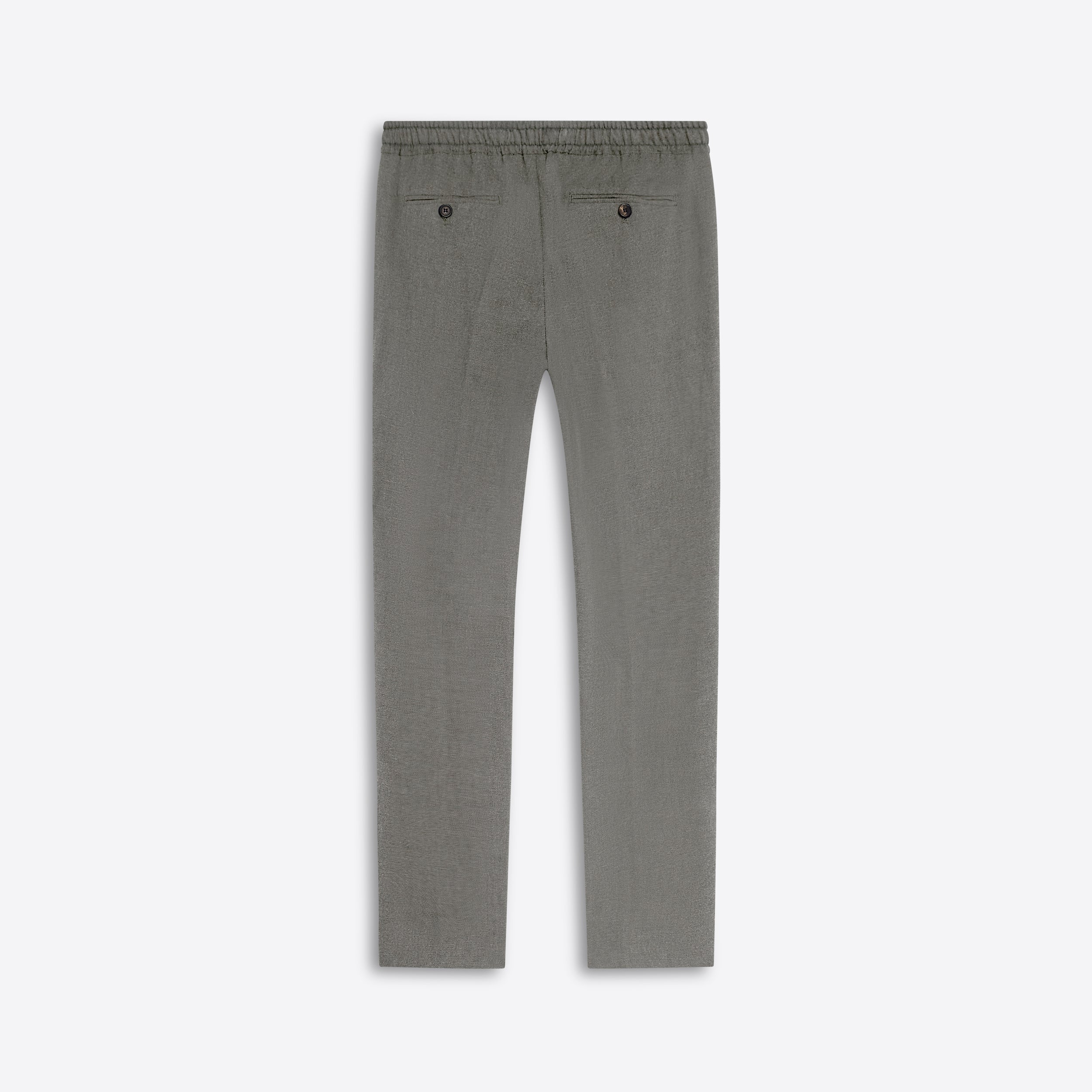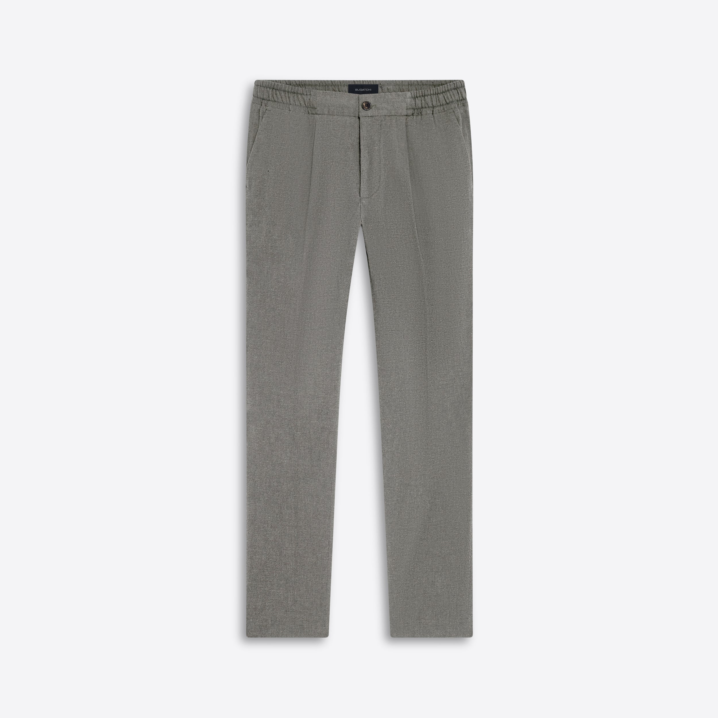 Jasper slim, straight leg, single pleat chino pant in twill with stretch, elasticized waistband, side pockets and buttoned reese back pockets. Made in Portugal.