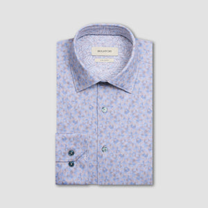 The Jimmy double-sided OoohCotton shirt with geometric and leaf prints features a point collar, mother-of-pearl buttons, and a curved hem for a sleek tucked or untucked look. The notched cuffs are adjustable to allow for customized fit and also convertible to accommodate cufflinks. OoohCotton is a performance, double-mercerized, wrinkle-resistant, breathable, and easy-care cotton blend with 8-way stretch, quick-dry, and thermal comfort properties.