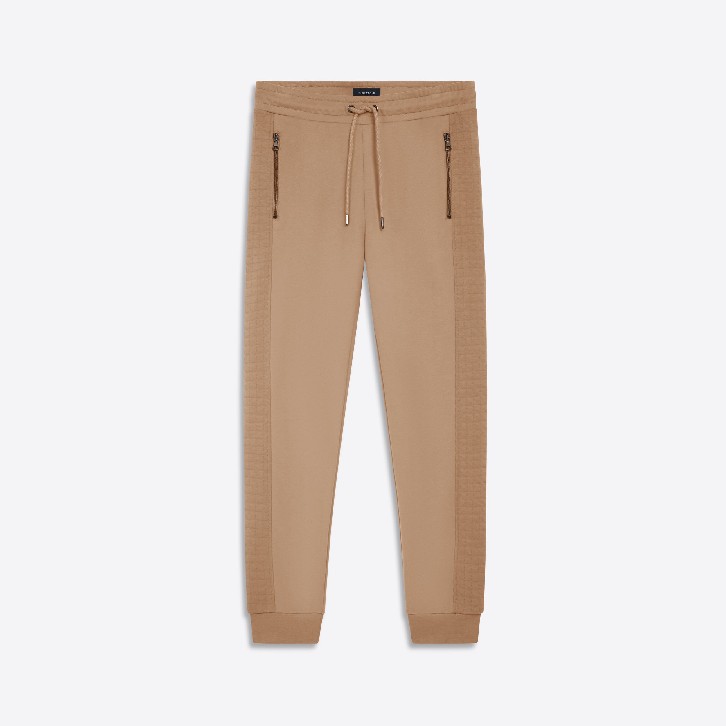 Jogging pants in 100% organic cotton with waffle knit side bands, elasticized cuffs and waistband, drawstring and pockets. Made in Portugal.