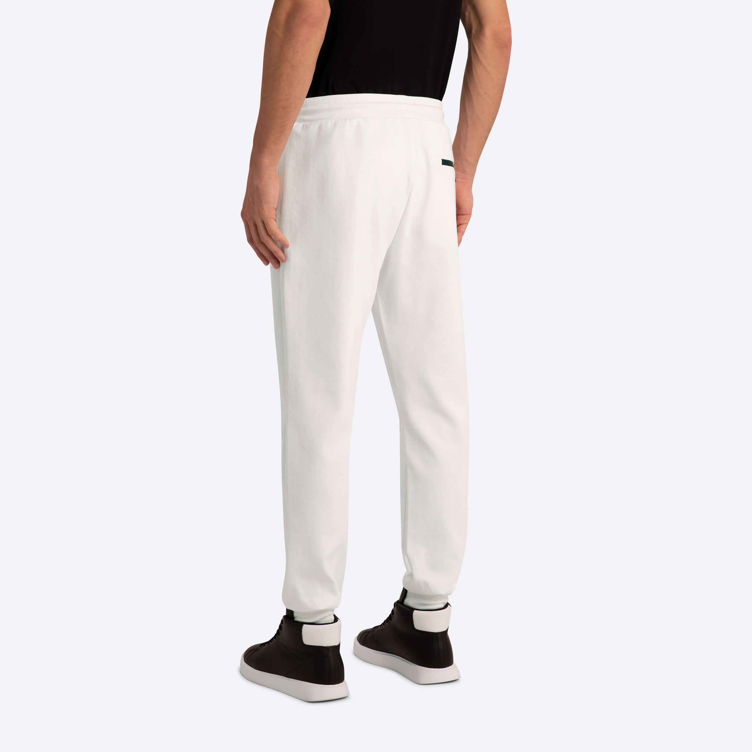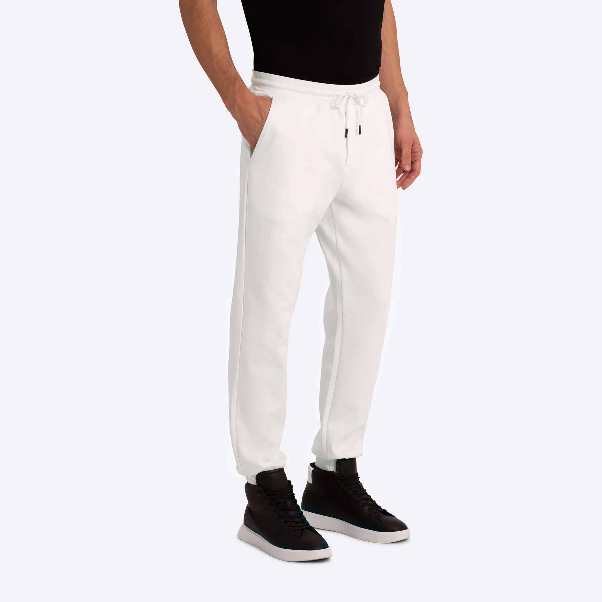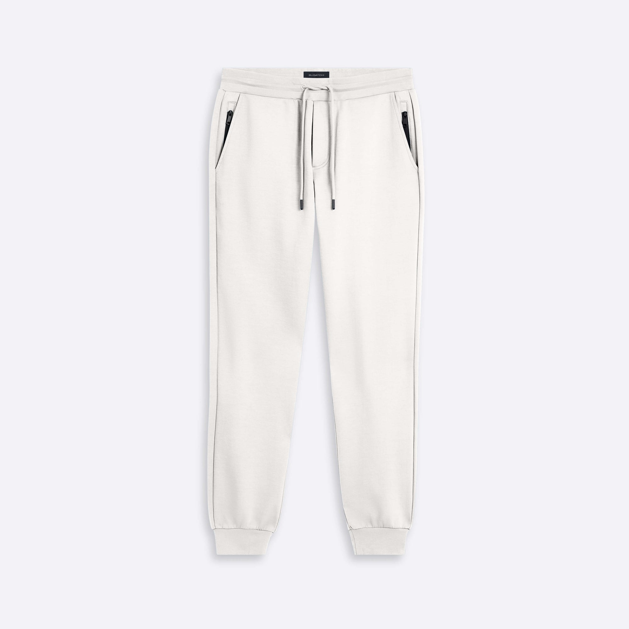 Jogging style pants in COMFORT cotton blend features elasticized cuffs and waistband with drawstring, two side and one rear zip pockets.