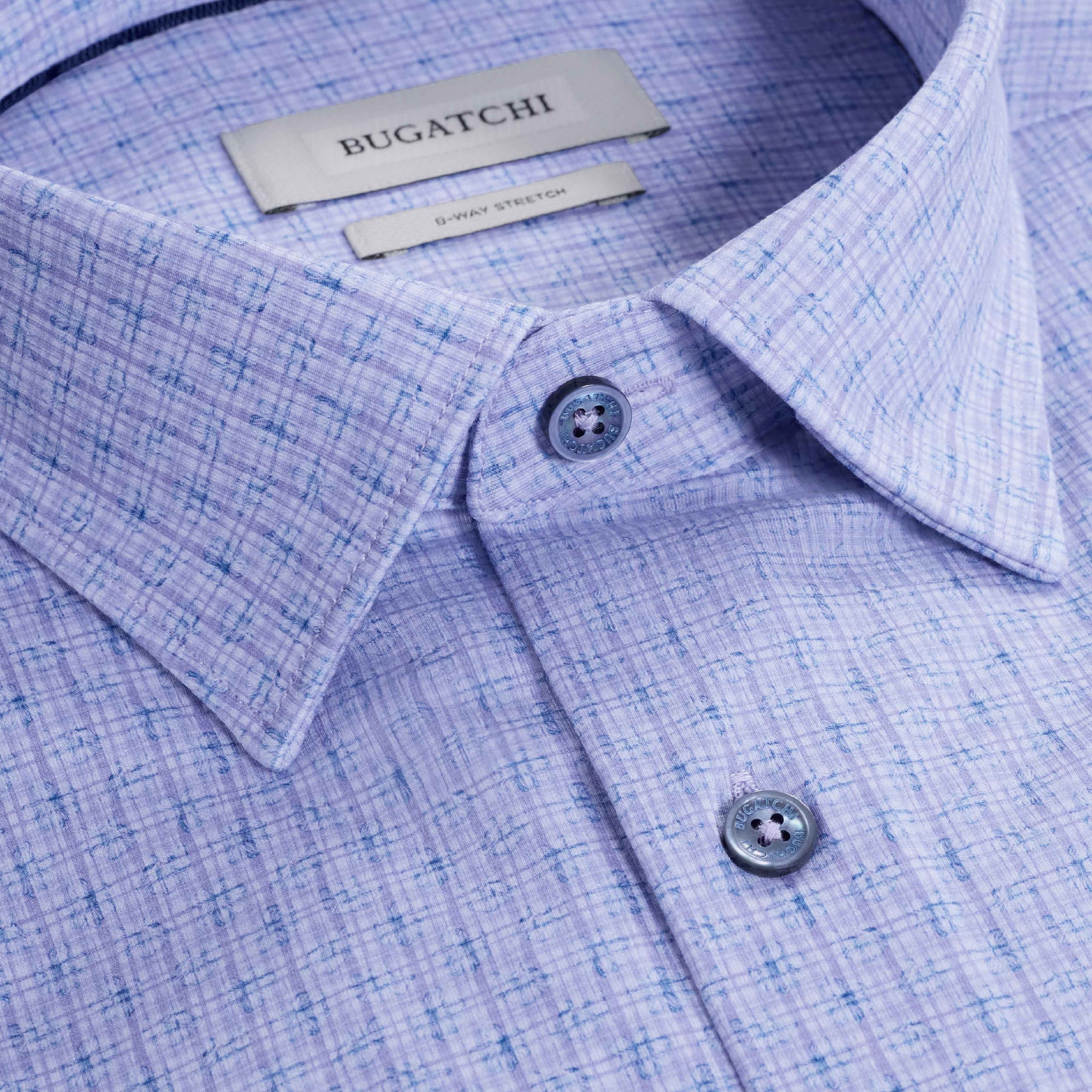 The Jules OoohCotton long-sleeved shirt in floral check print features a hidden button-down collar, mother-of-pearl buttons, and a curved hem for a sleek tucked or untucked look. The notched cuffs are adjustable to allow for customized fit and also convertible to accommodate cufflinks. OoohCotton is a performance, double-mercerized, wrinkle-resistant, breathable, and easy-care cotton blend with 8-way stretch, quick-dry, and thermal comfort properties.