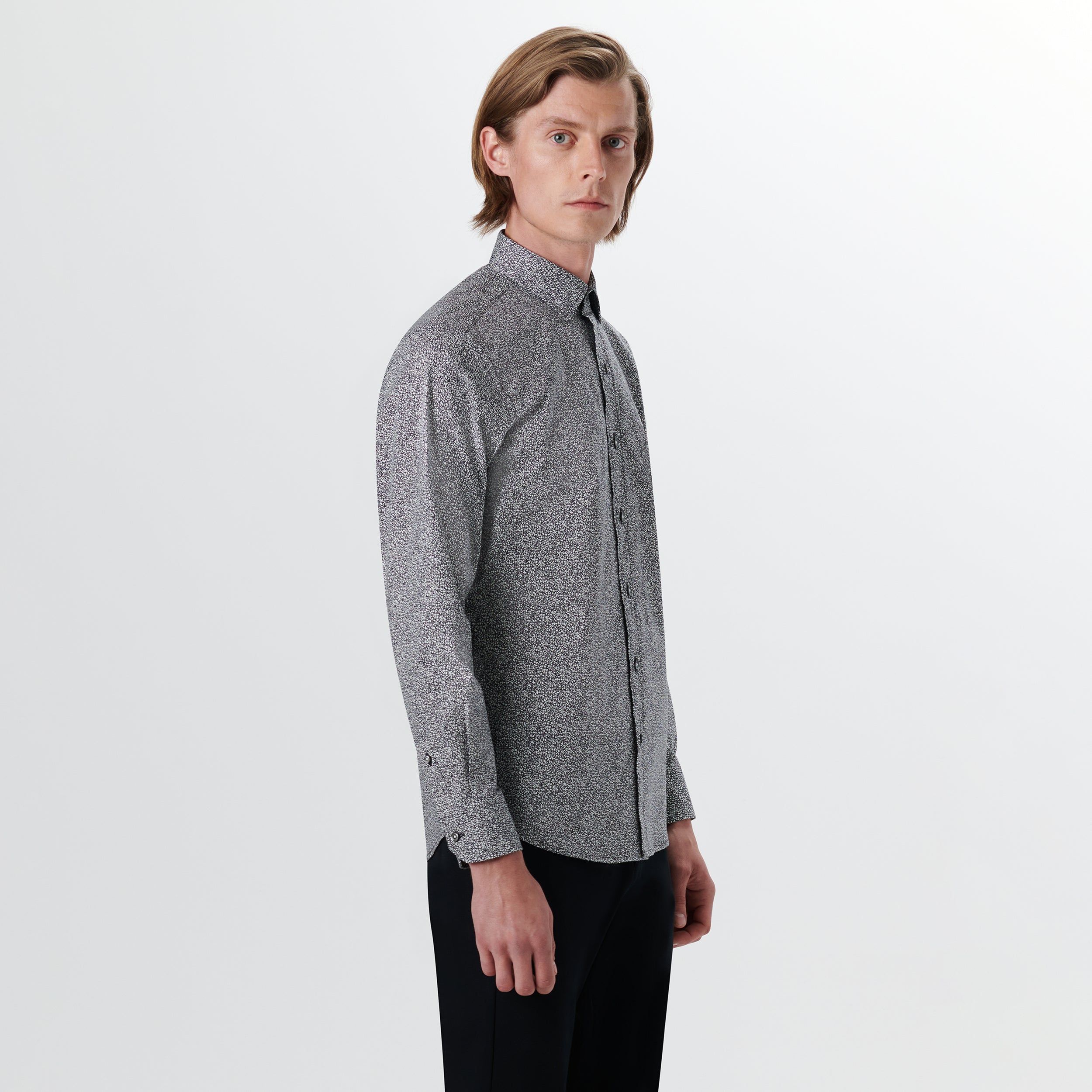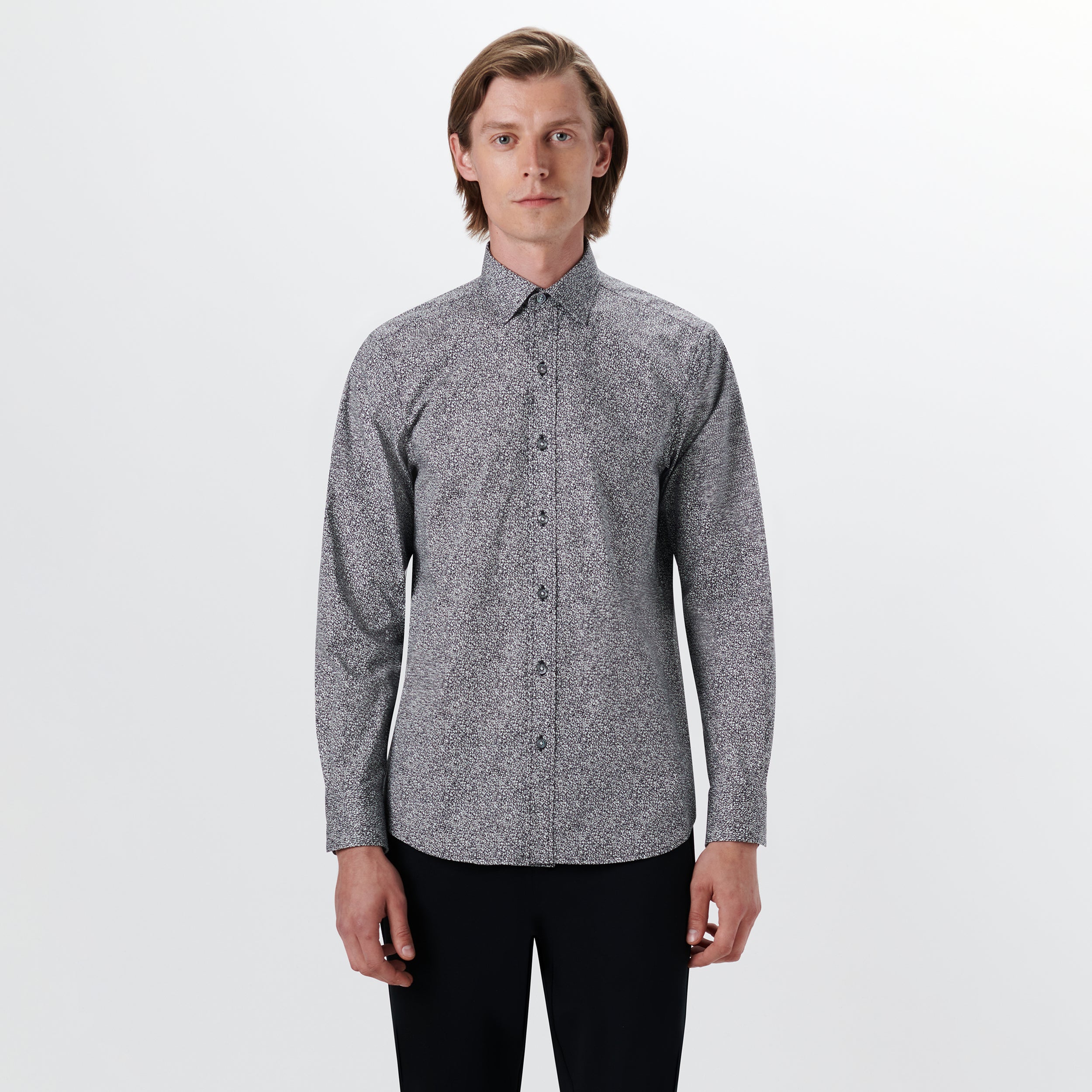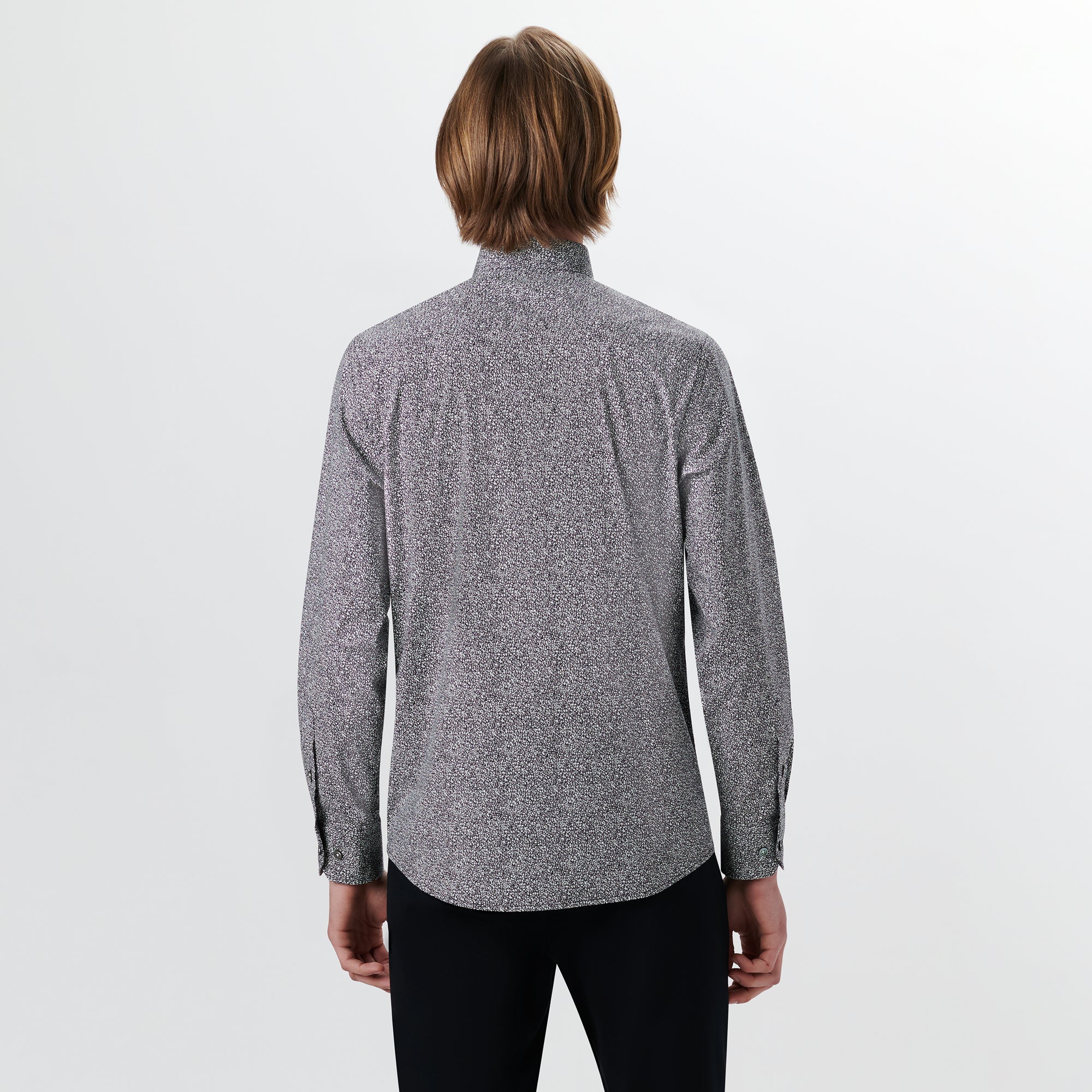 JULIAN long-sleeved shirt in abstract print COMFORT STRETCH cotton with point collar, adjustable notched cuffs and curved hem.