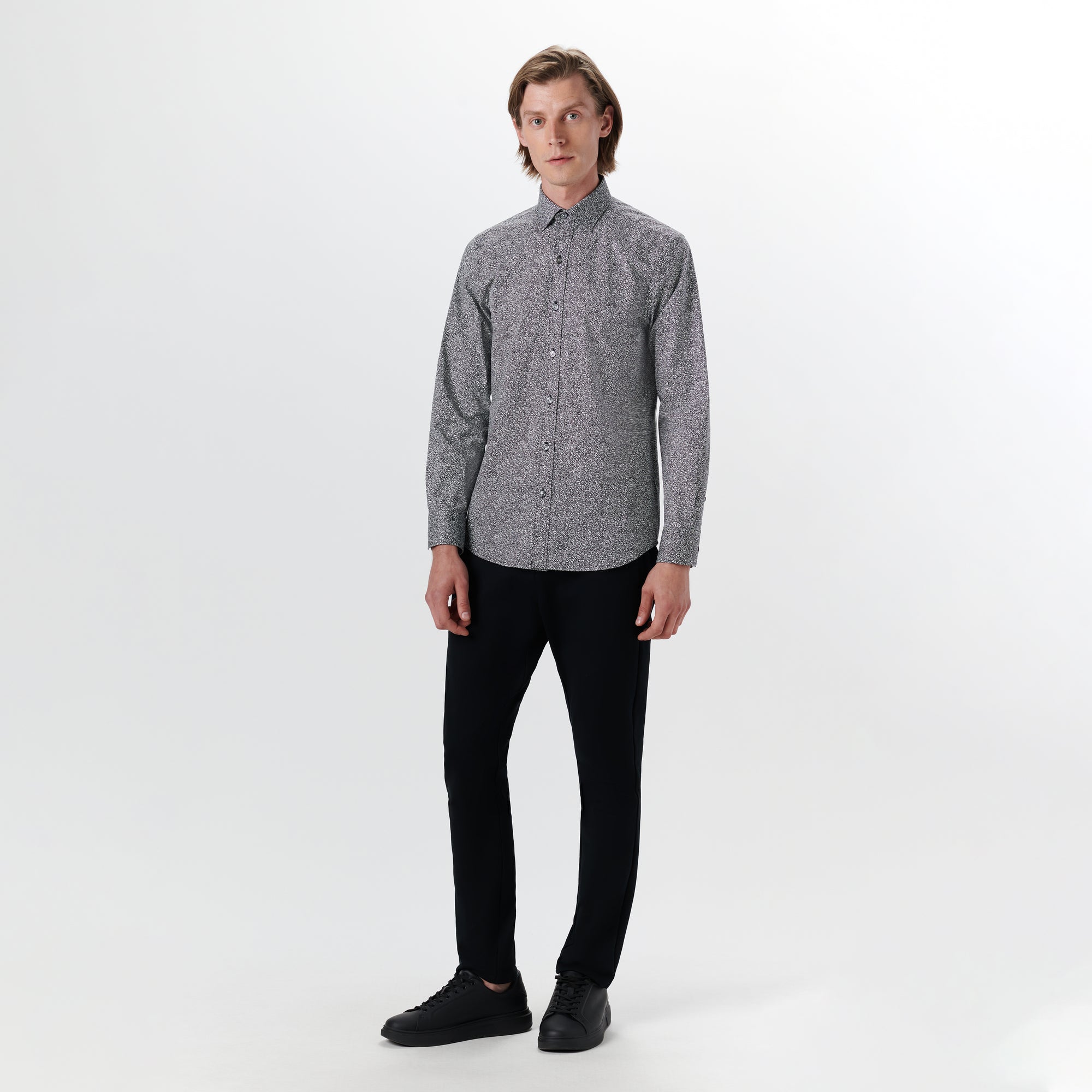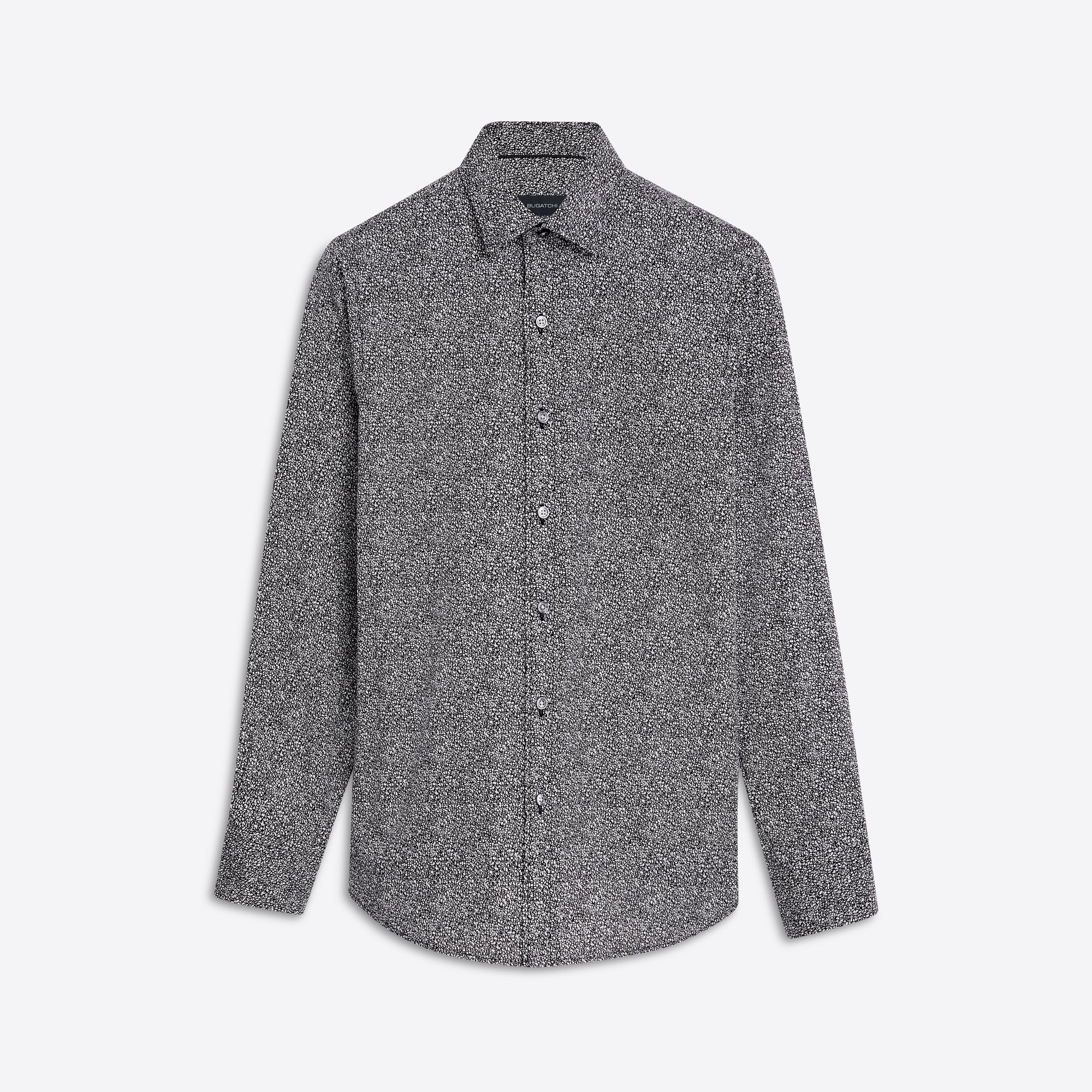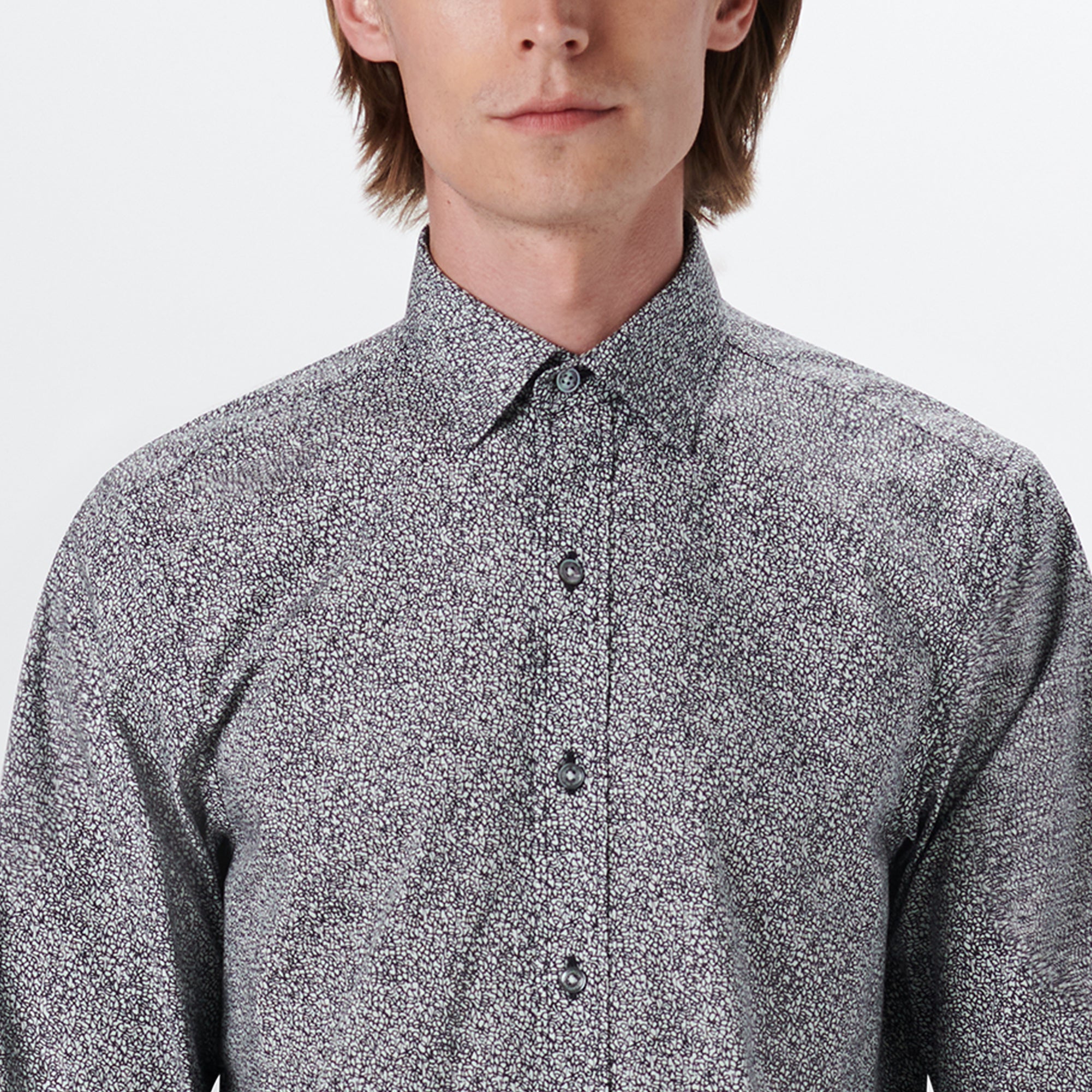 JULIAN long-sleeved shirt in abstract print COMFORT STRETCH cotton with point collar, adjustable notched cuffs and curved hem.