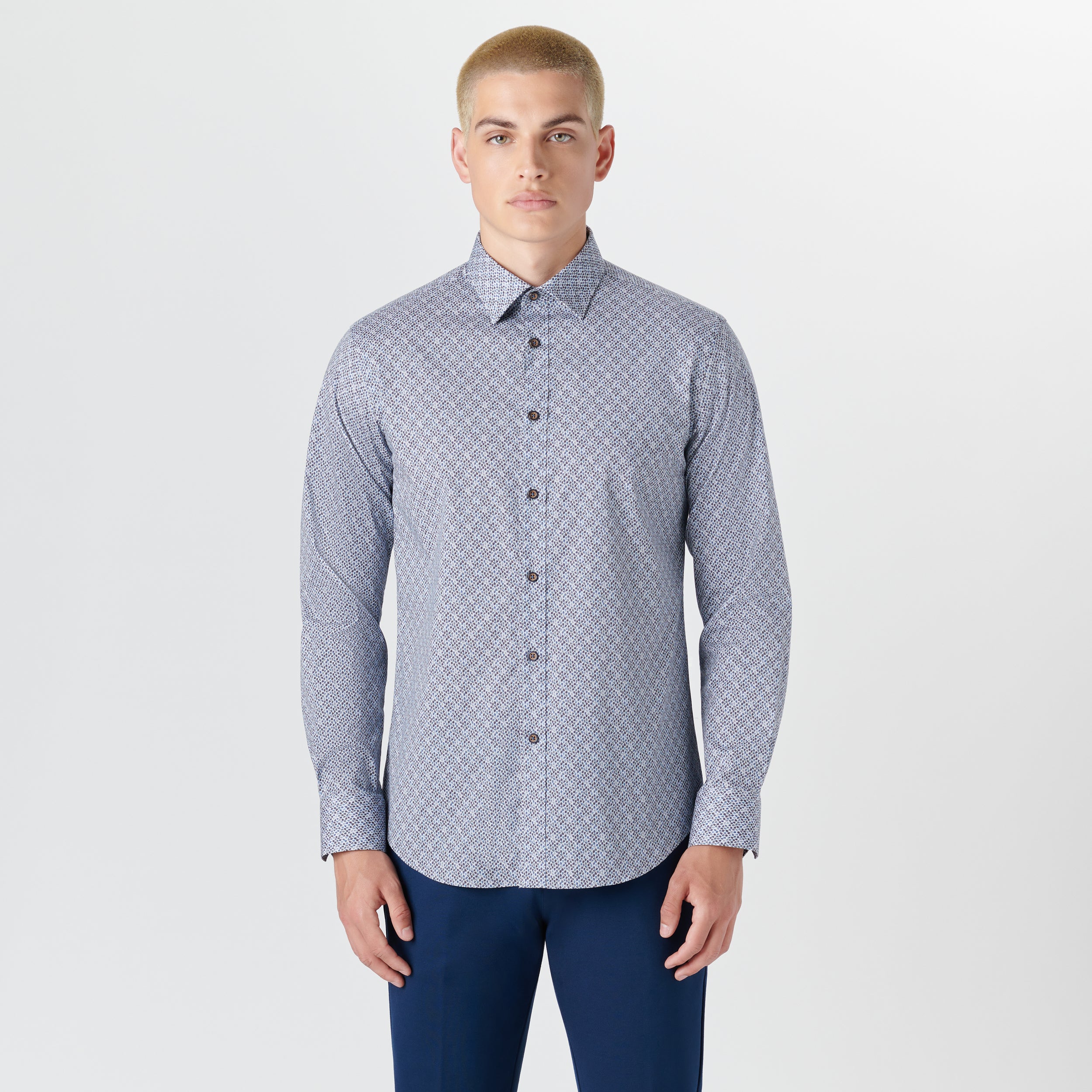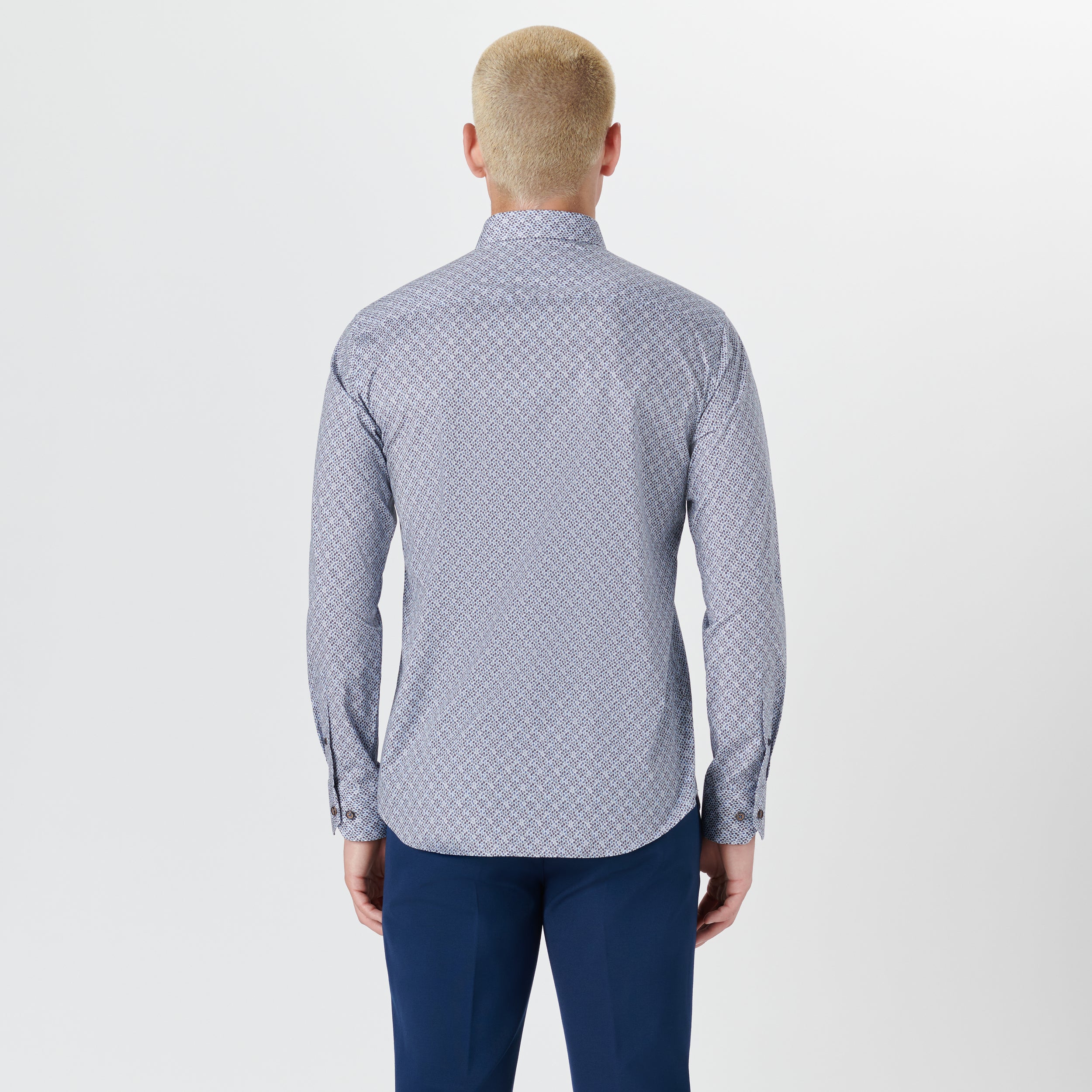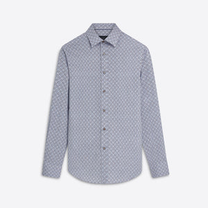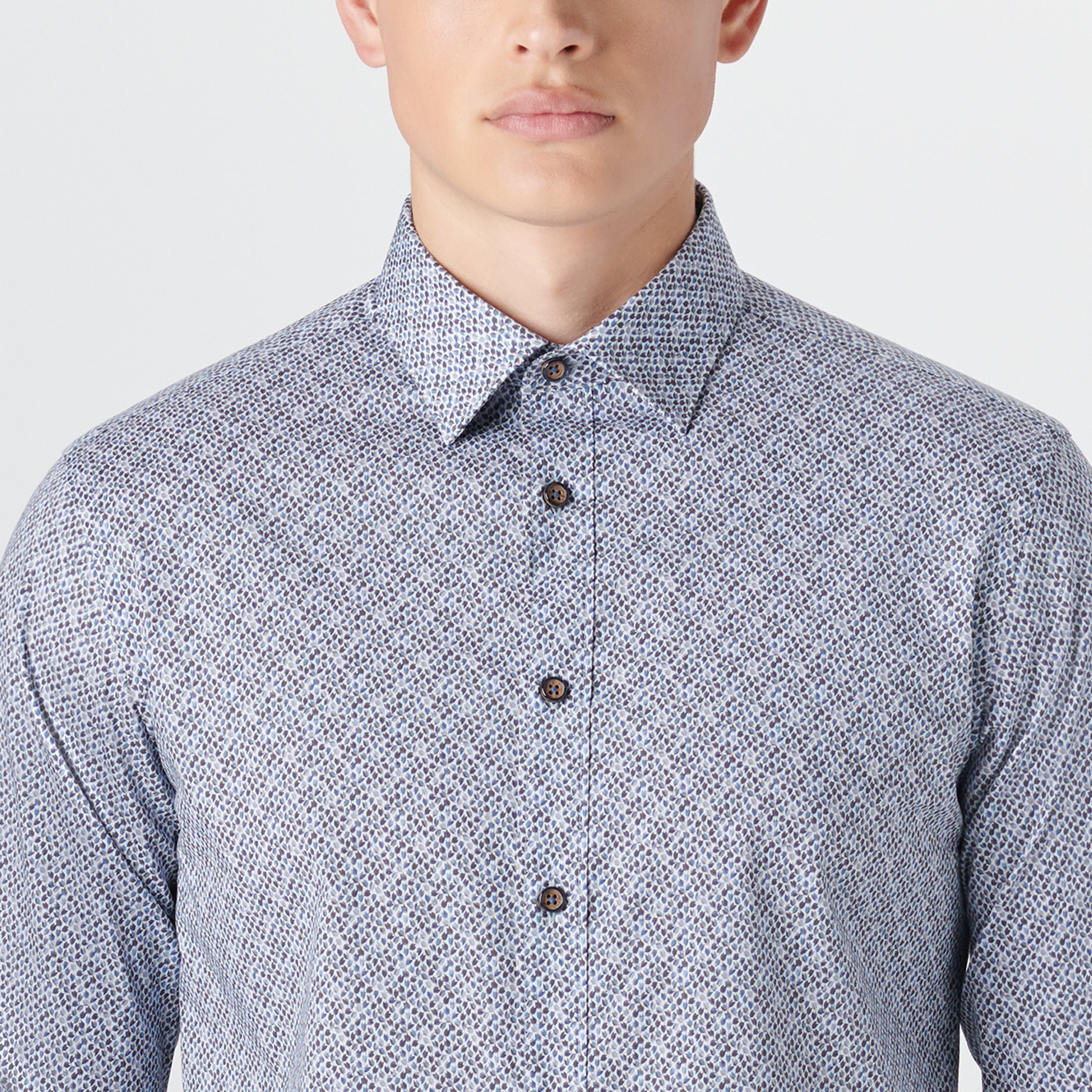 JULIAN long-sleeved shirt in abstract print COMFORT STRETCH cotton with point collar, adjustable notched cuffs and curved hem.