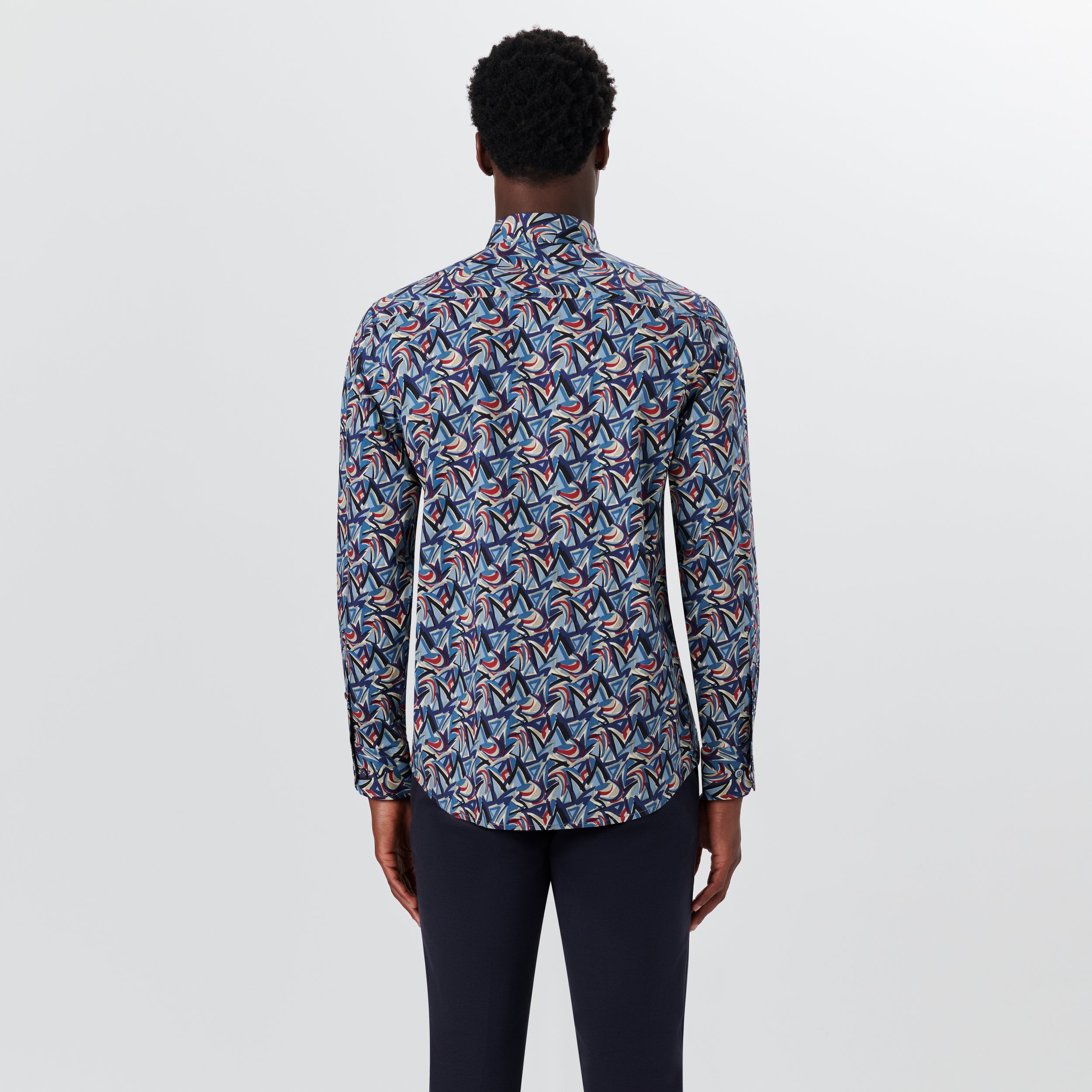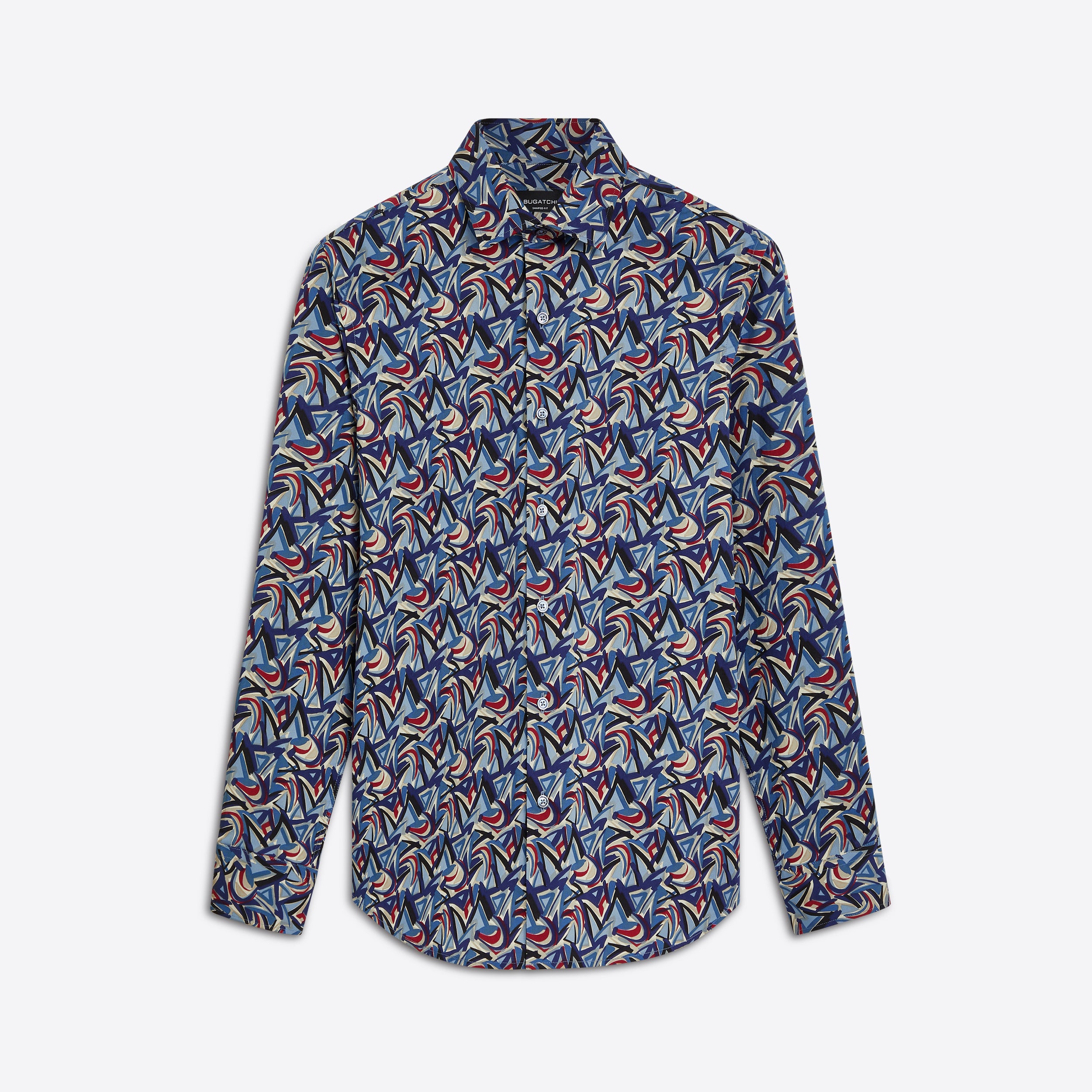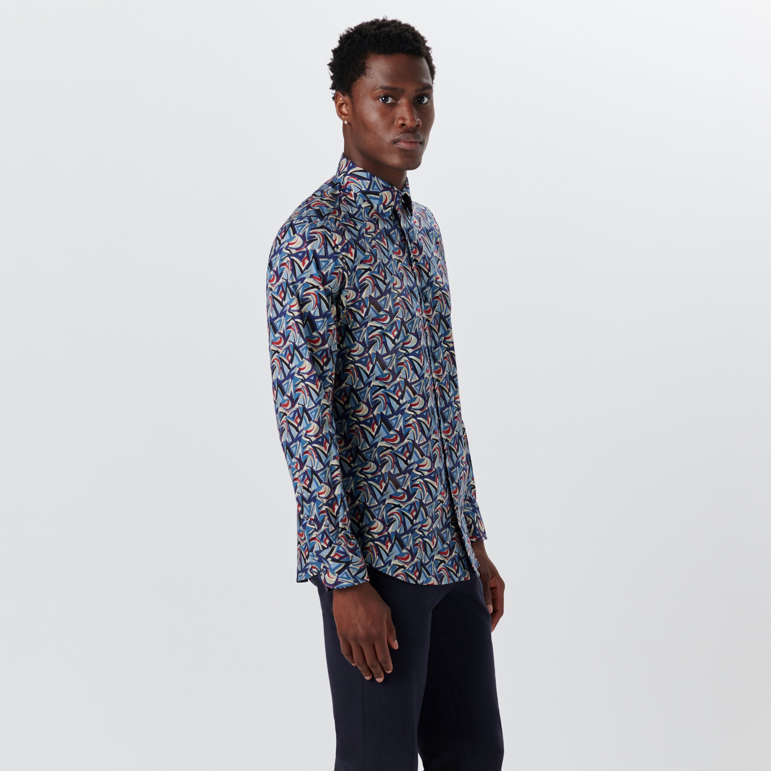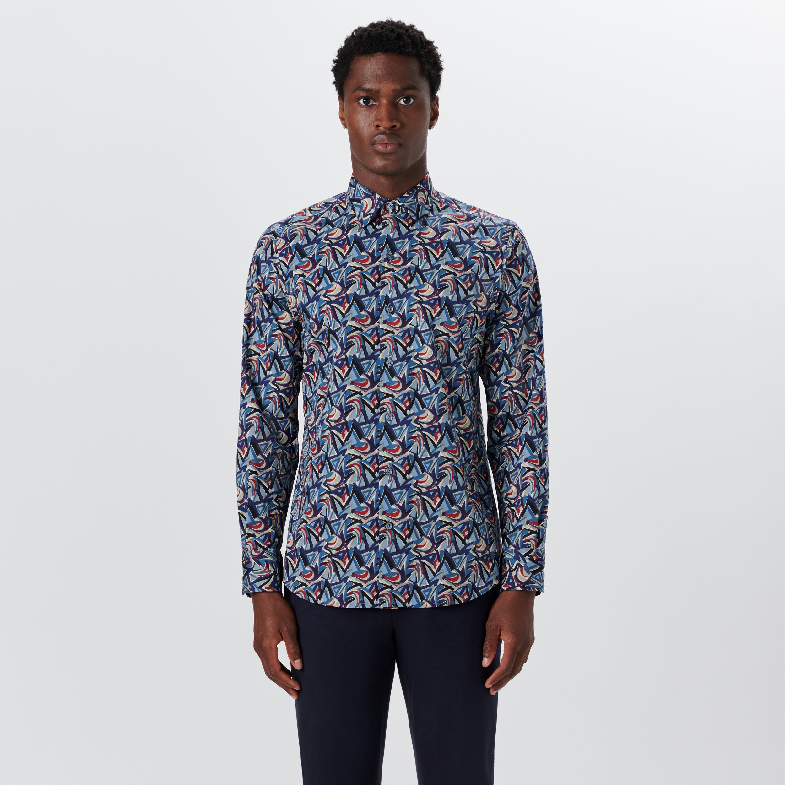 JULIAN long-sleeved shirt in abstract print COMFORT STRETCH cotton with point collar, adjustable notched cuffs and curved hem.