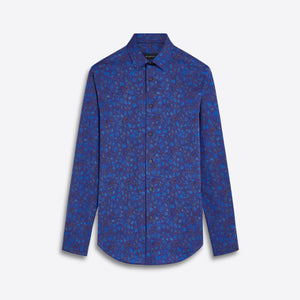 JULIAN long-sleeved shirt in abstract print COMFORT STRETCH cotton with point collar, adjustable notched cuffs and curved hem.
