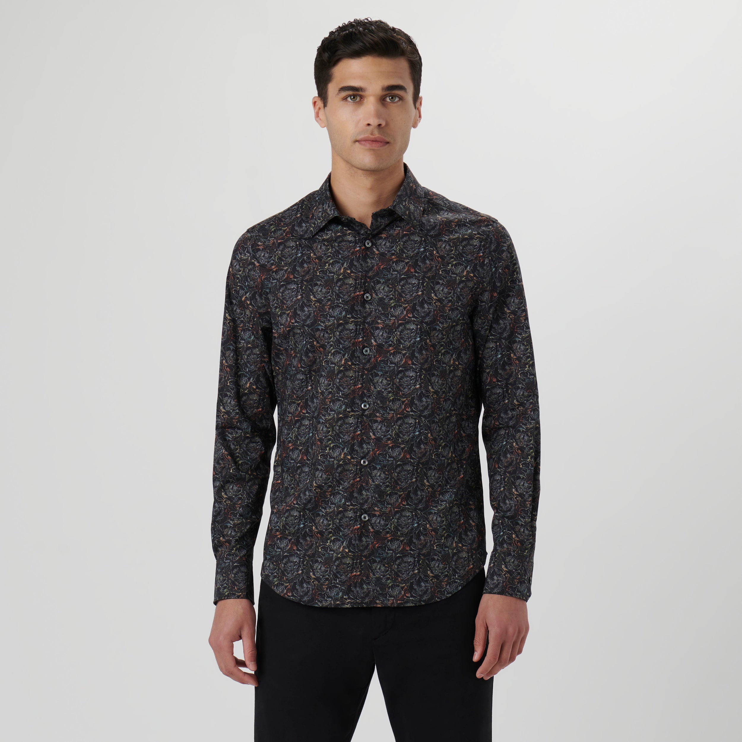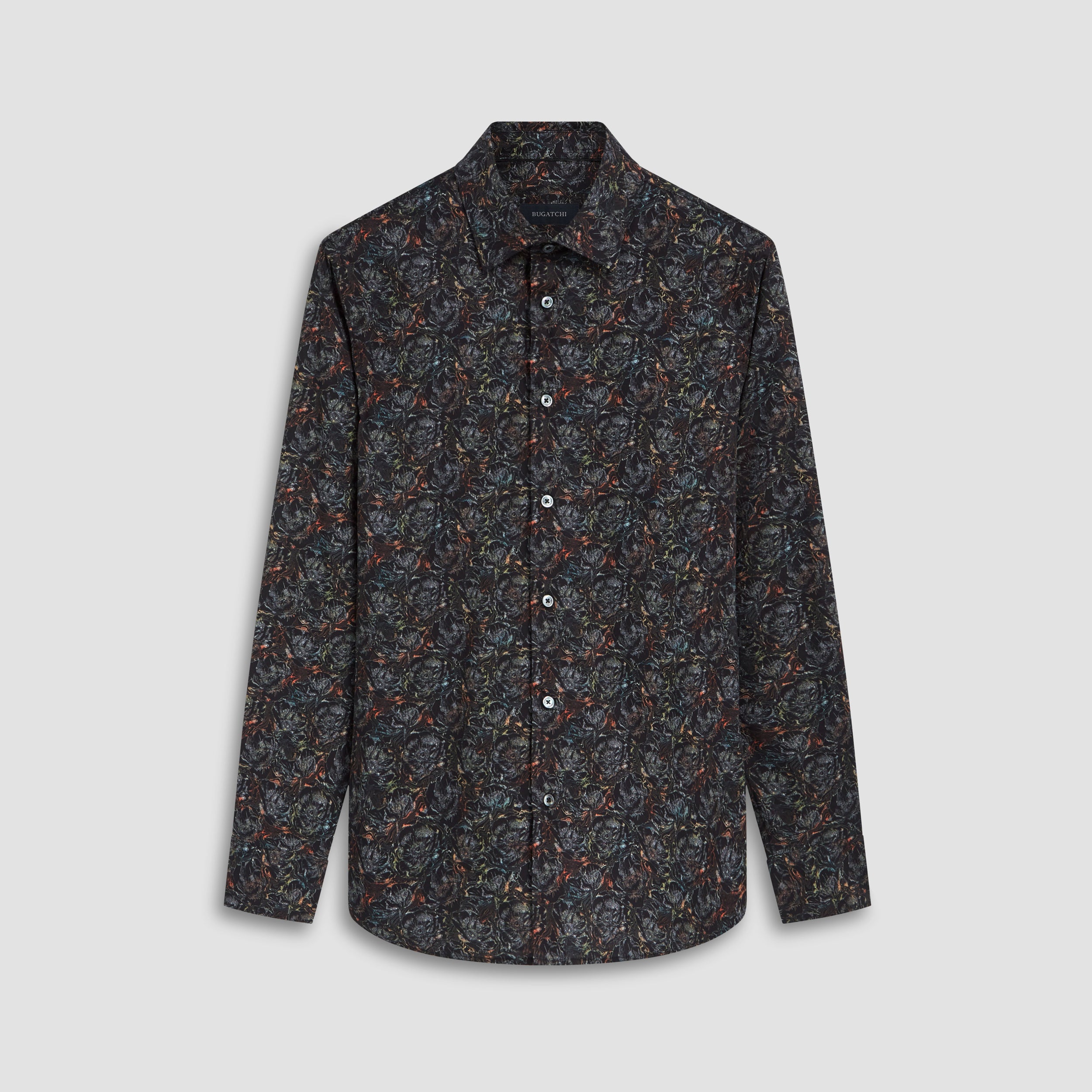 Julian long-sleeved shirt in abstract print COMFORT STRETCH cotton with point collar, adjustable notched cuffs and curved hem.