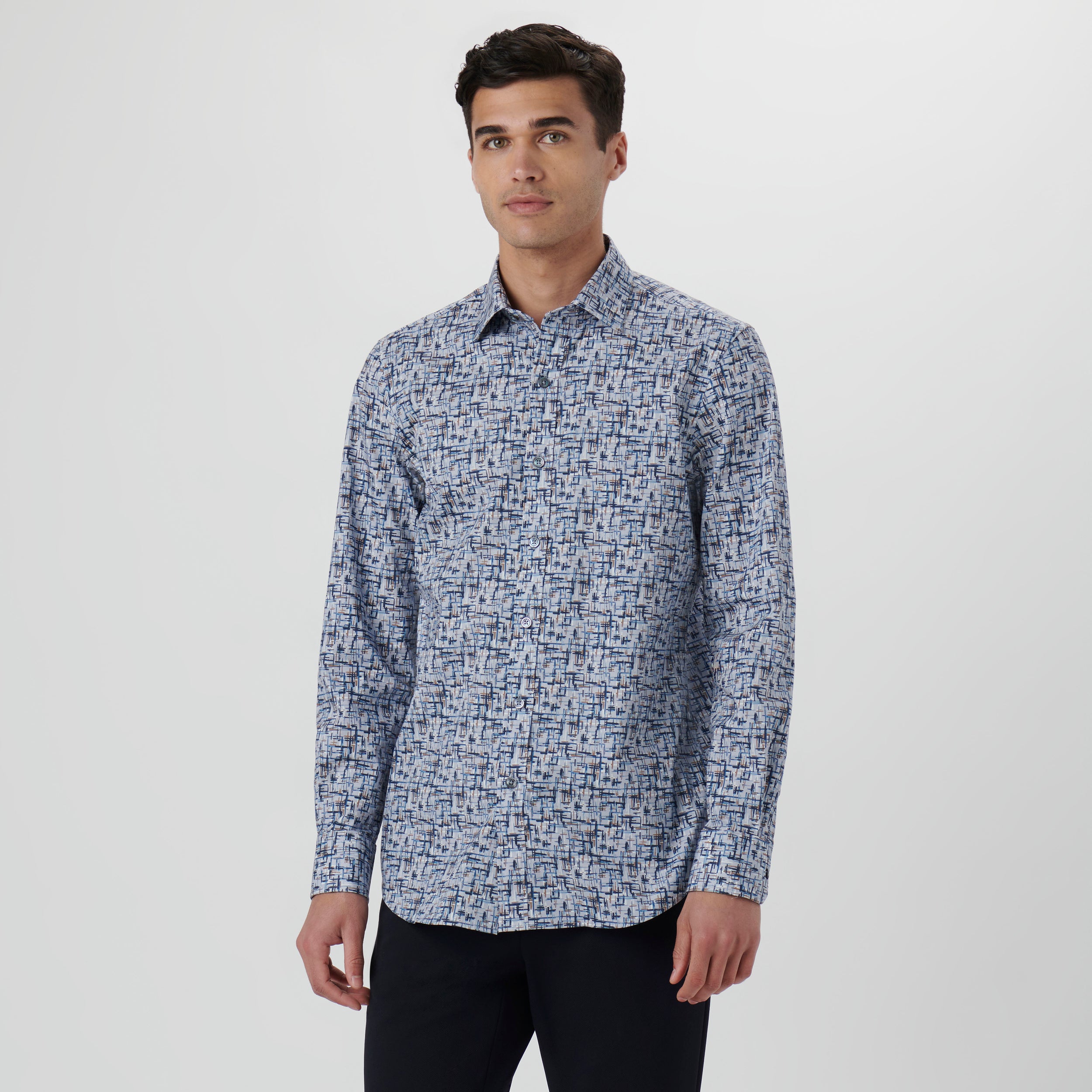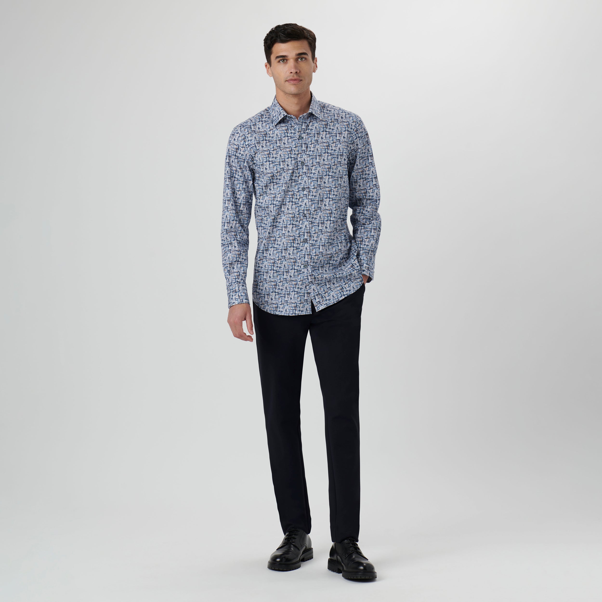 Julian long-sleeved shirt in abstract print COMFORT STRETCH cotton with point collar, adjustable notched cuffs and curved hem.