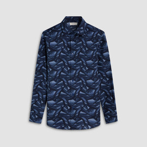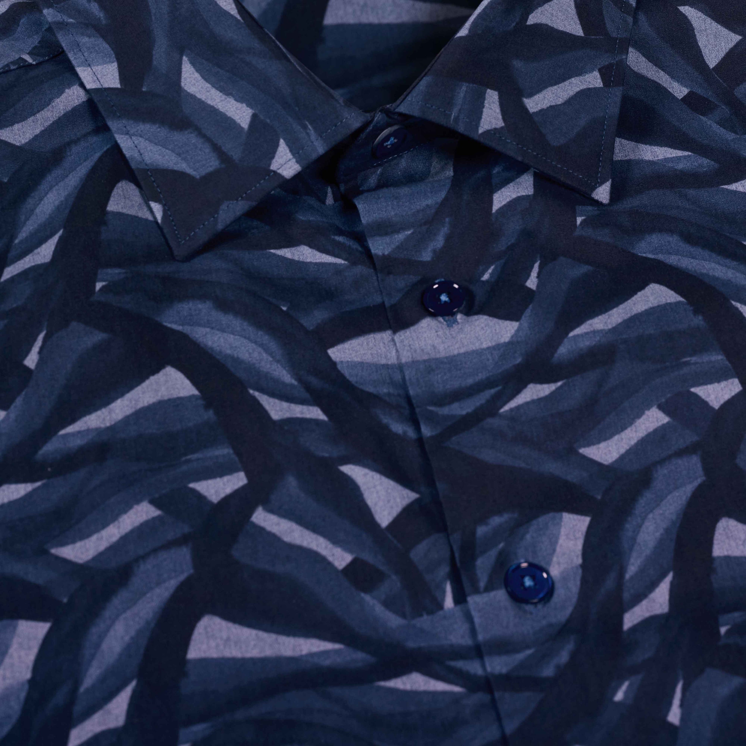 The Julian long-sleeve Comfort Stretch shirt in abstract wave print is crafted from premium Italian cotton with a hint of stretch for all-day comfort. It features a point collar, mother-of-pearl buttons, a curved hem that looks great tucked or untucked, and adjustable notched cuffs that also convert for cufflinks. A refined, all-occasion shirt.