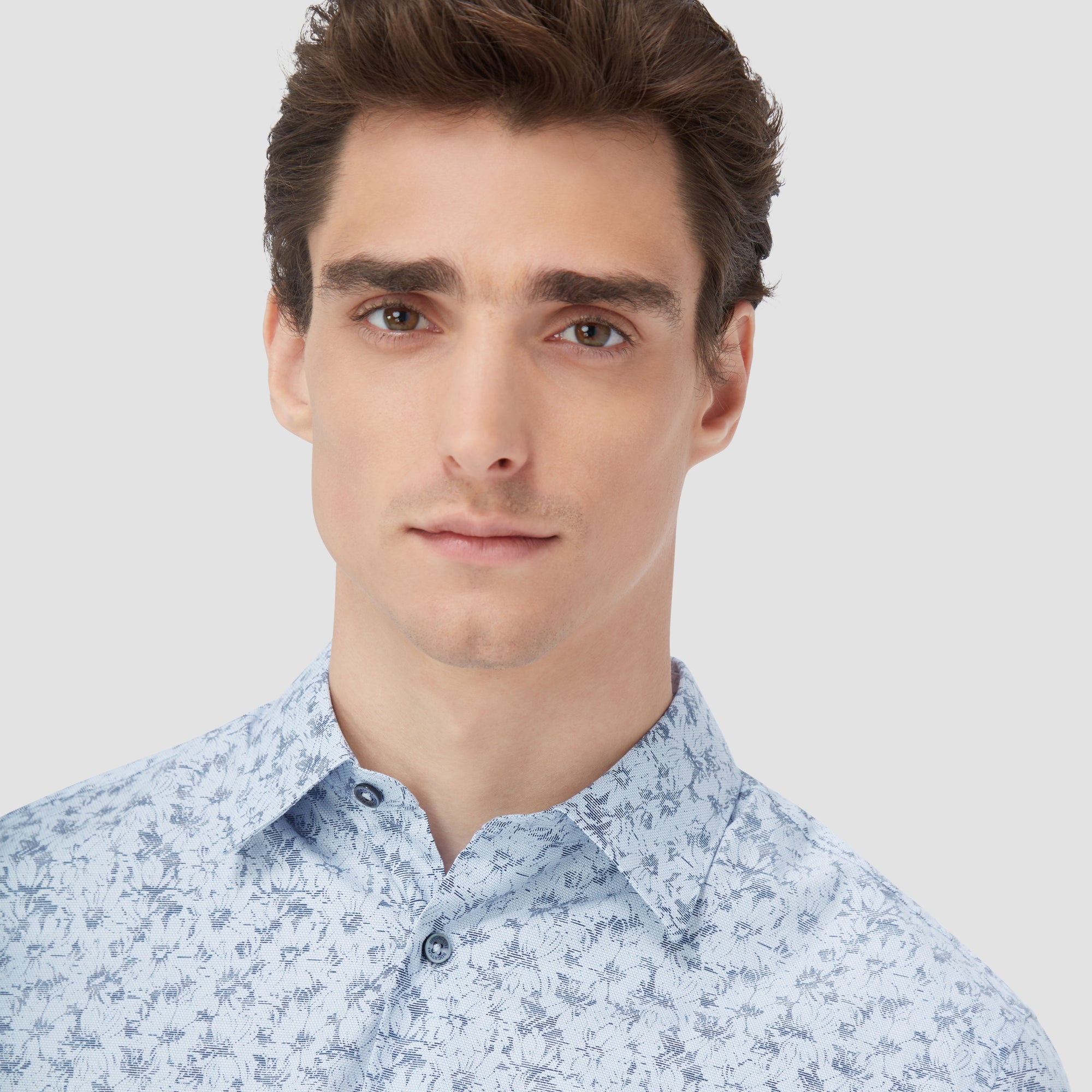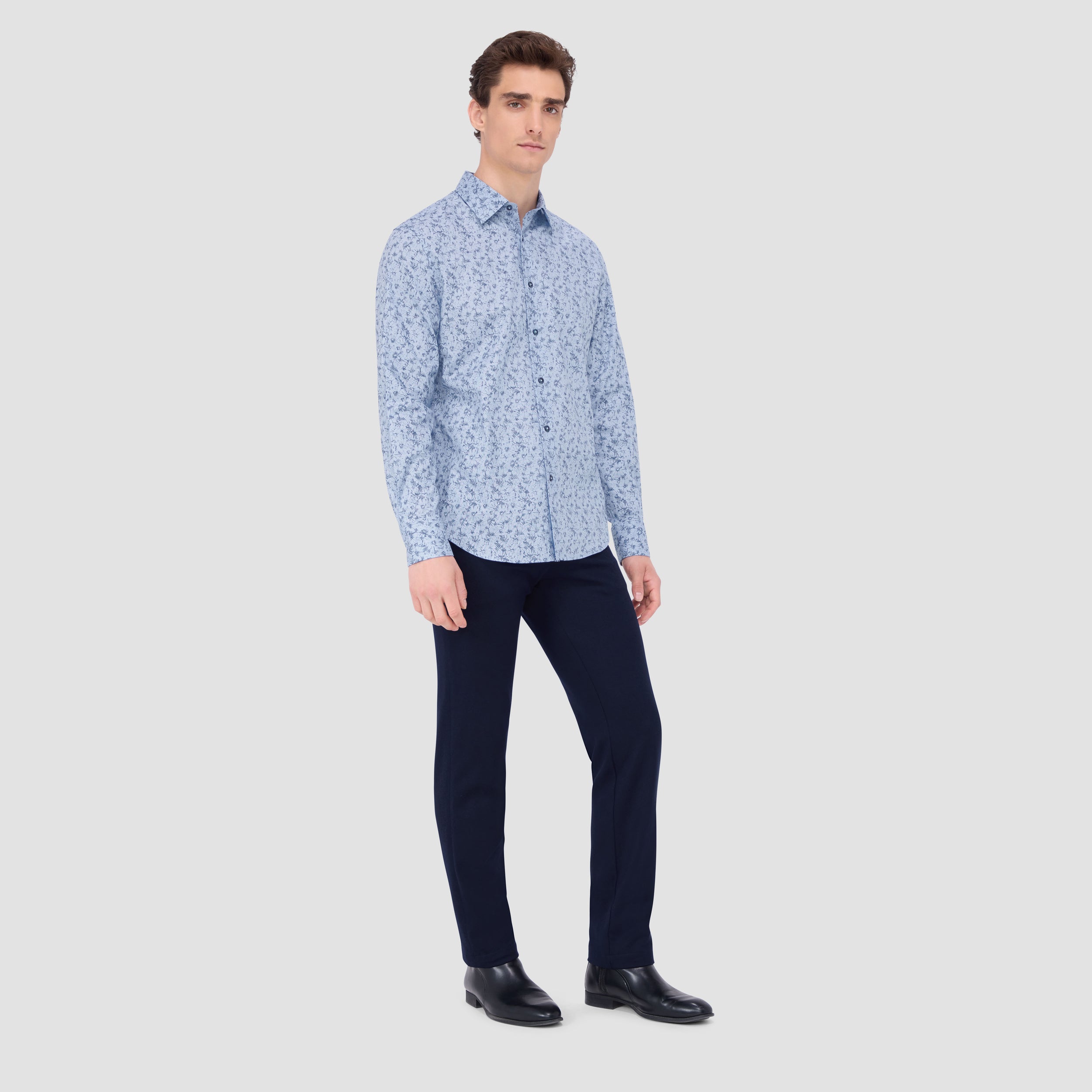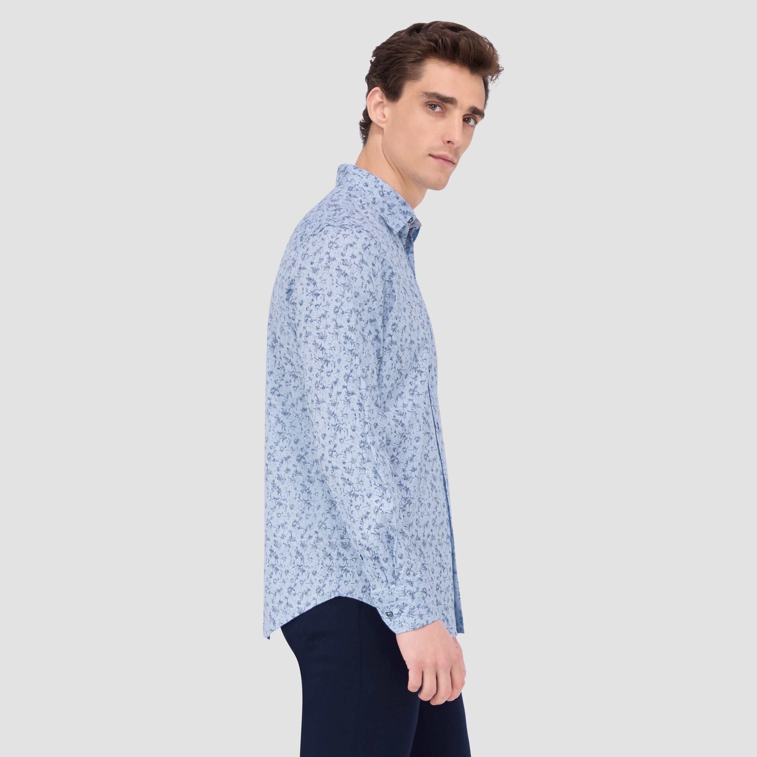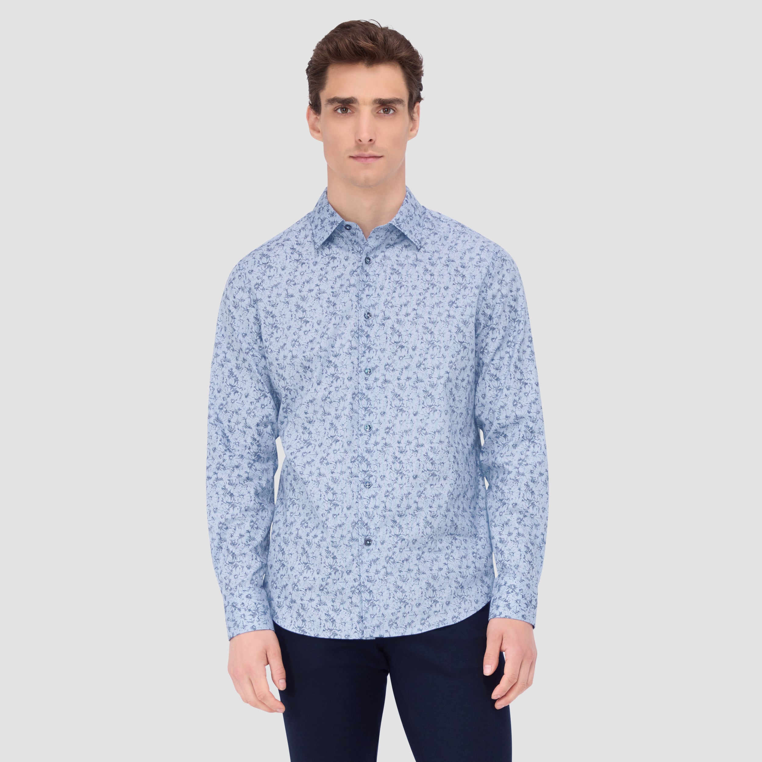 The Julian shirt in COMFORT STRETCH cotton is a contemporary and versatile shirt with optimal comfort and freedom of movement properties. Its timeless and sleek silhouette features long sleeves, a classic point collar, adjustable notched cuffs, a curved hem, and an eye-catching abstract print. Wear it tucked or untucked with chinos or trousers for a smart-casual vibe, or with jeans for a relaxed look.