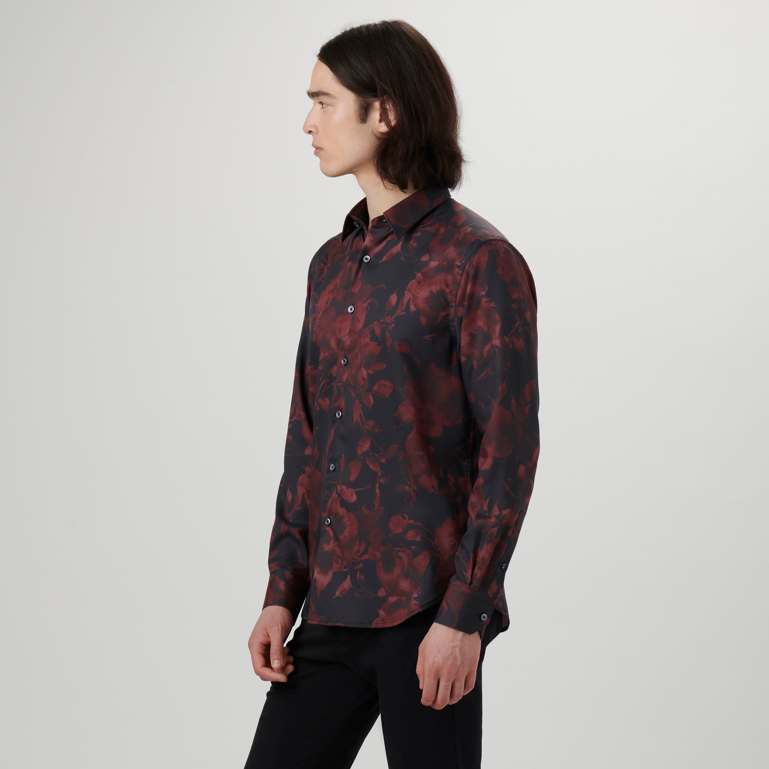 Julian long-sleeved shirt in floral airbrush print lyocell with point collar, adjustable notched cuffs and curved hem.