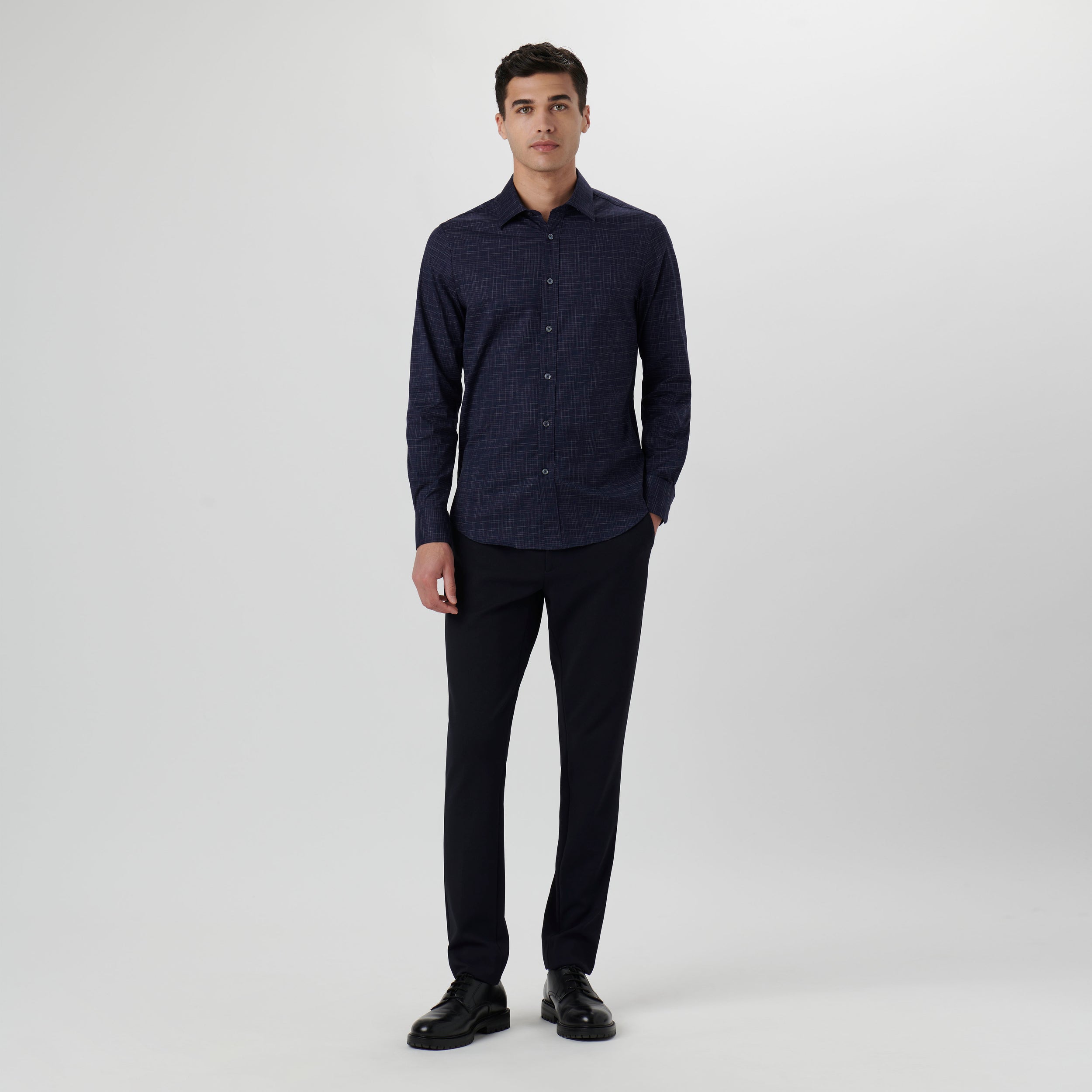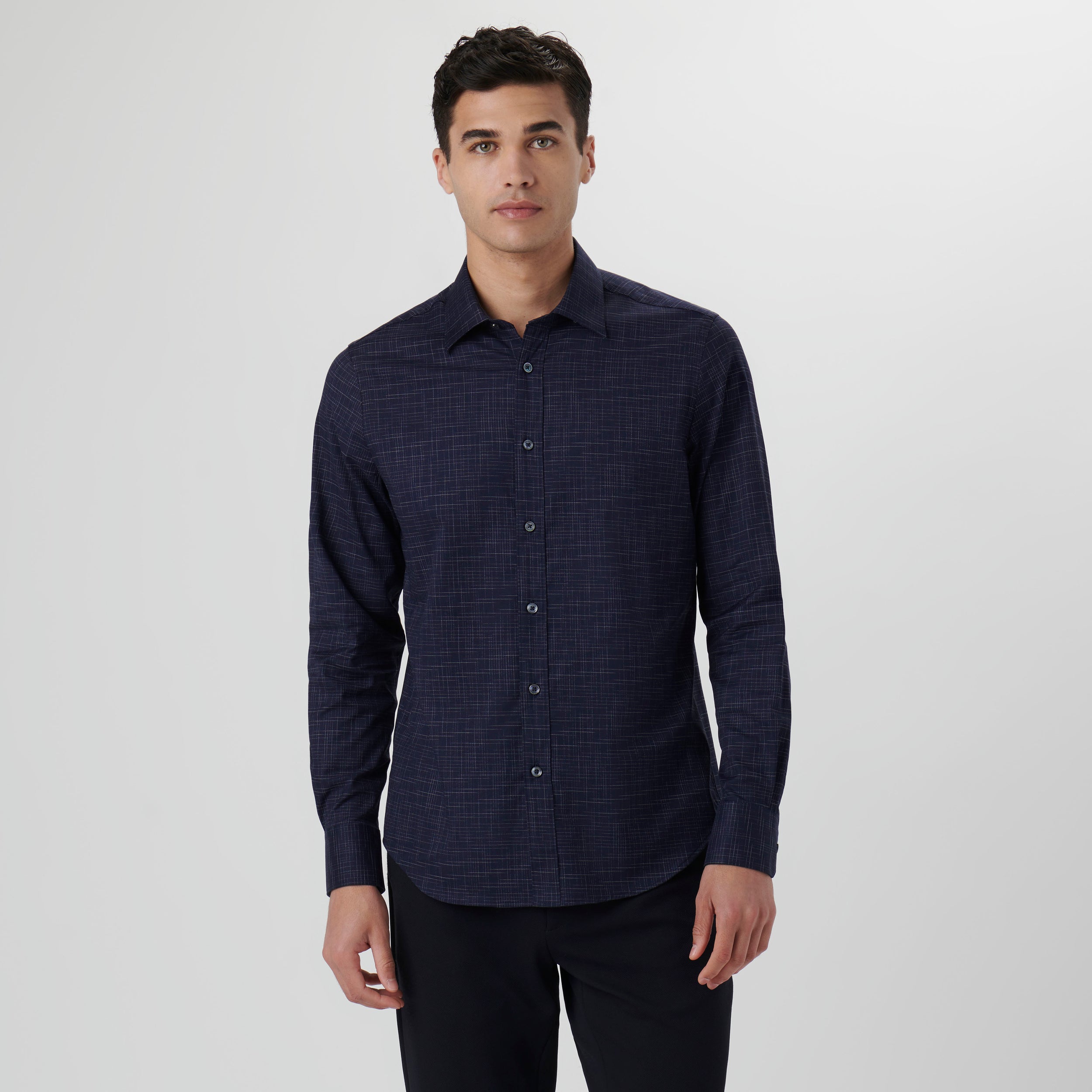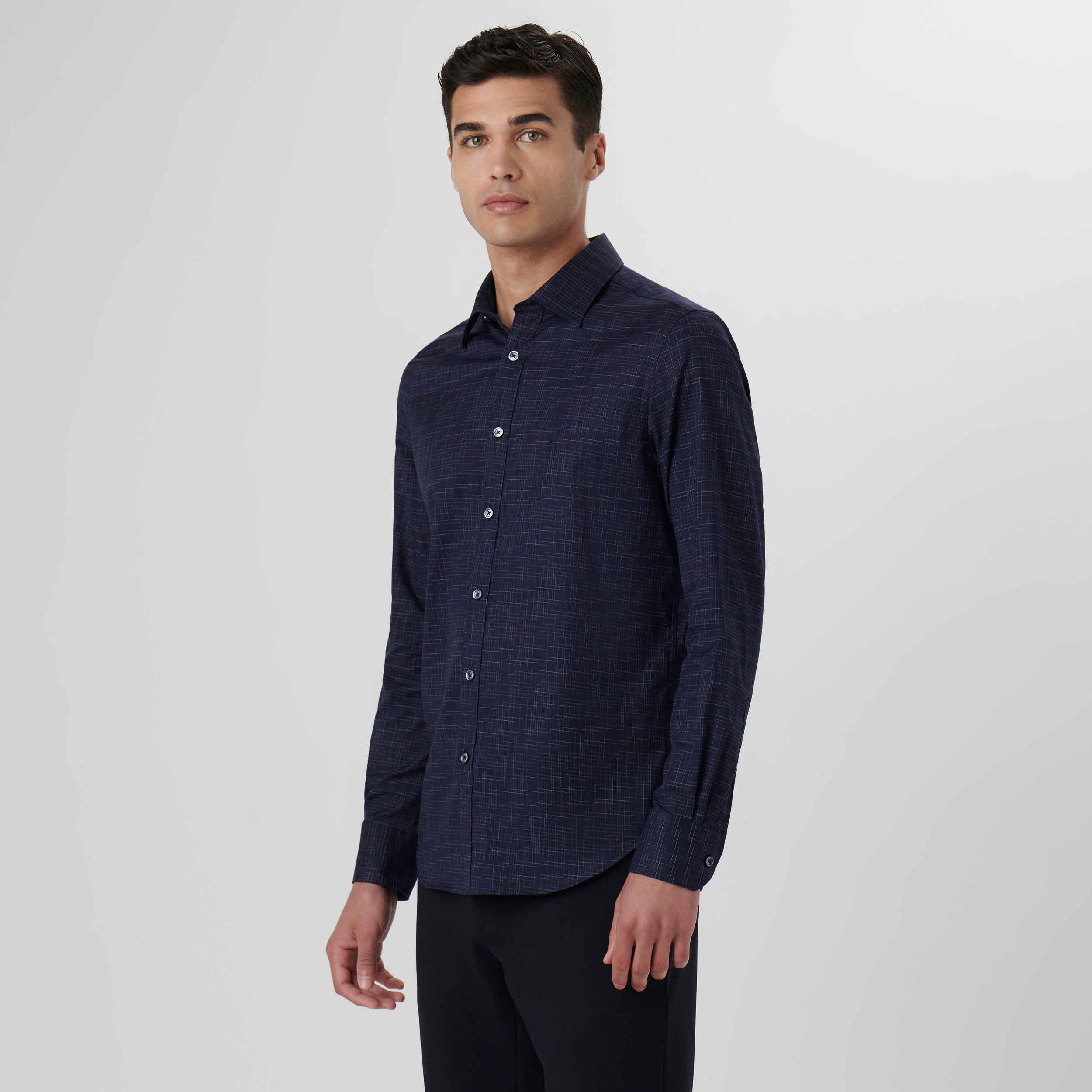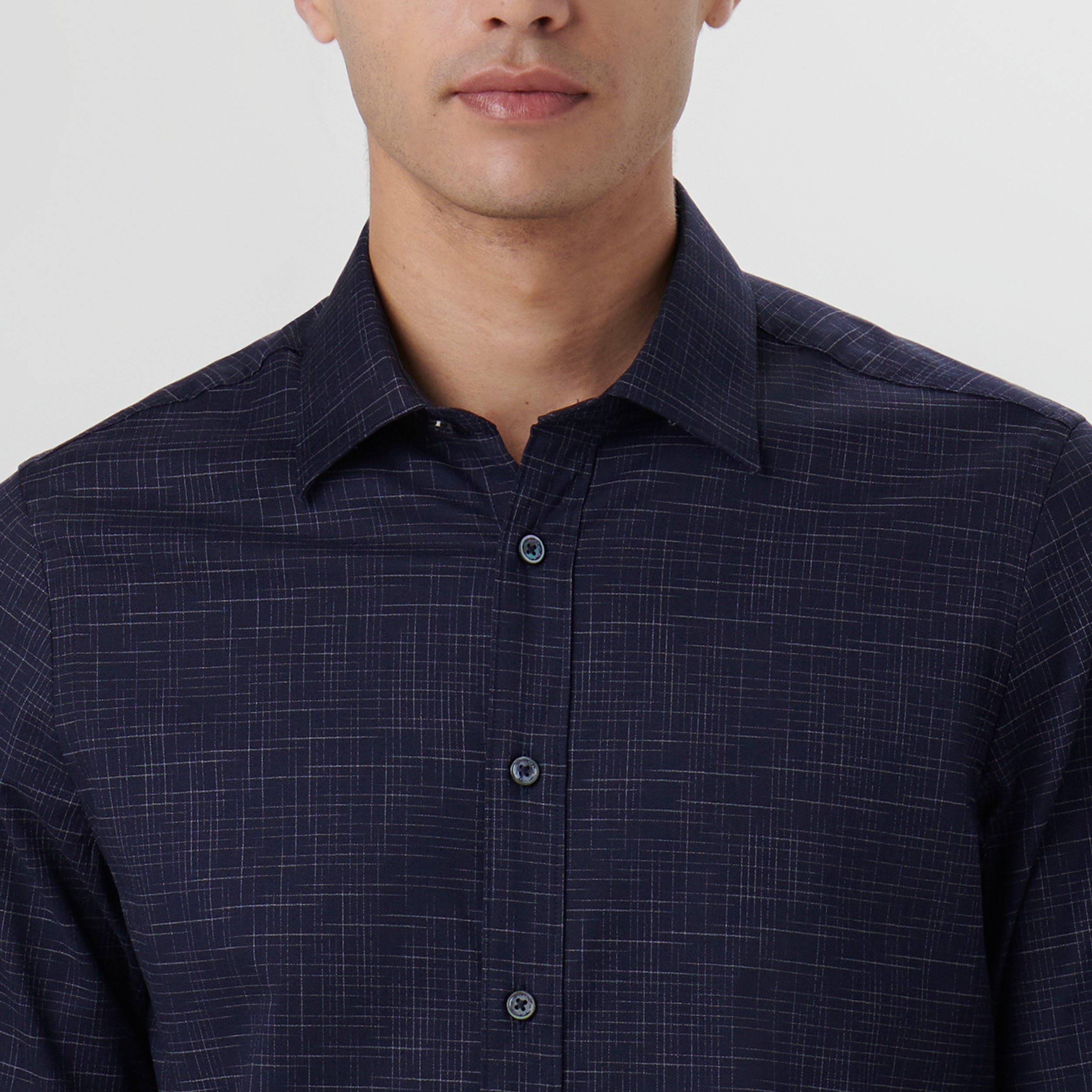 Julian long-sleeved shirt in broken lines print COMFORT STRETCH cotton with point collar, adjustable notched cuffs and curved hem.