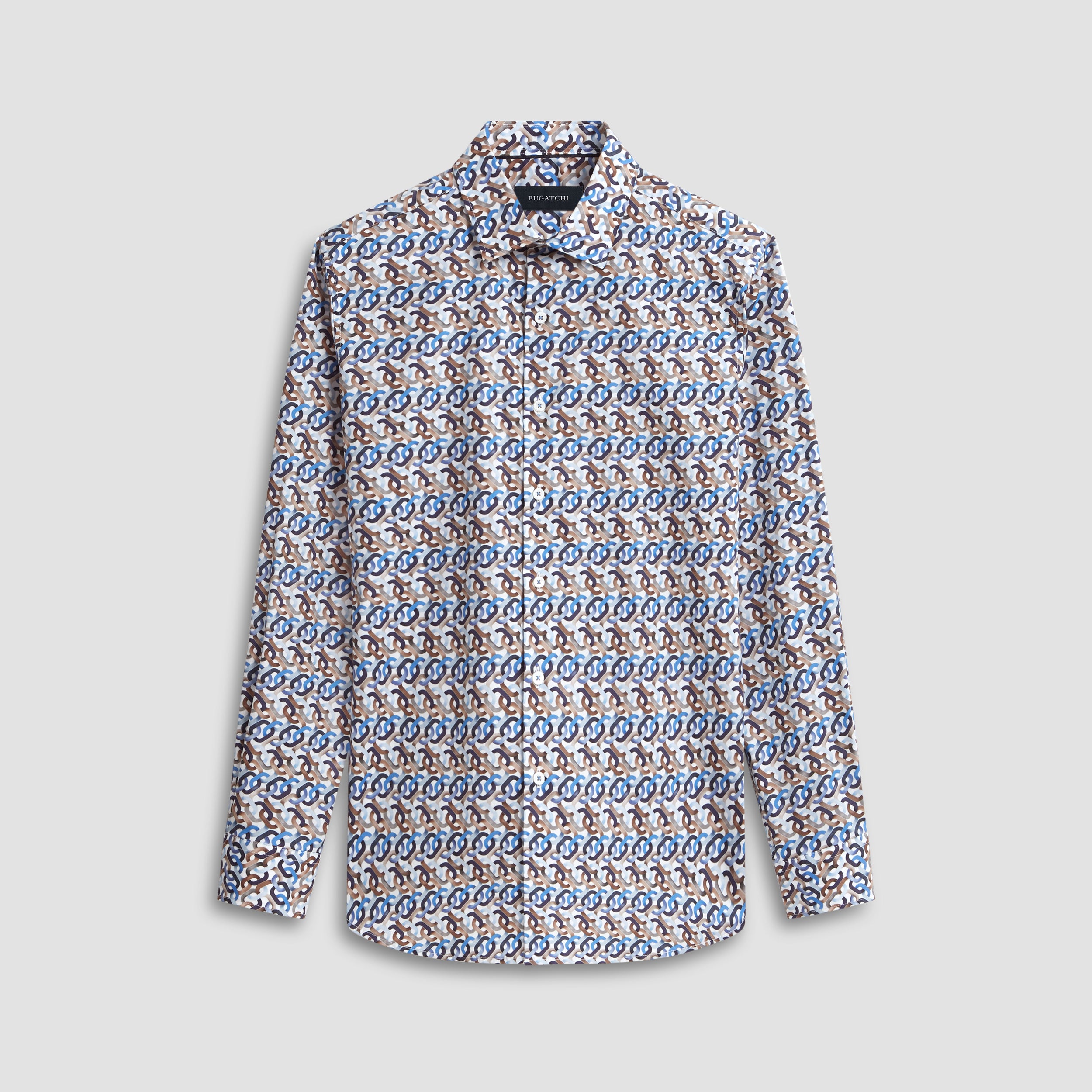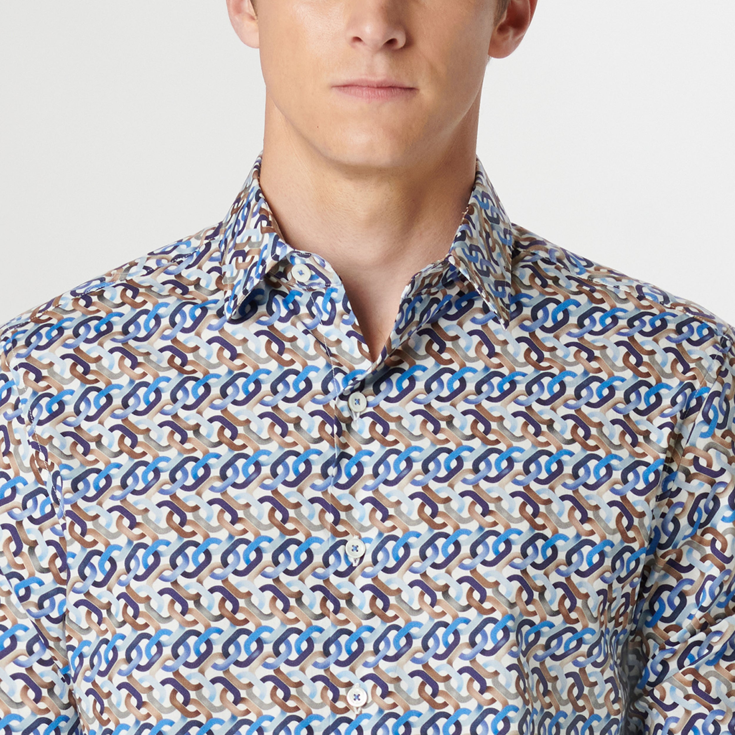 The Julian long-sleeved shirt is crafted from Comfort Stretch cotton and features a chain link print, a point collar, adjustable notched cuffs, and a curved hem.