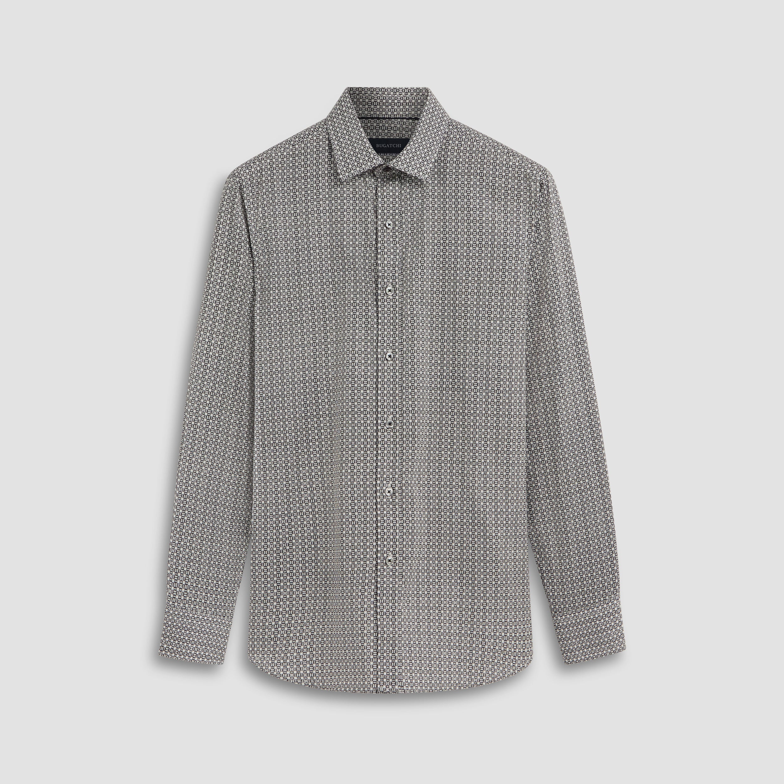 Julian long-sleeved shirt in chain link print COMFORT STRETCH cotton with point collar, adjustable notched cuffs and curved hem.