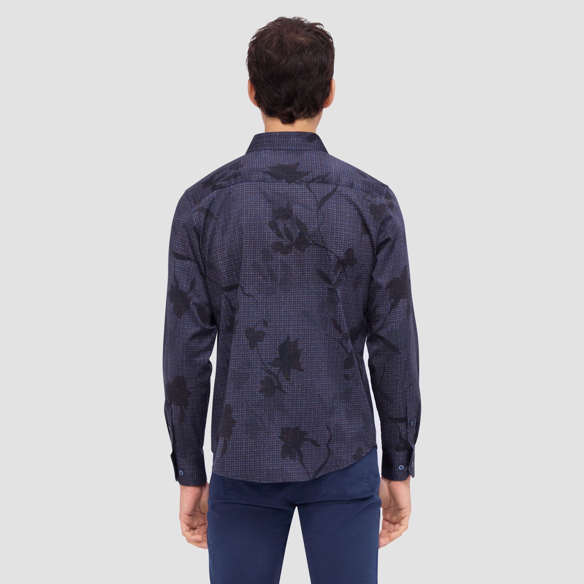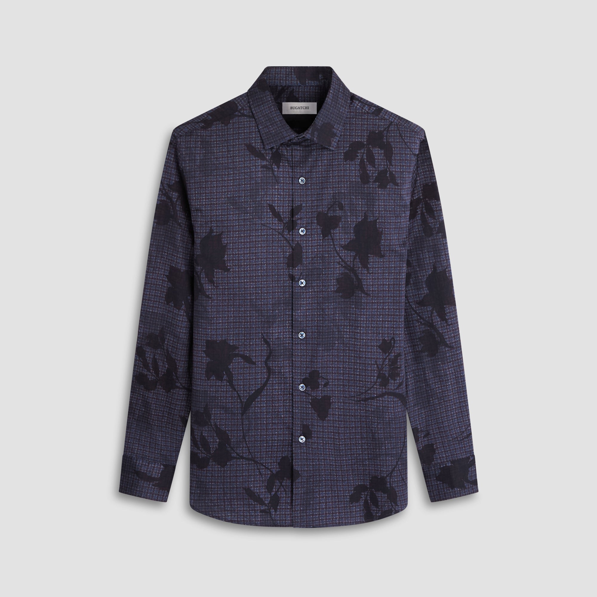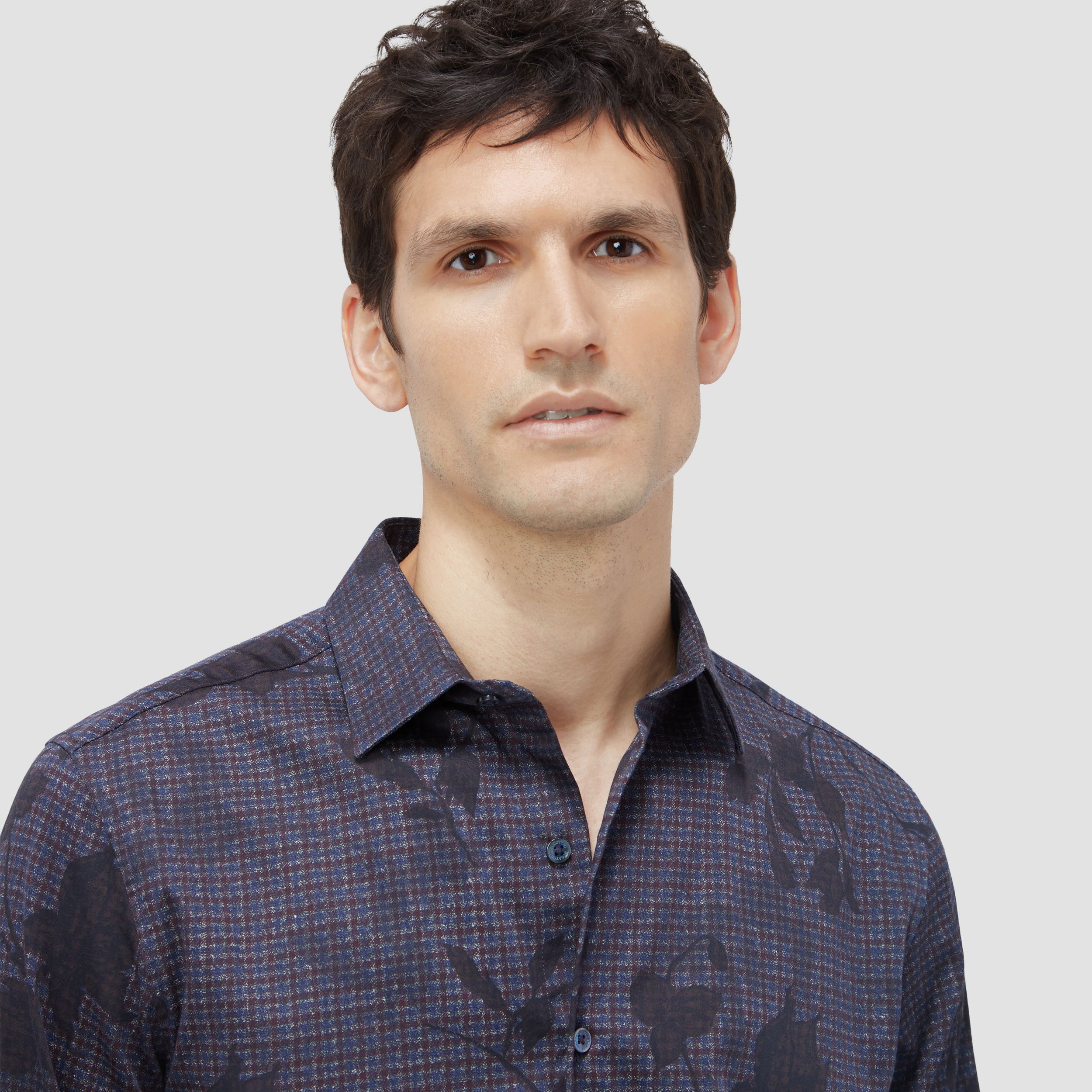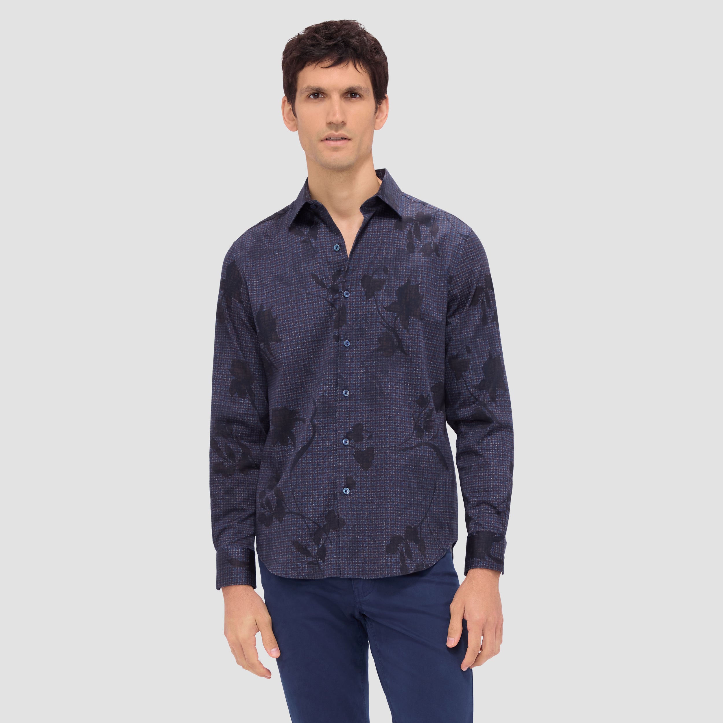 The Julian shirt in COMFORT STRETCH cotton is a contemporary and versatile shirt with optimal comfort and freedom of movement properties. Its timeless and sleek silhouette features long sleeves, a classic point collar, adjustable notched cuffs, a curved hem, and a checkered floral print. Wear it tucked or untucked with chinos or trousers for a smart-casual vibe, or with jeans for a relaxed look.
