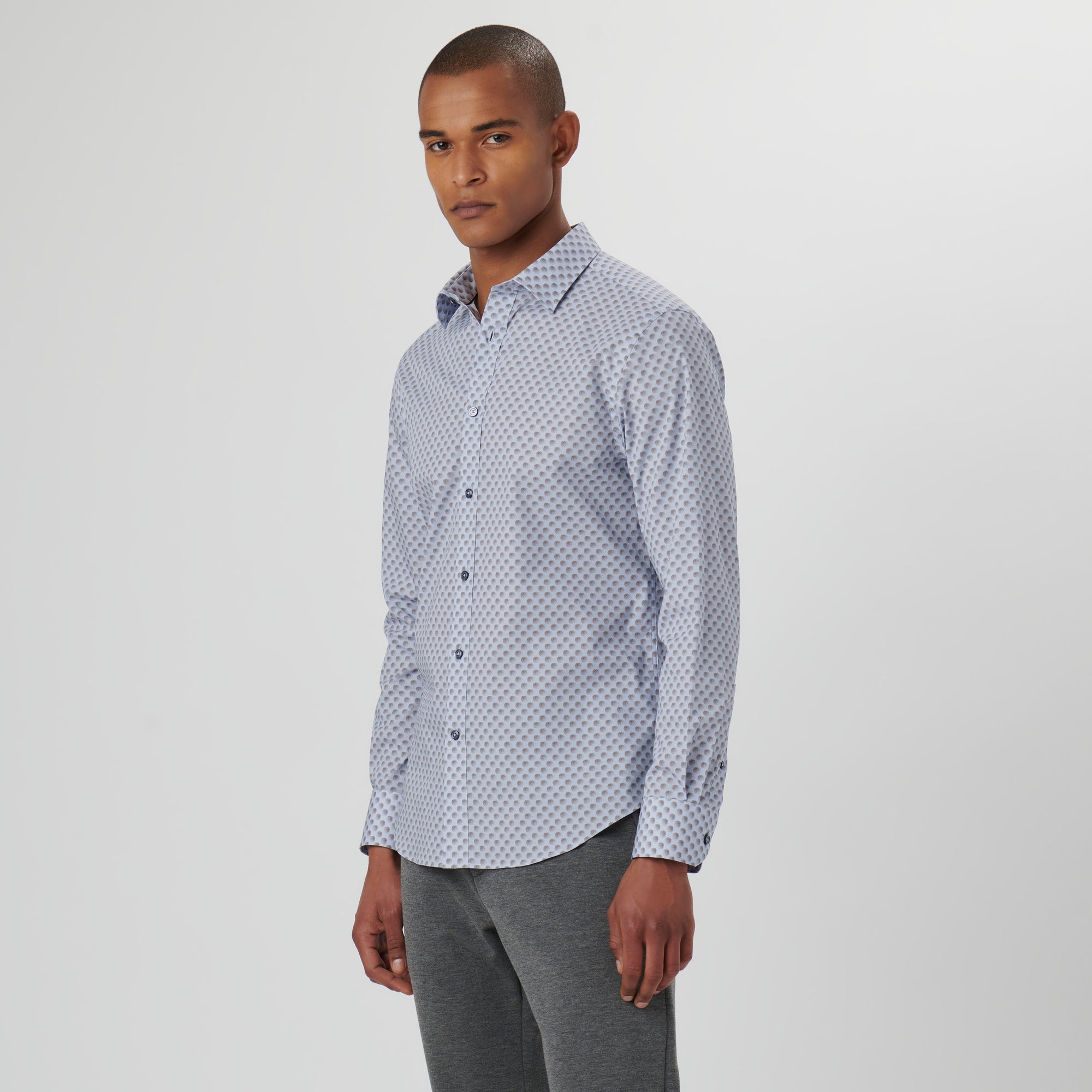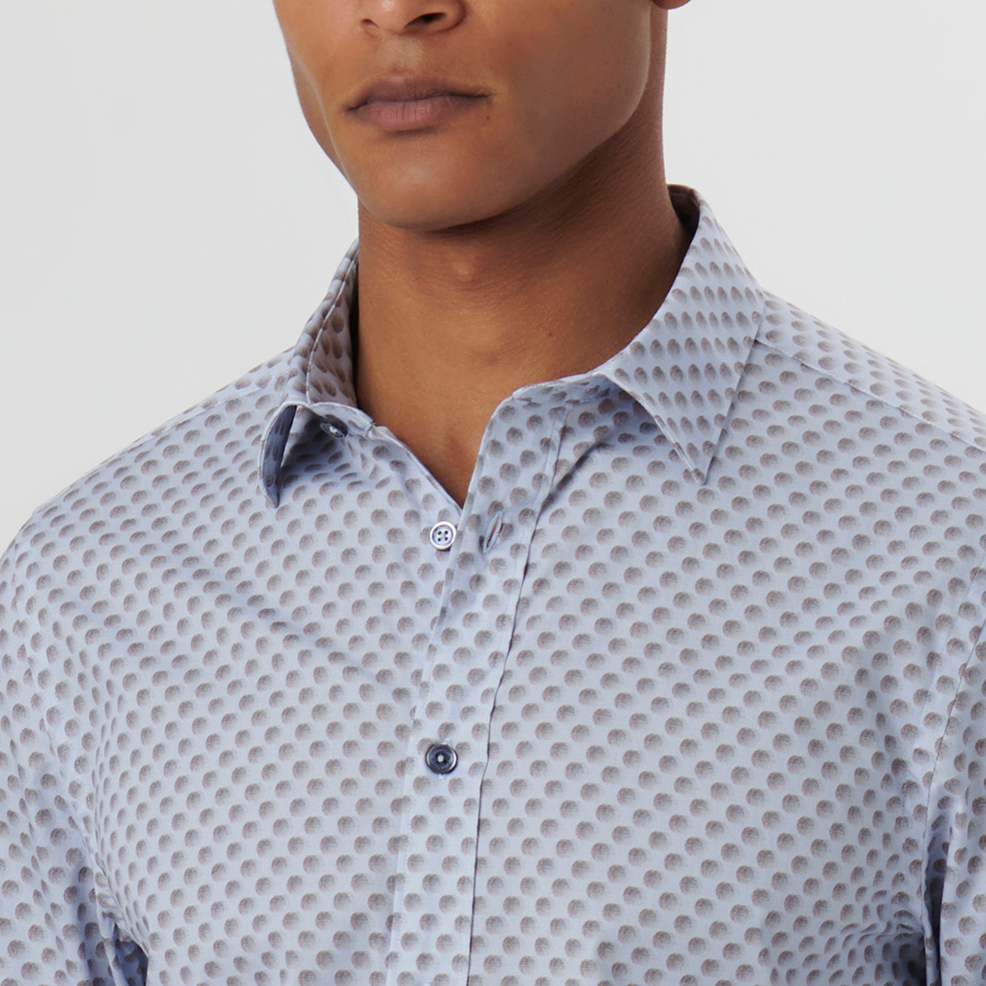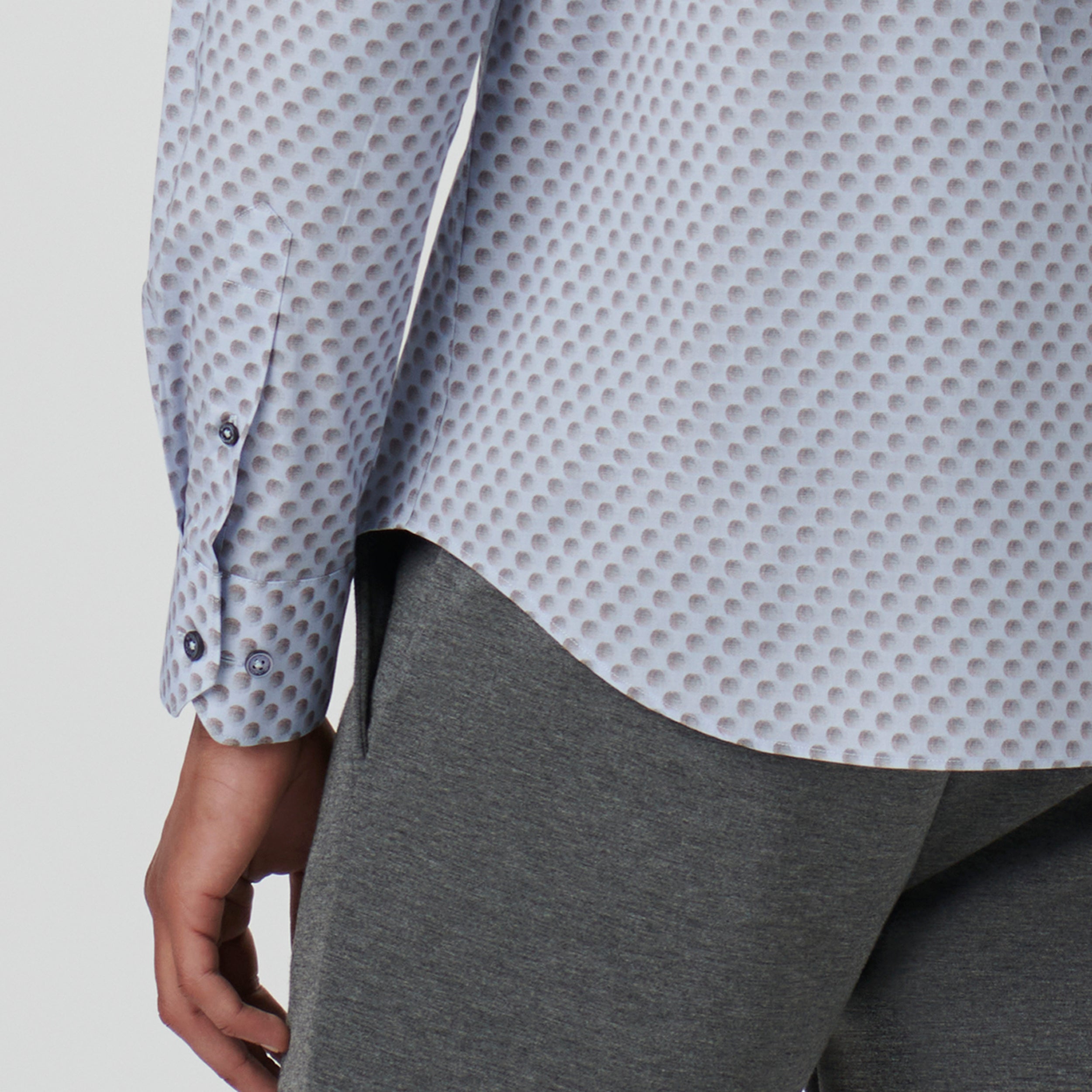 Julian long-sleeved shirt in coin dot print COMFORT STRETCH cotton with point collar, adjustable notched cuffs and curved hem.