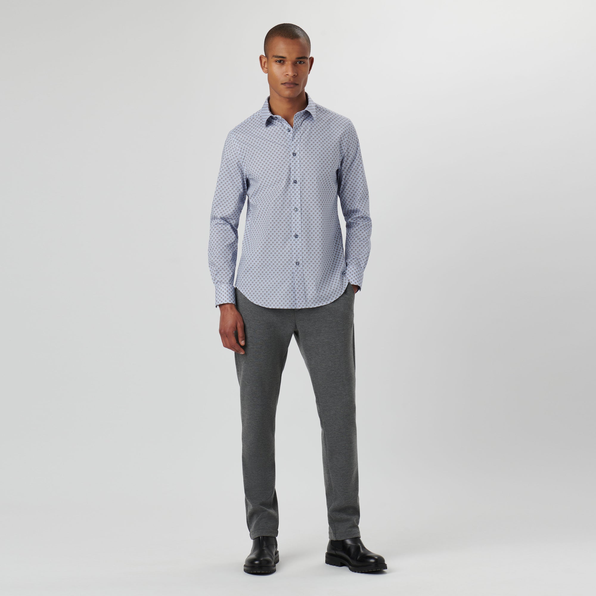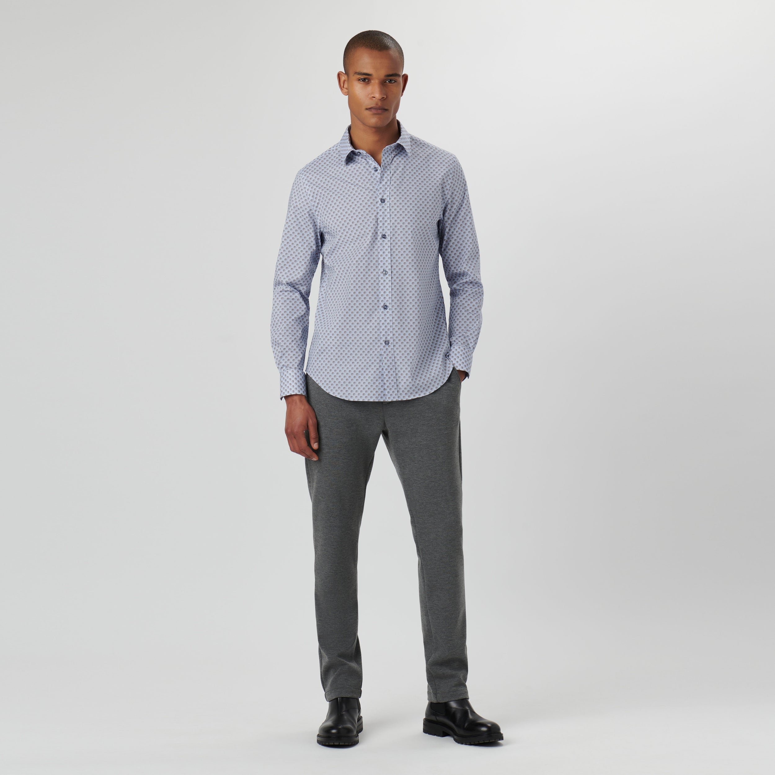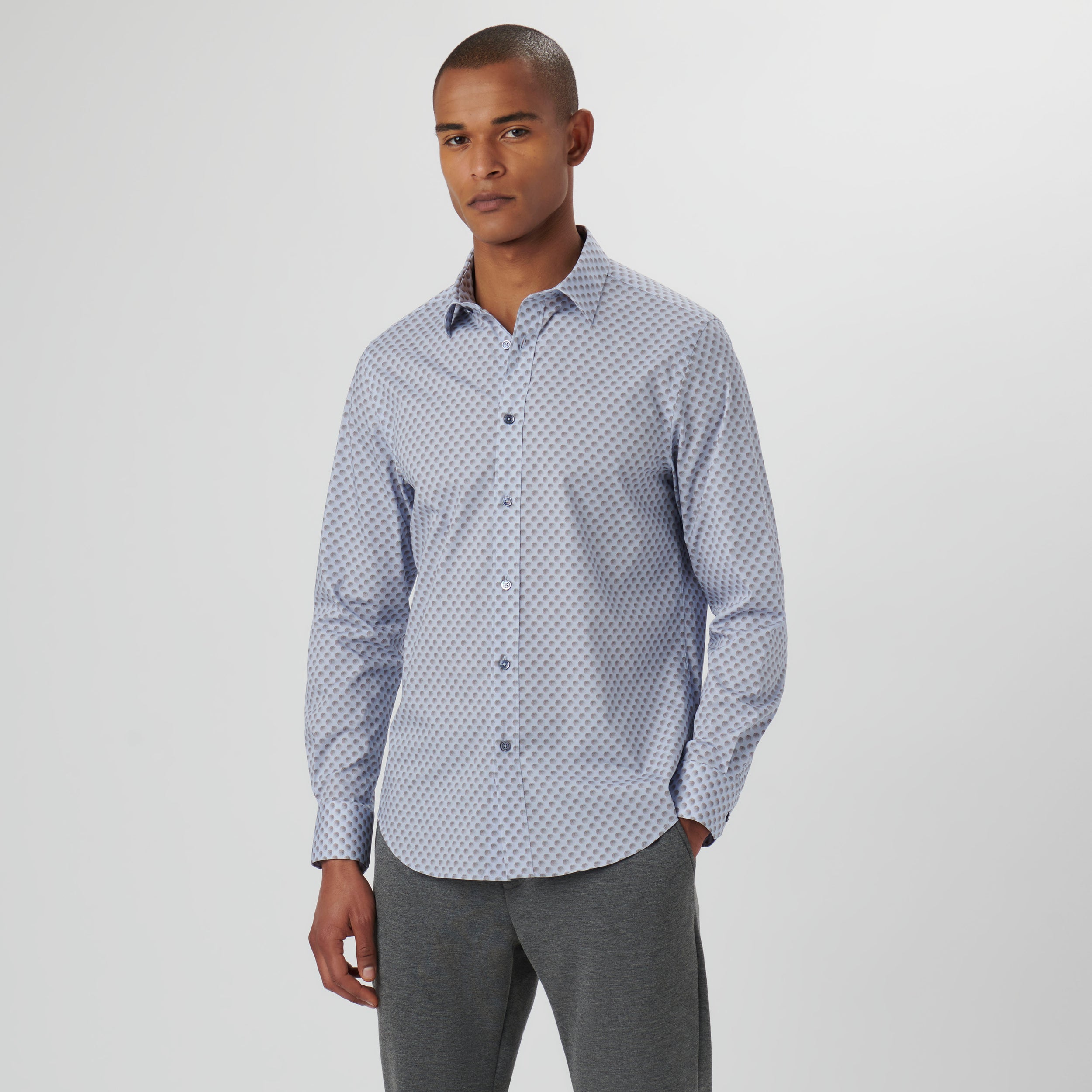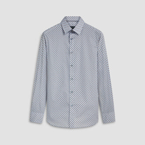Julian long-sleeved shirt in coin dot print COMFORT STRETCH cotton with point collar, adjustable notched cuffs and curved hem.
